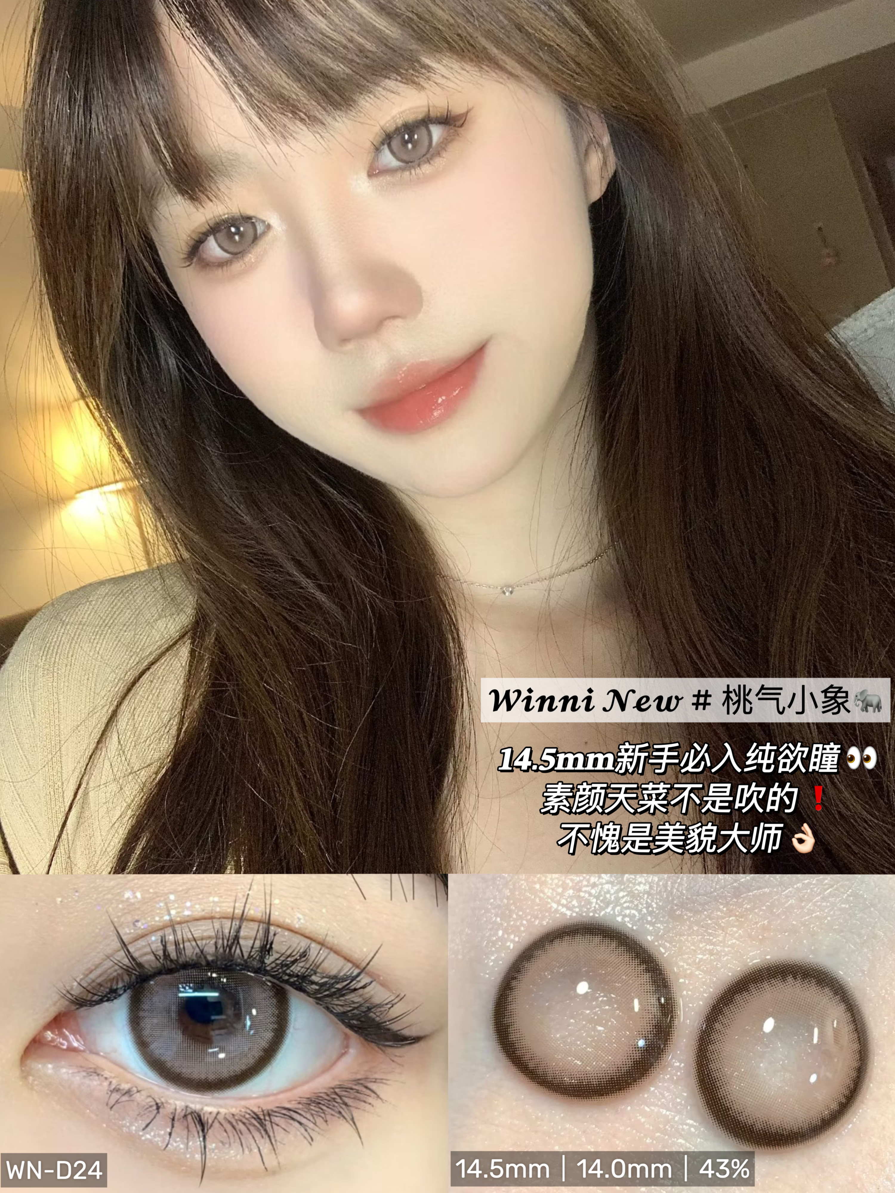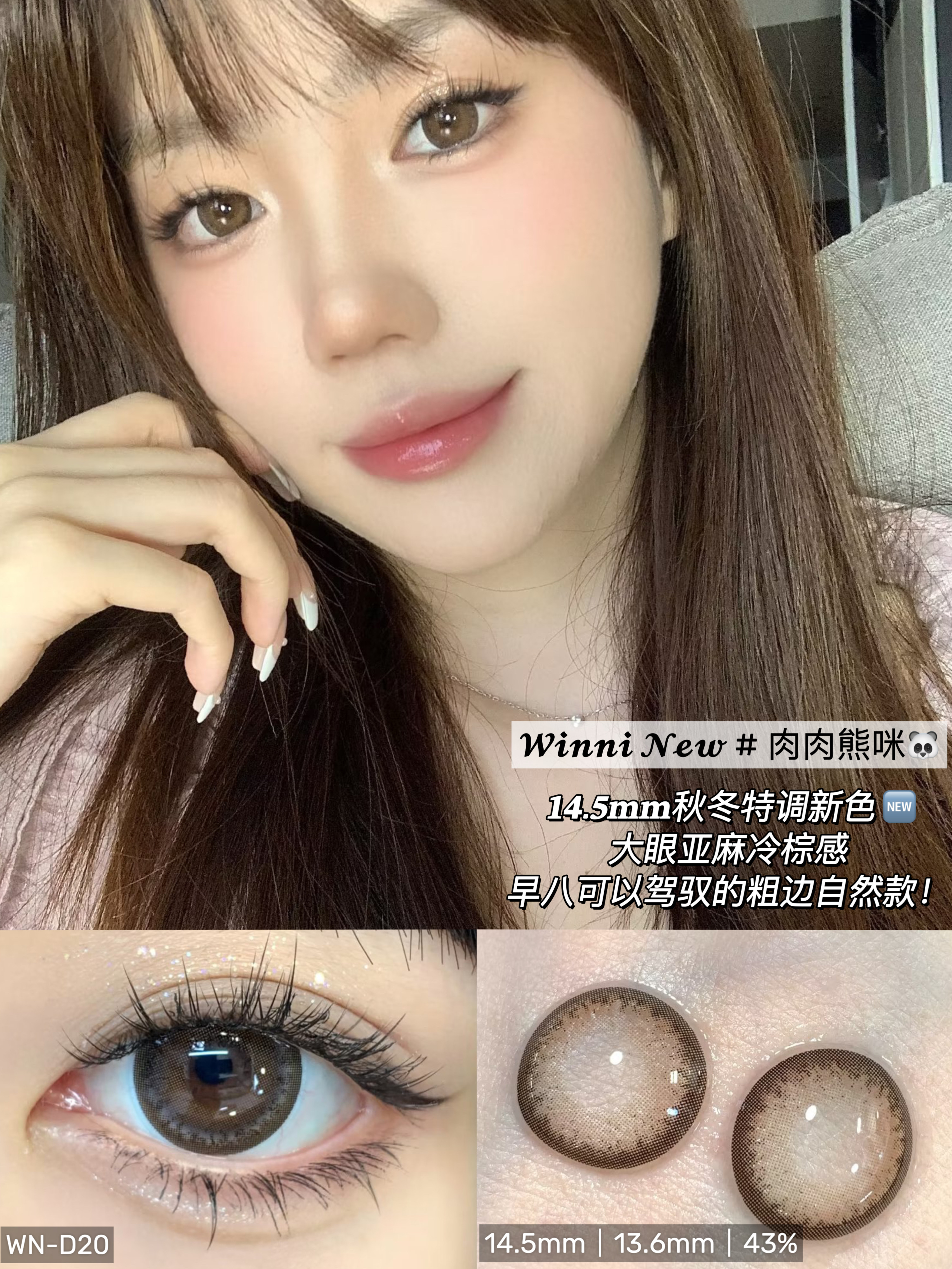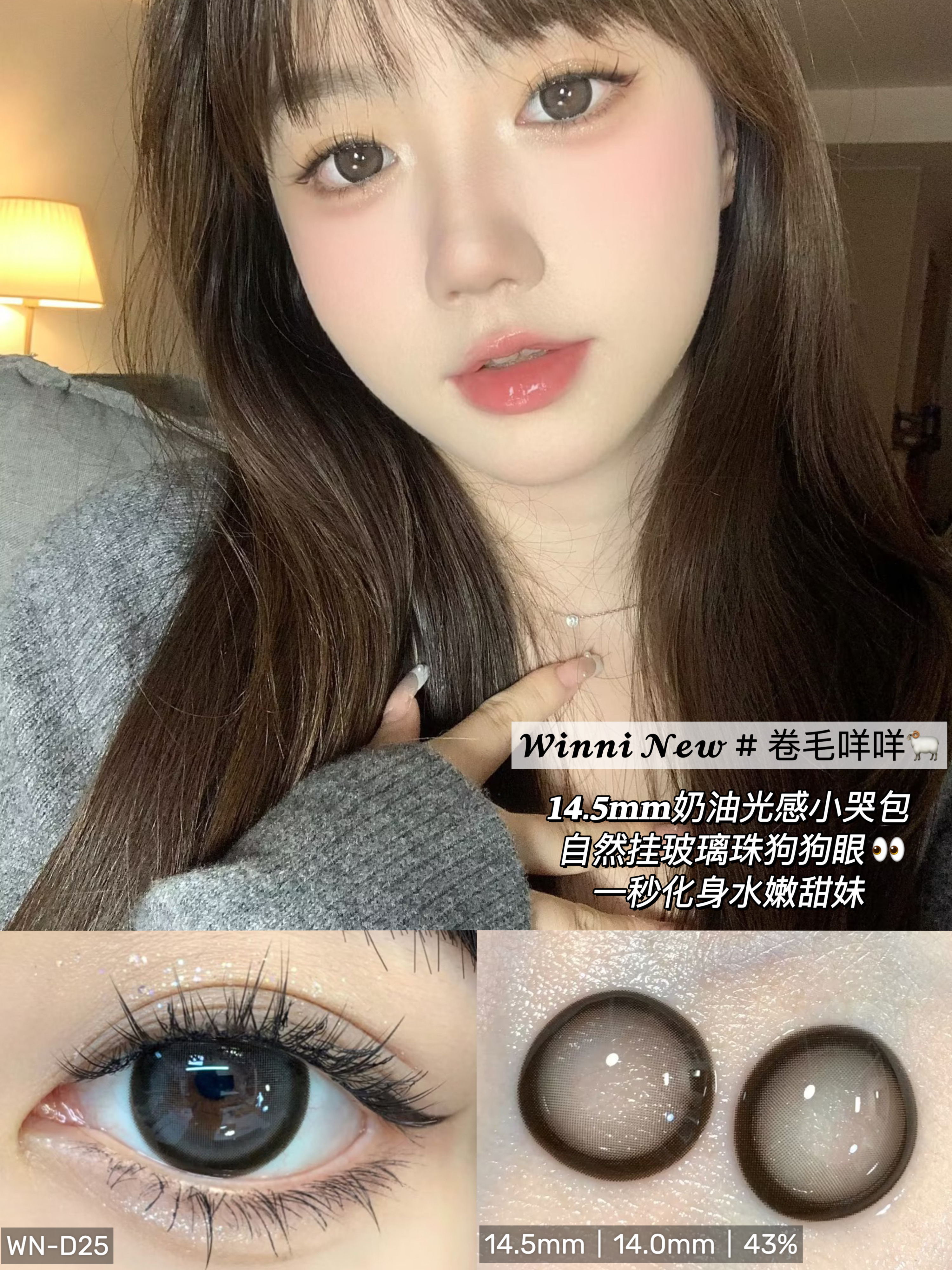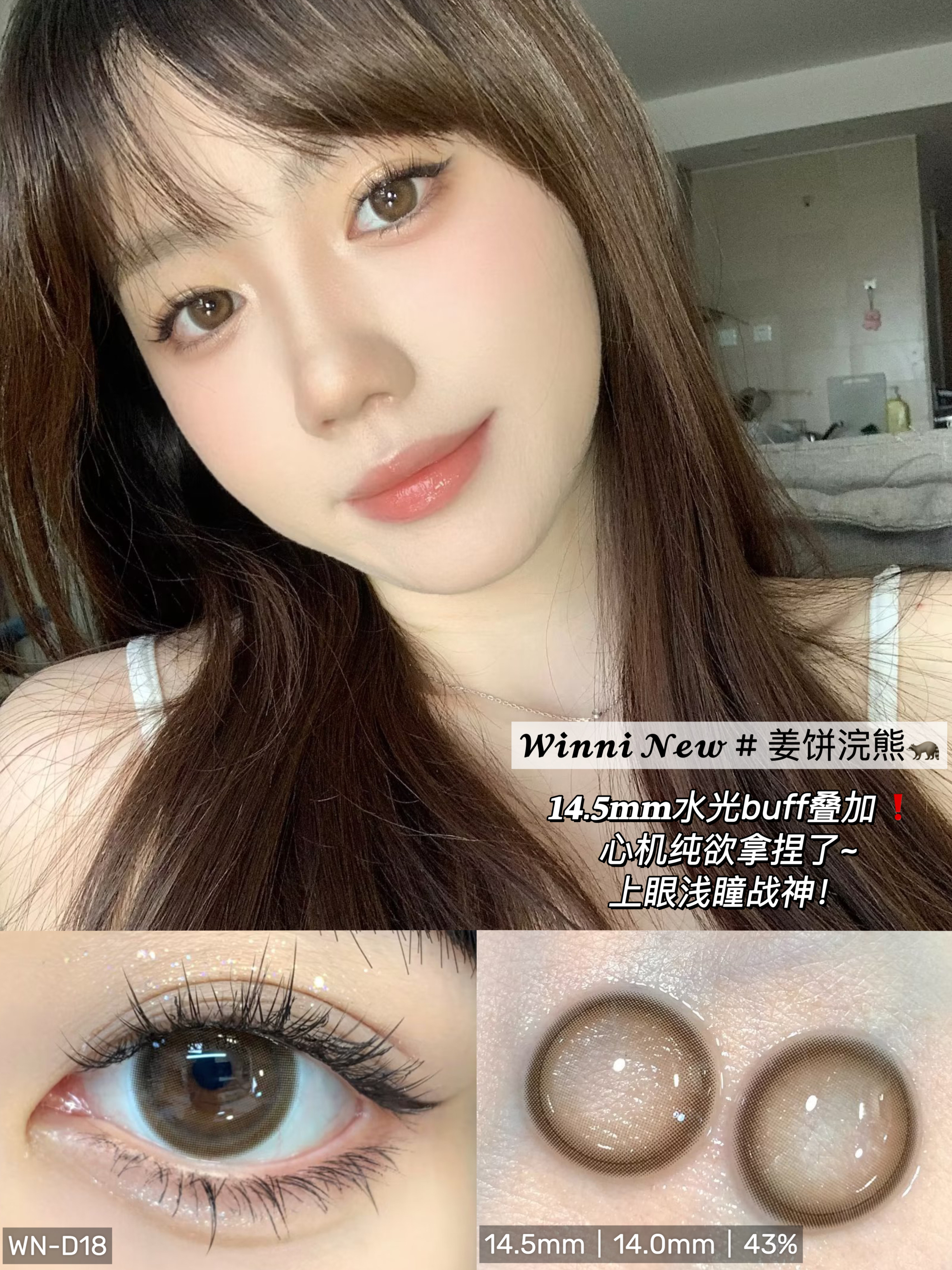Winni旗下 ·D14奶芙猪猪&D18姜饼浣熊【藤姐同款】&D20肉肉熊咪D21小羊松饼&D24桃气小象&D25卷毛咩咩 14.5mm白狮参考着色大直径 |日抛10片装