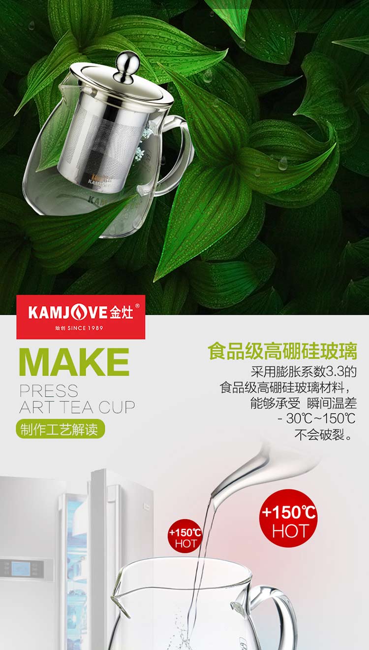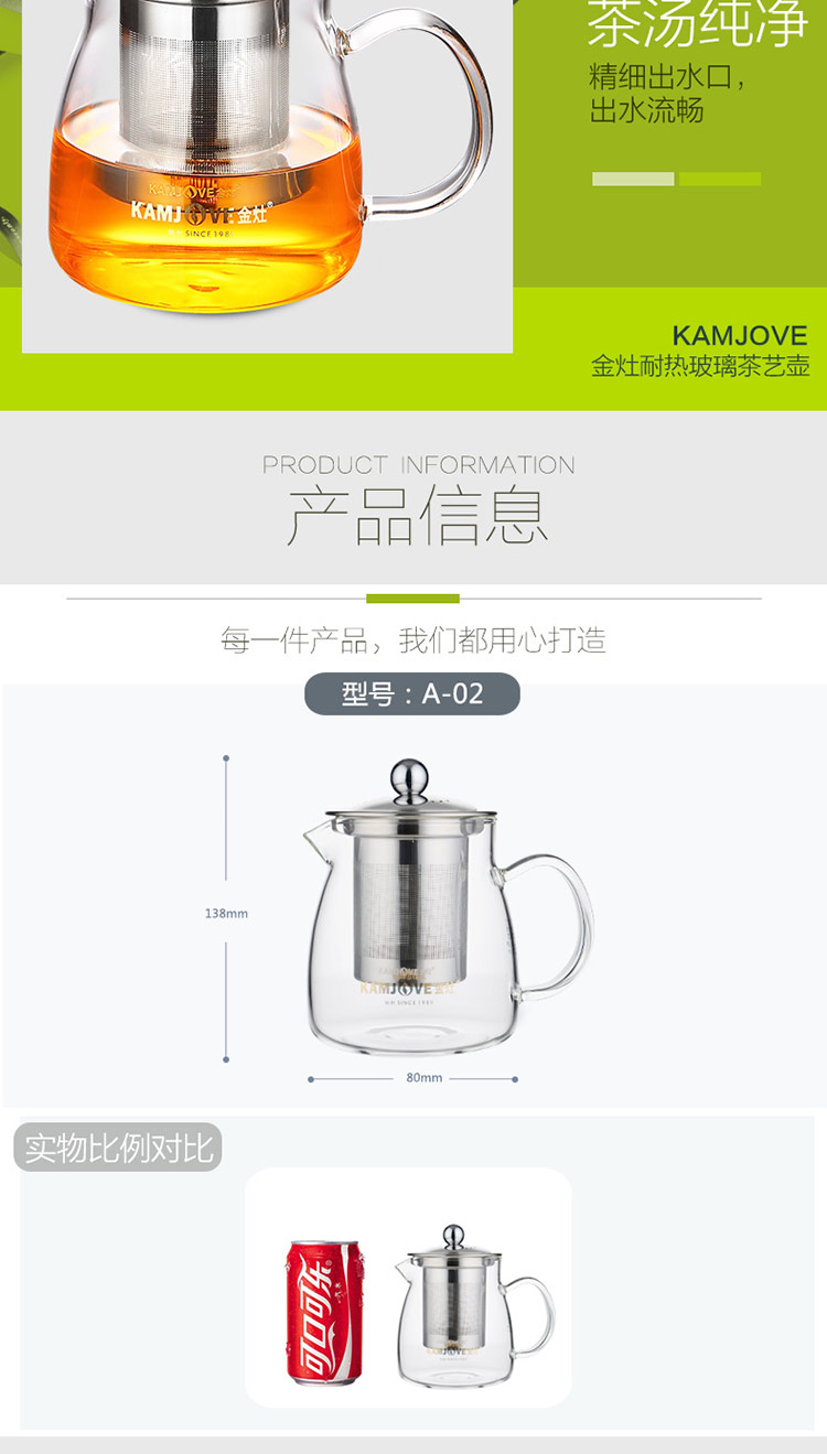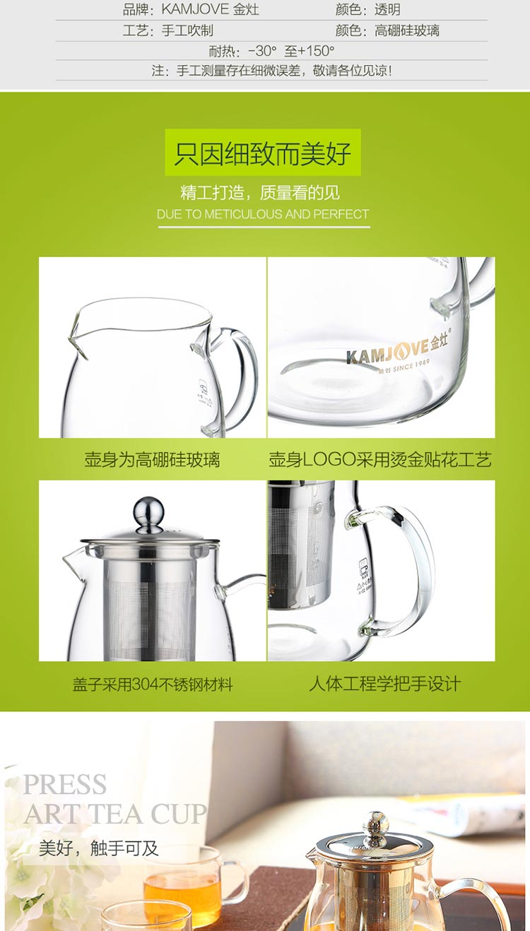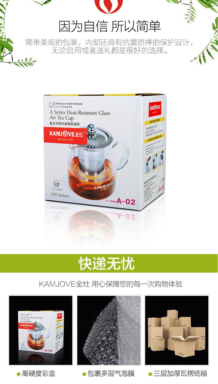 金灶 A-02茶道杯飘逸杯泡茶壶耐热玻璃壶大容量花茶壶办公室过滤茶壶