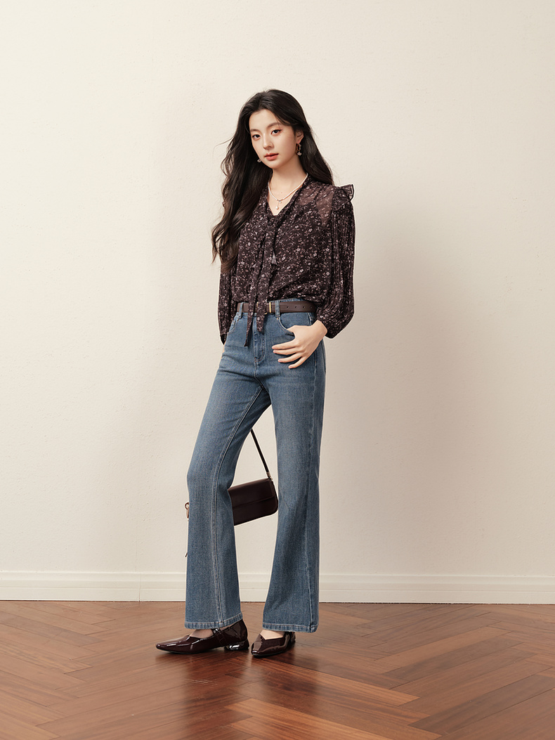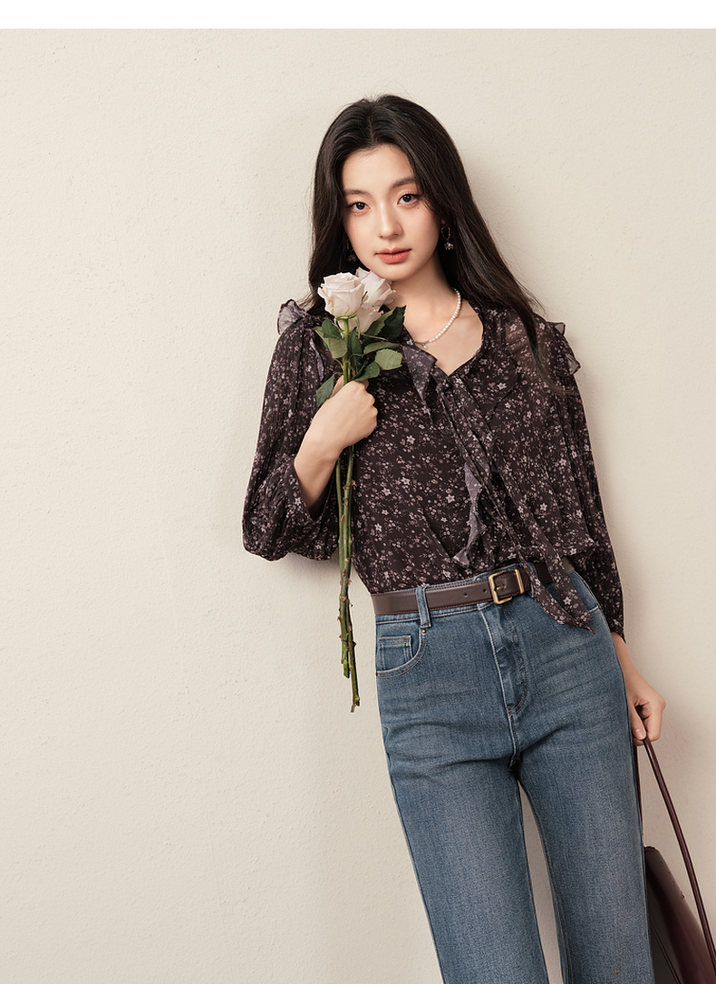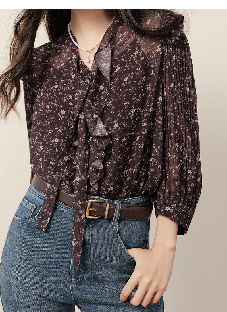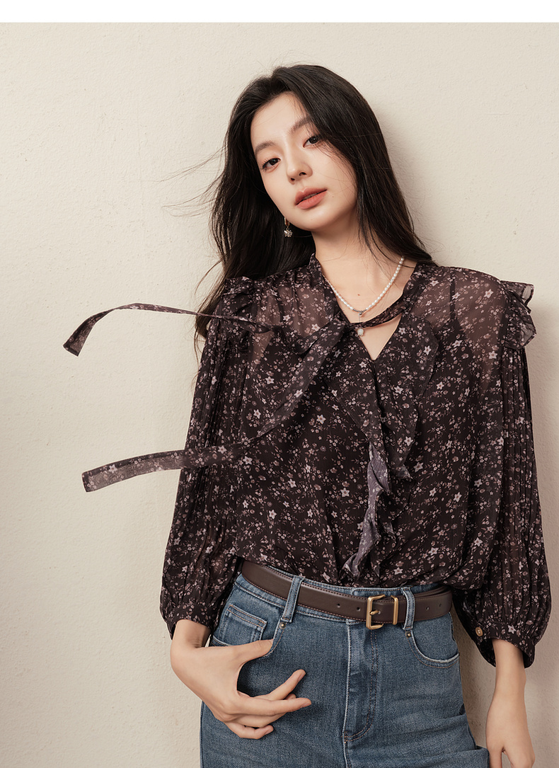 【商场同款】诗凡黎西西里漫花雪纺衫25秋新款长袖衬衫3G8721201