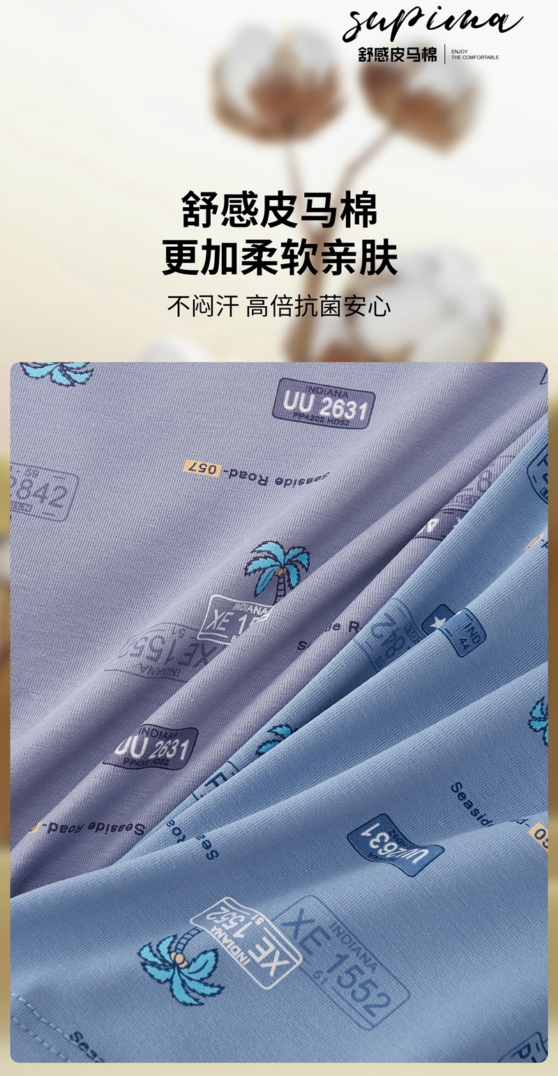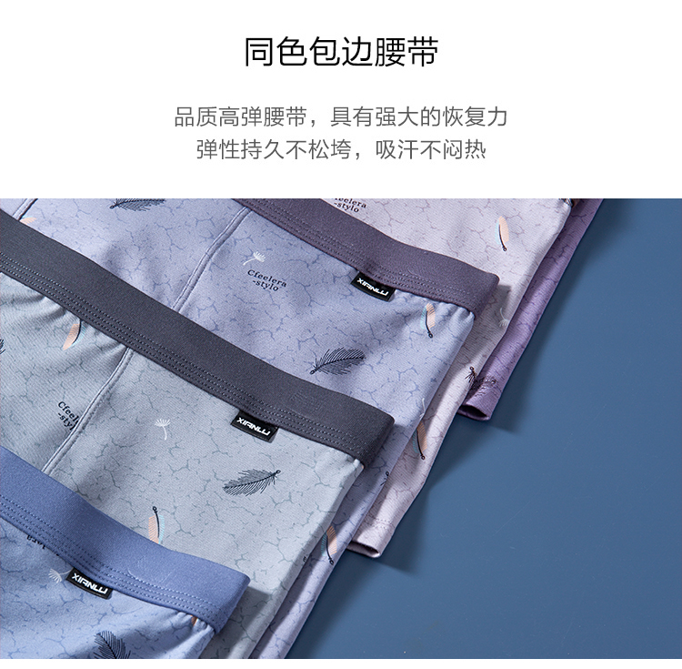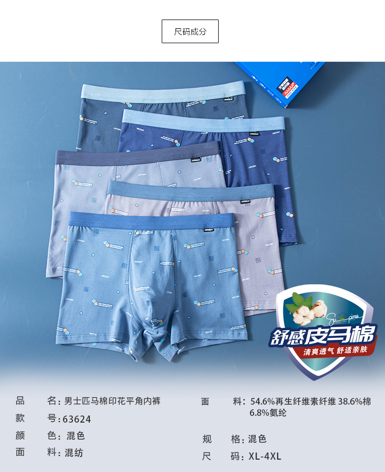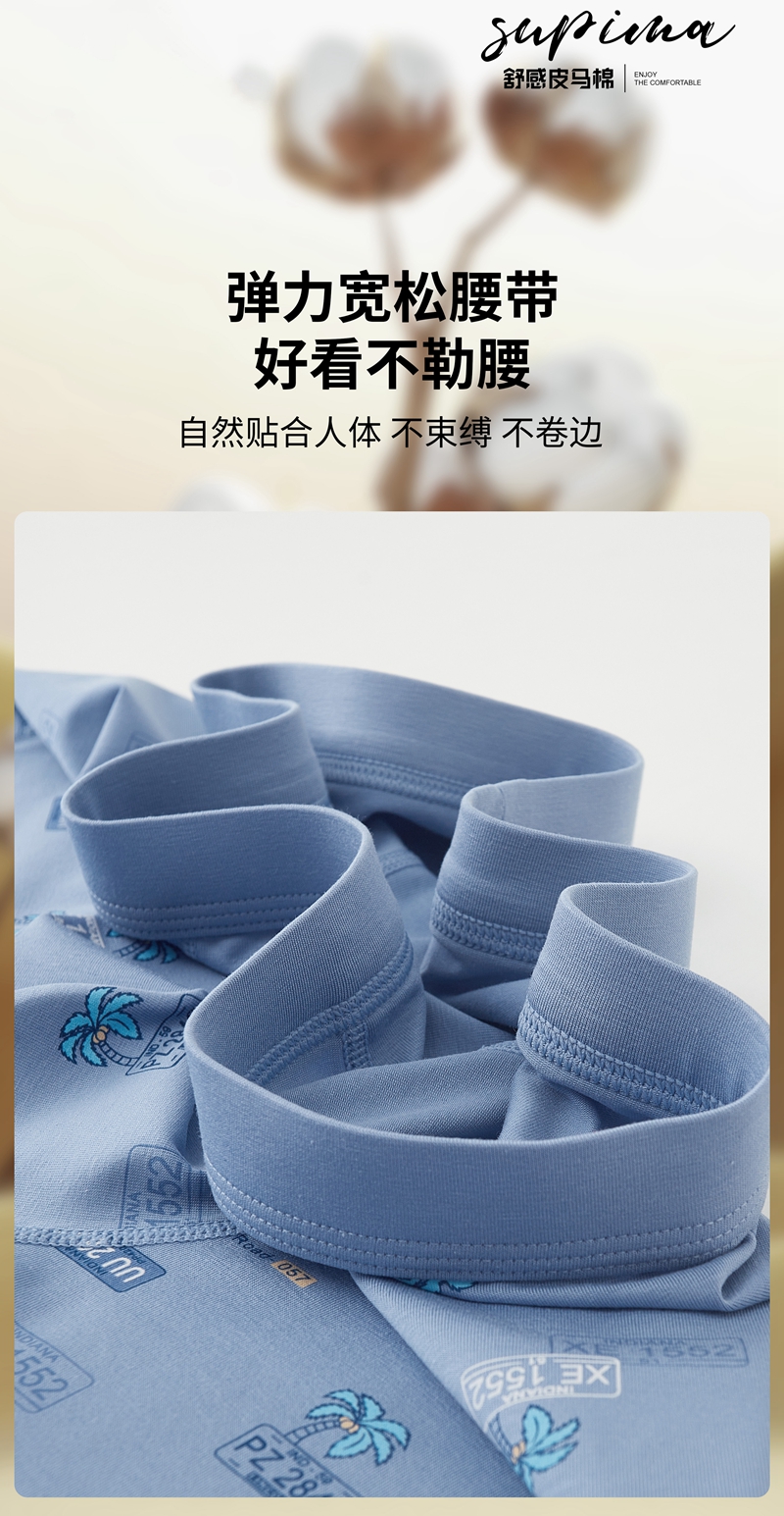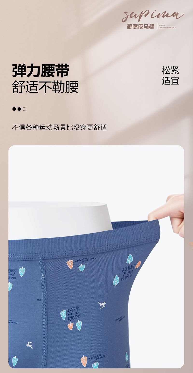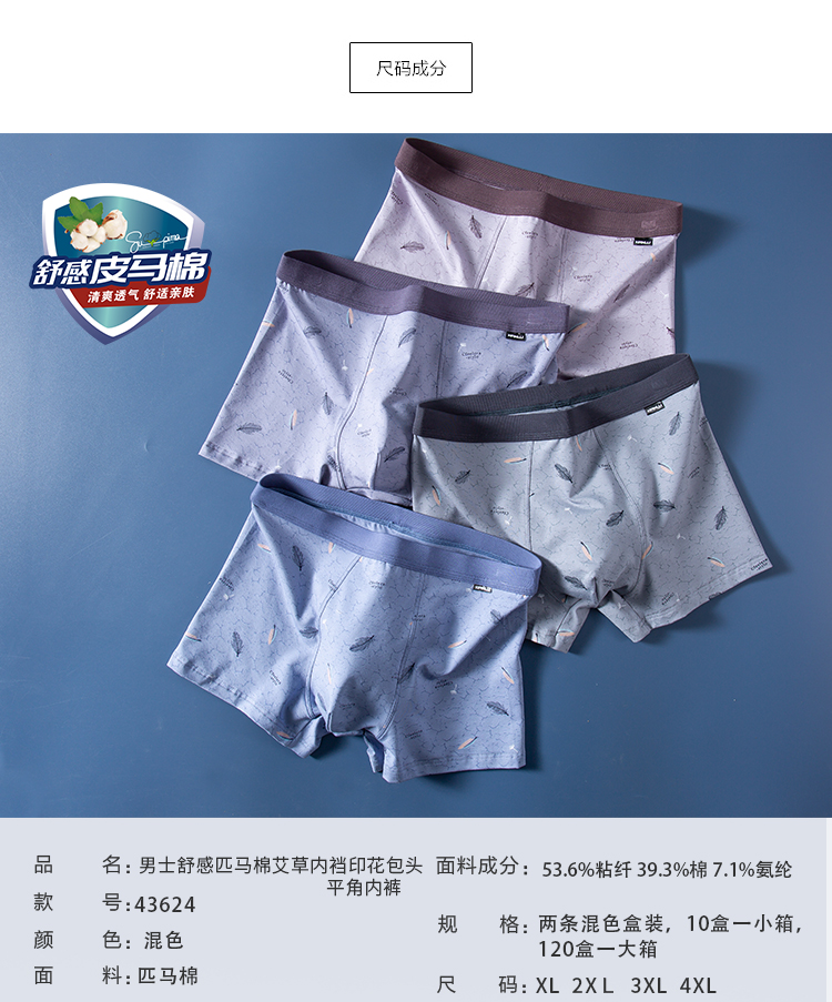 【两条装】男士舒感皮马棉匹马棉包头树叶柠檬麦穗印花平角内裤8817/8818/8805/8768/6630/8809/8760