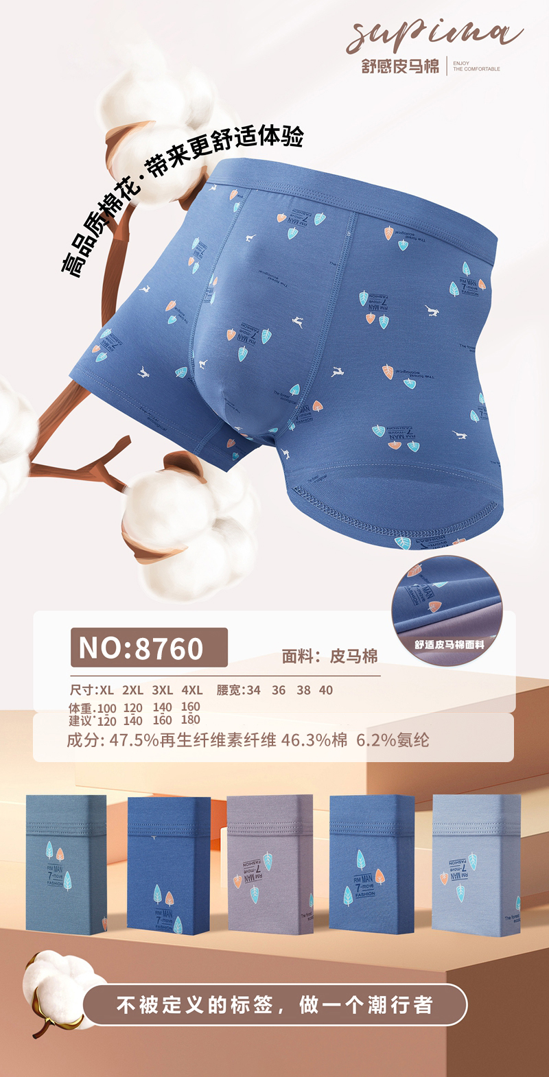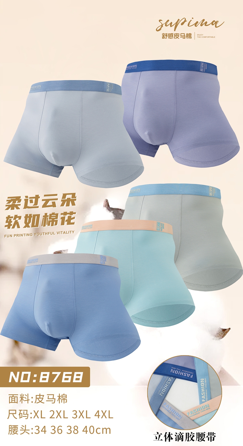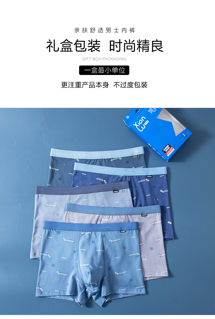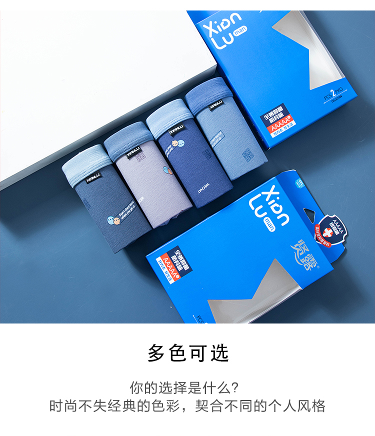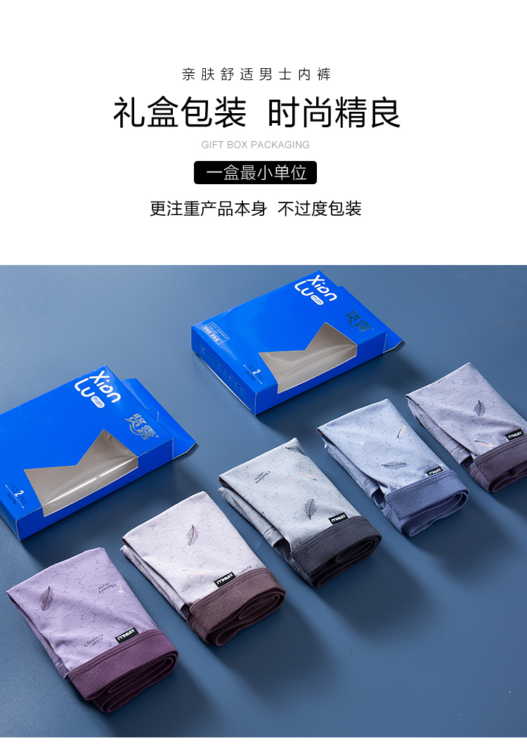 【两条装】男士舒感皮马棉匹马棉包头树叶柠檬麦穗印花平角内裤8817/8818/8805/8768/6630/8809/8760