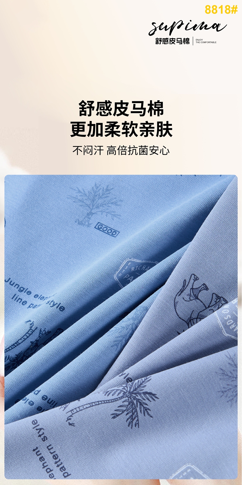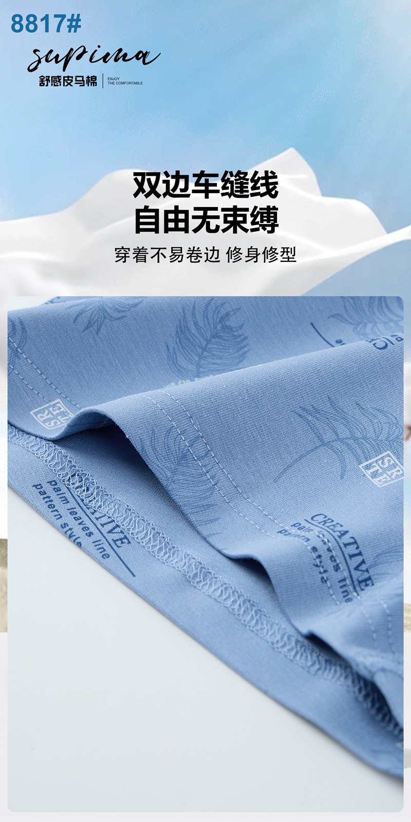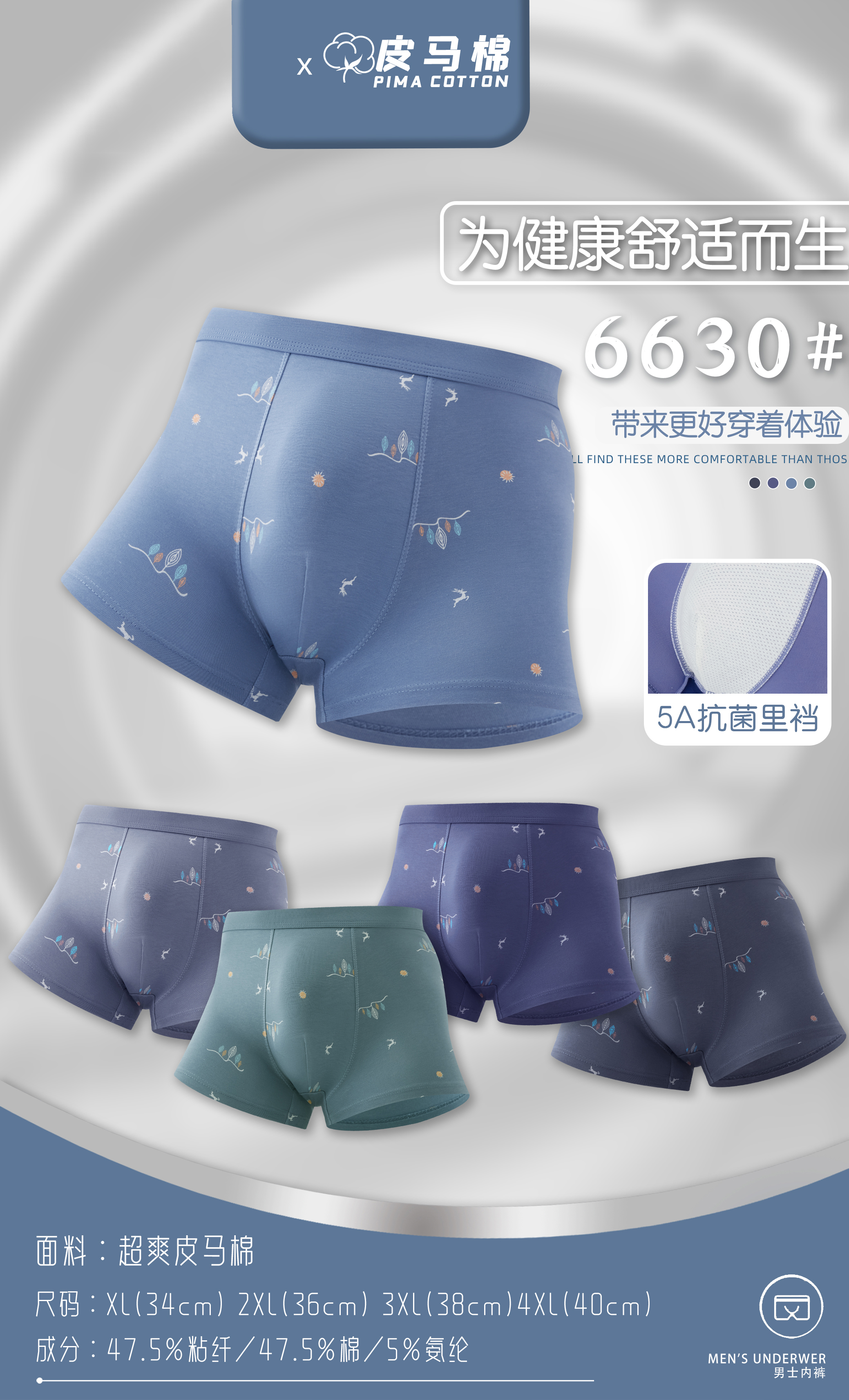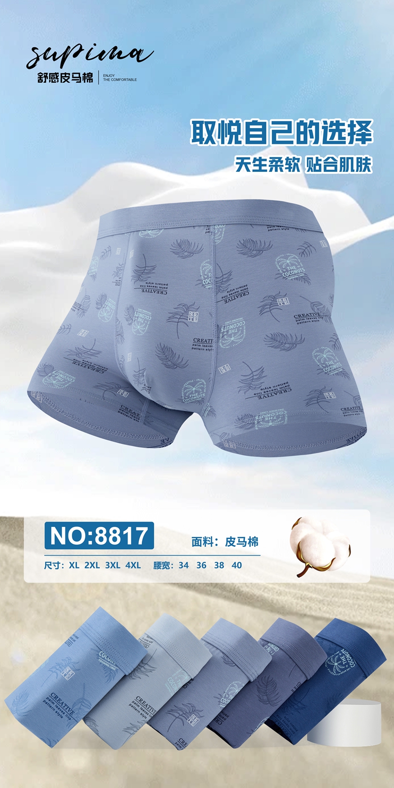 【两条装】男士舒感皮马棉匹马棉包头树叶柠檬麦穗印花平角内裤8817/8818/8805/8768/6630/8809/8760