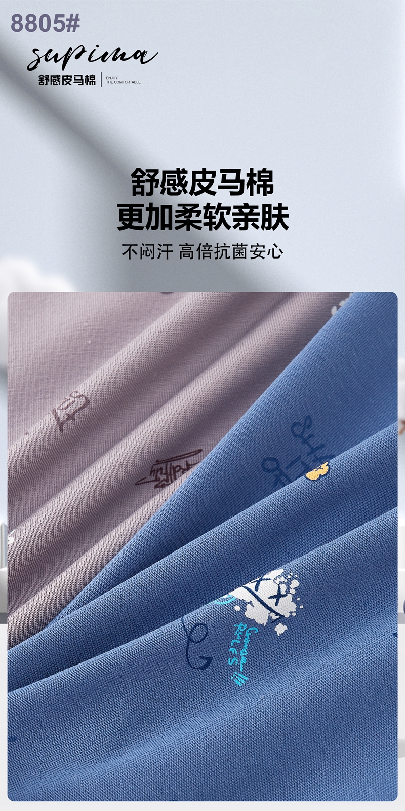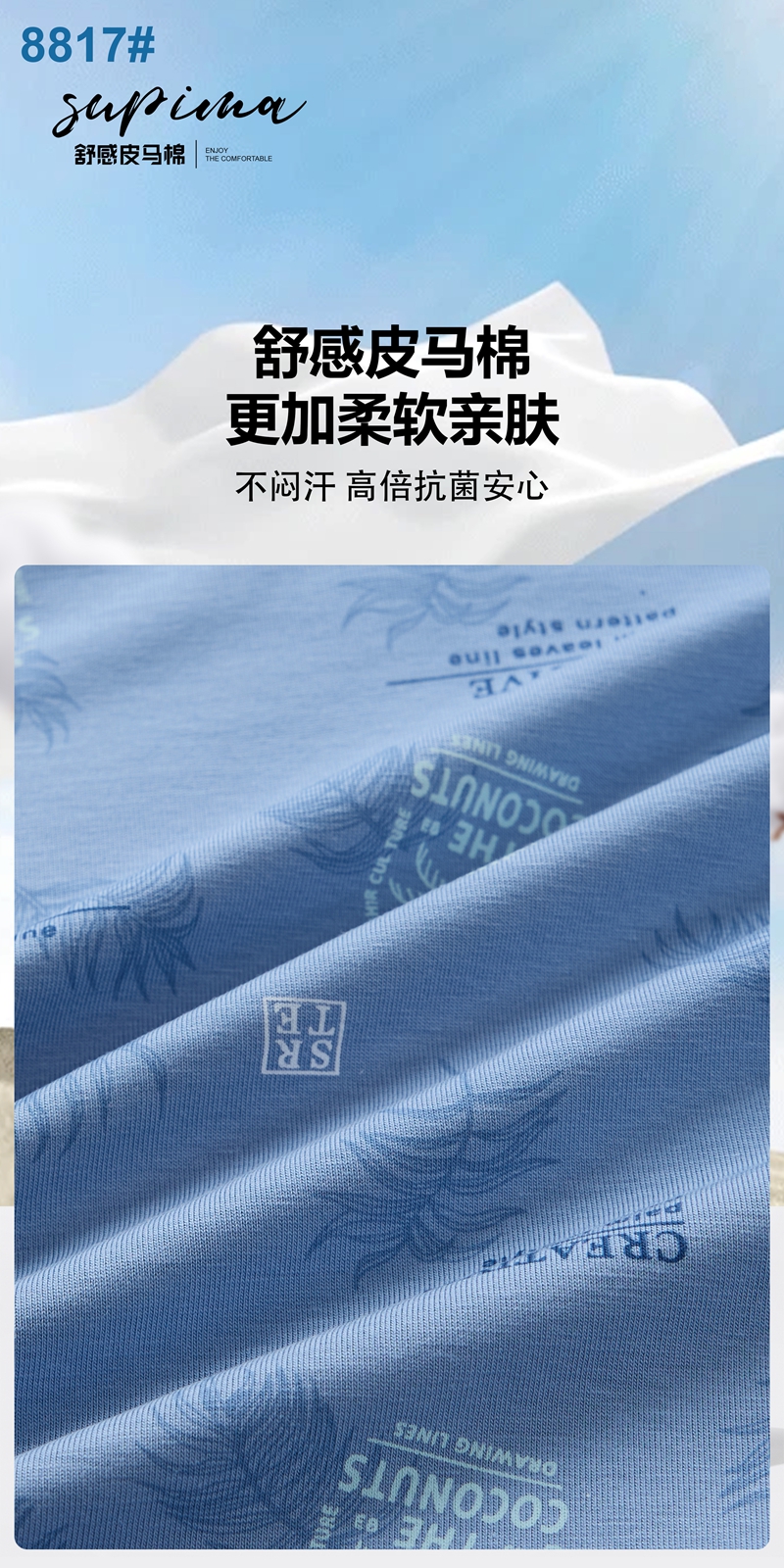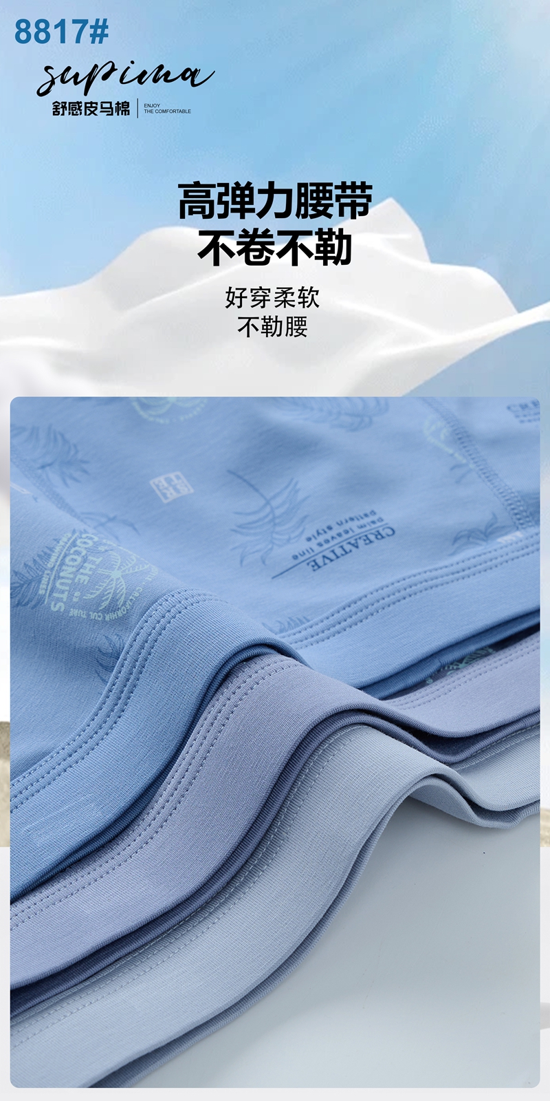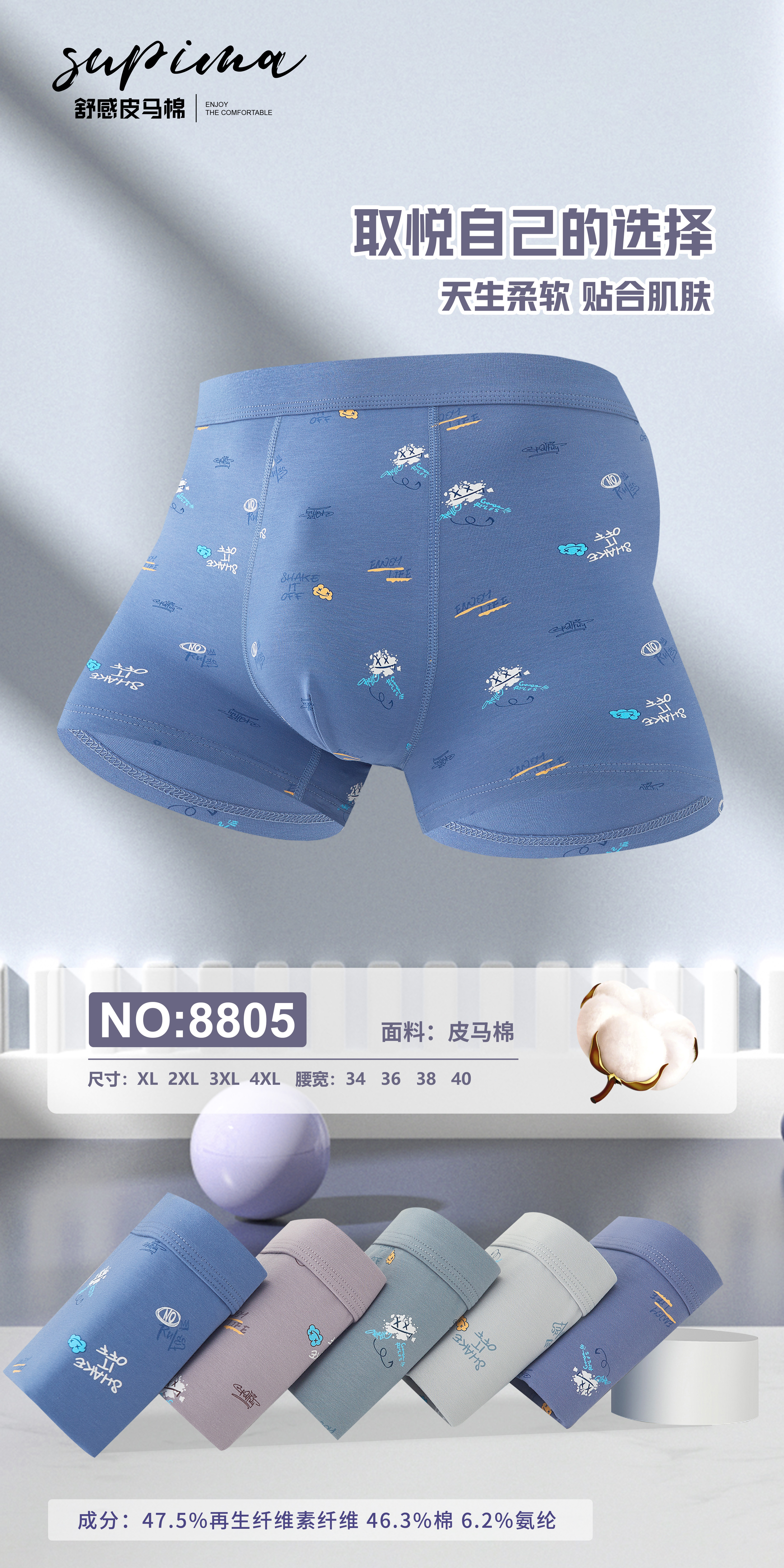 【两条装】男士舒感皮马棉匹马棉包头树叶柠檬麦穗印花平角内裤8817/8818/8805/8768/6630/8809/8760