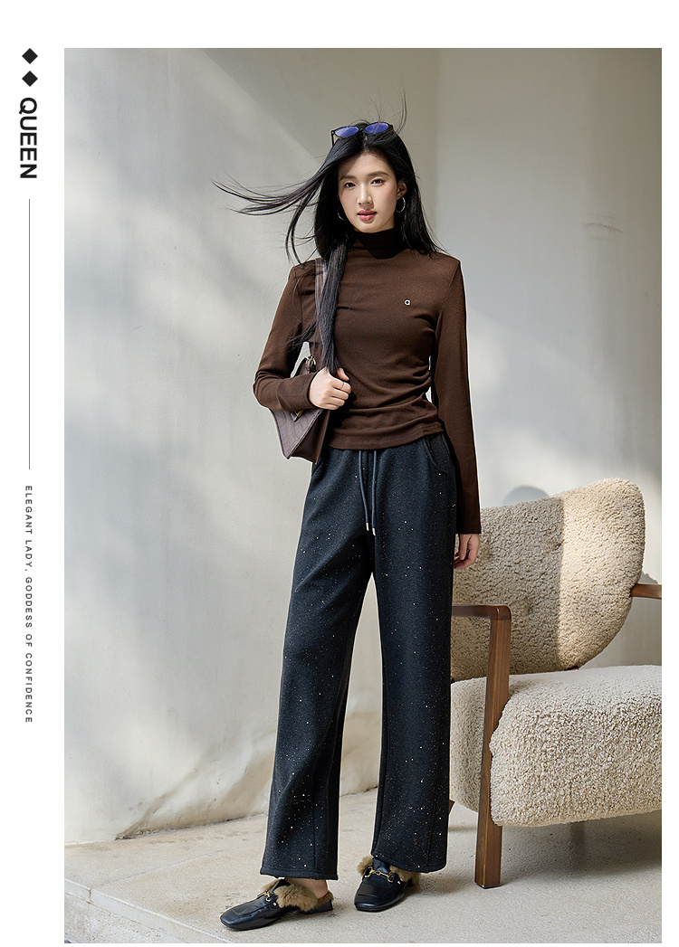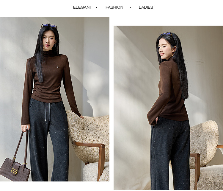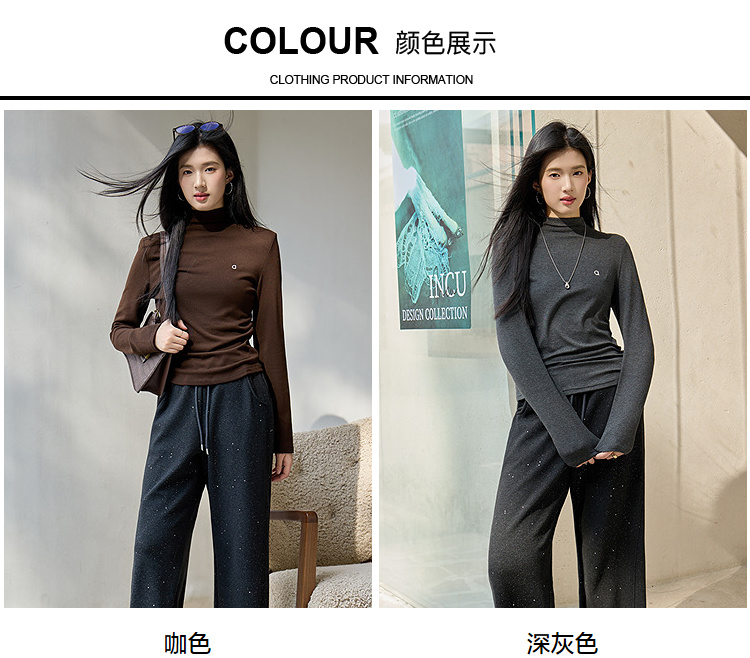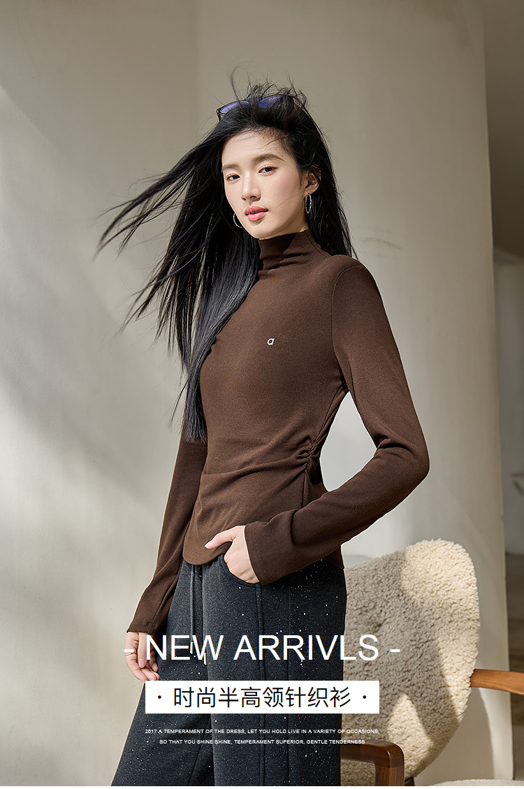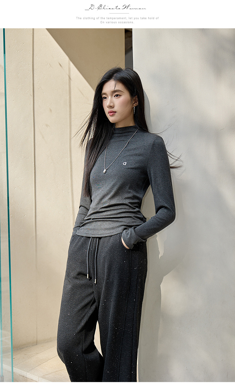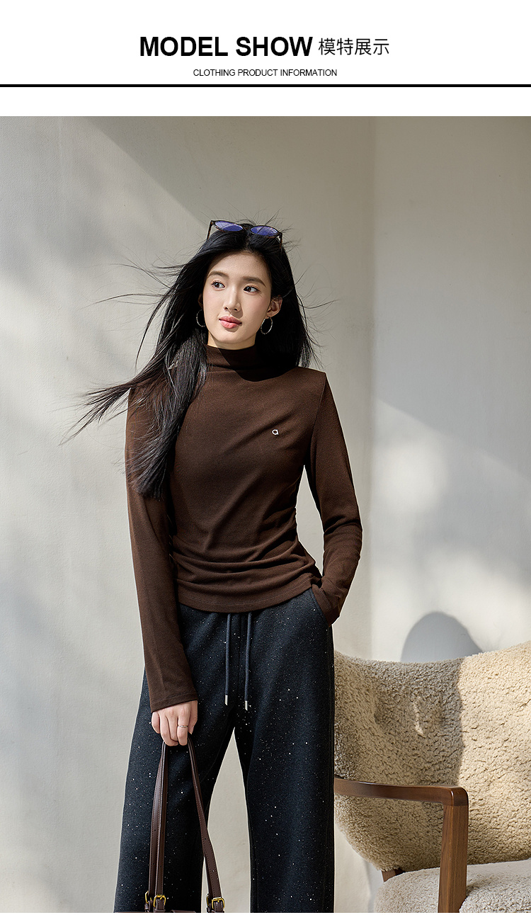奢姿大码女装2025冬季减龄字母半高领设计打底衫胖妹妹时尚上衣9954110006