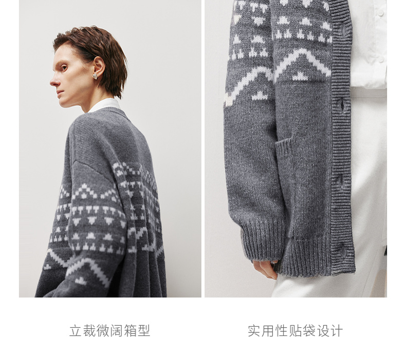 【商场同款】麦檬冬费尔岛提花针织开衫外套5EC134461
