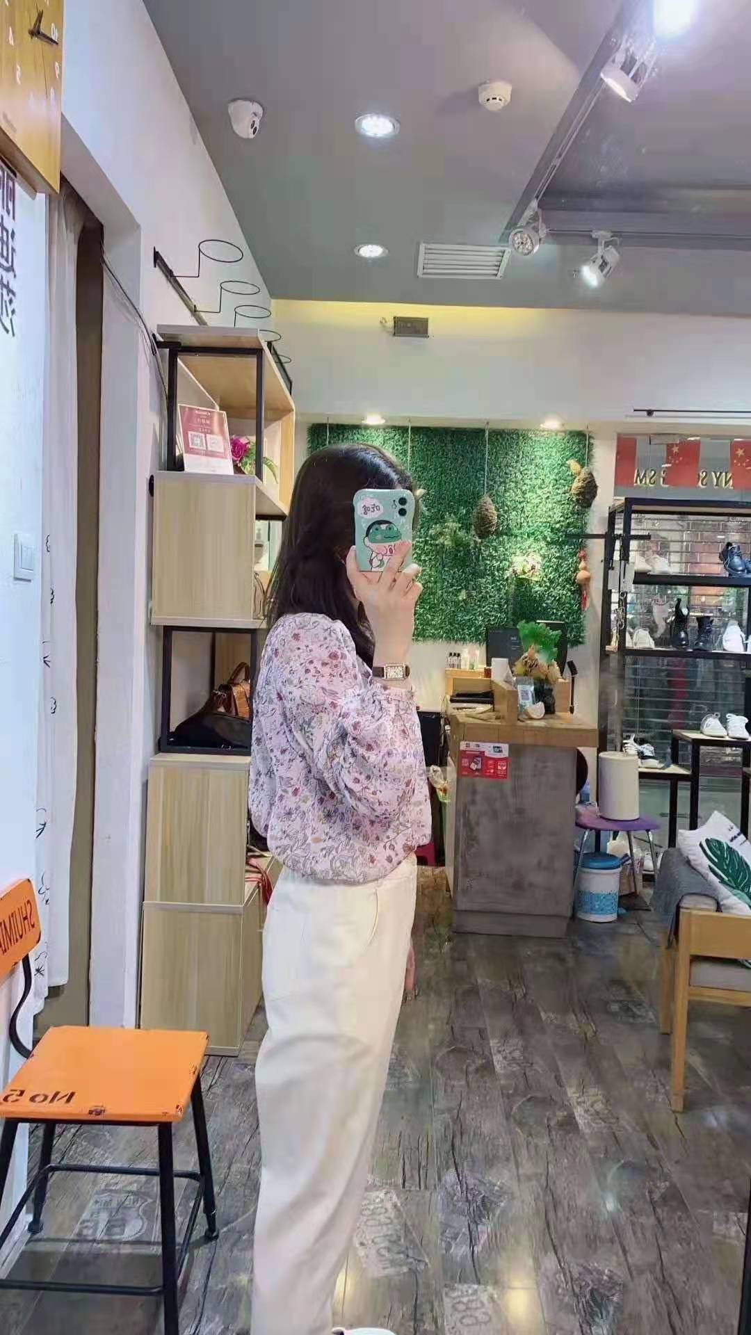 丽迪莎12x3010款时尚休闲版,碎花小衫,面料100%环保聚酯纤维,泡泡袖,下摆宽松,亲肤性好,柔软飘逸,浪漫田园印花,适合90-135斤穿着
