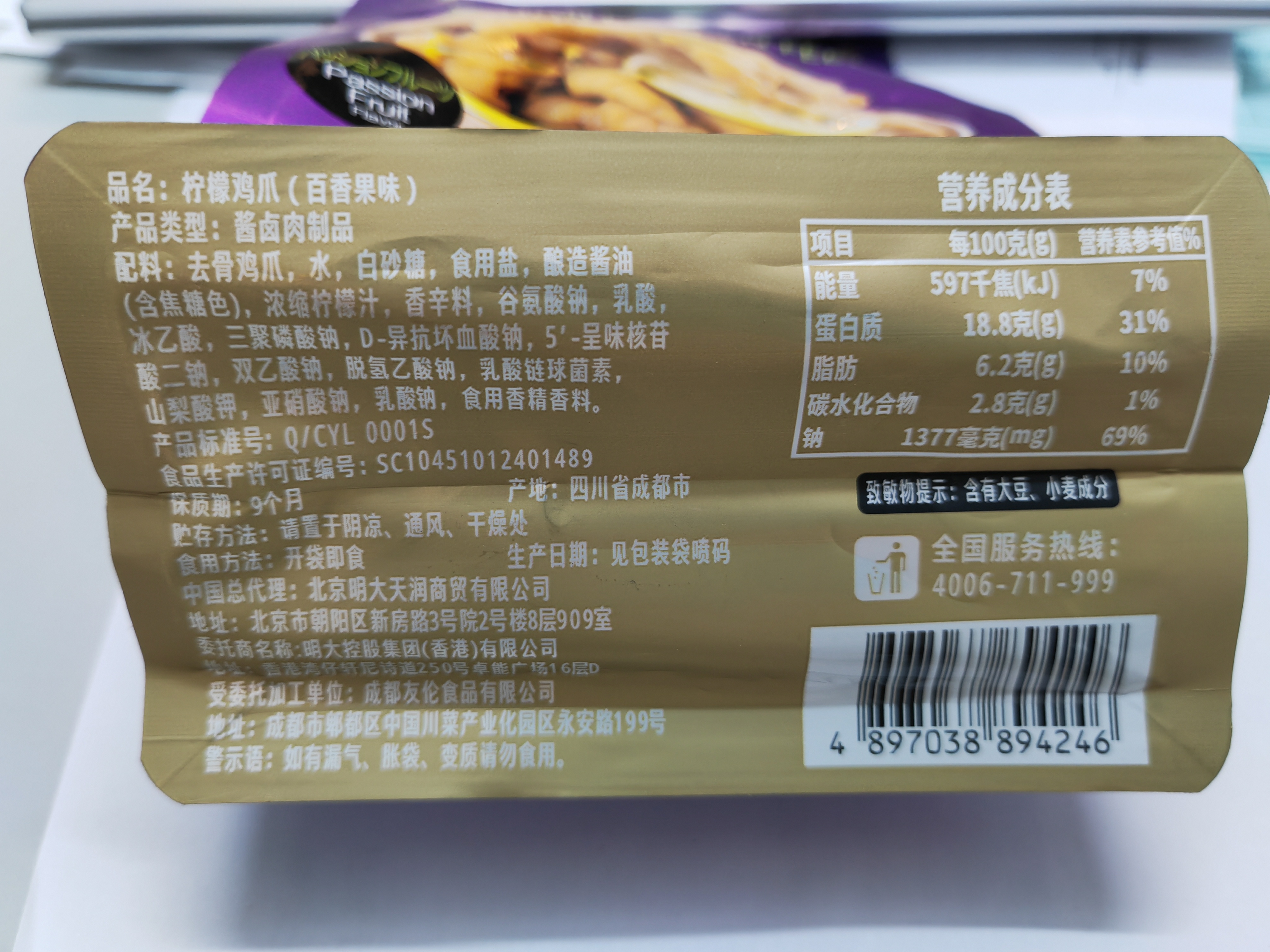 赛味馆柠檬鸡爪百香果味110g