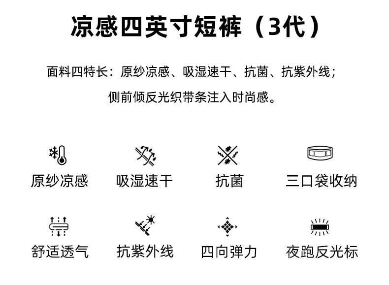 马孔多梭织4英寸跑步短裤 三口袋收纳 原纱凉感 速干 抗菌 抗紫外线