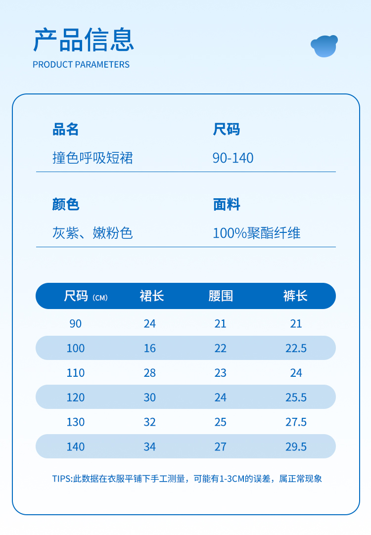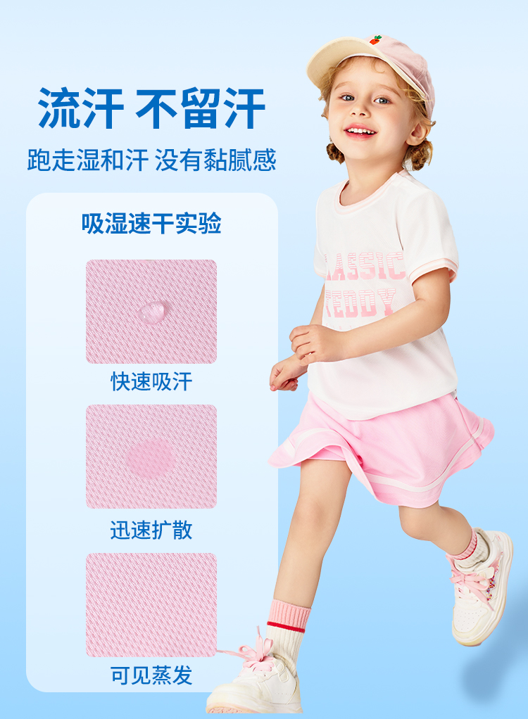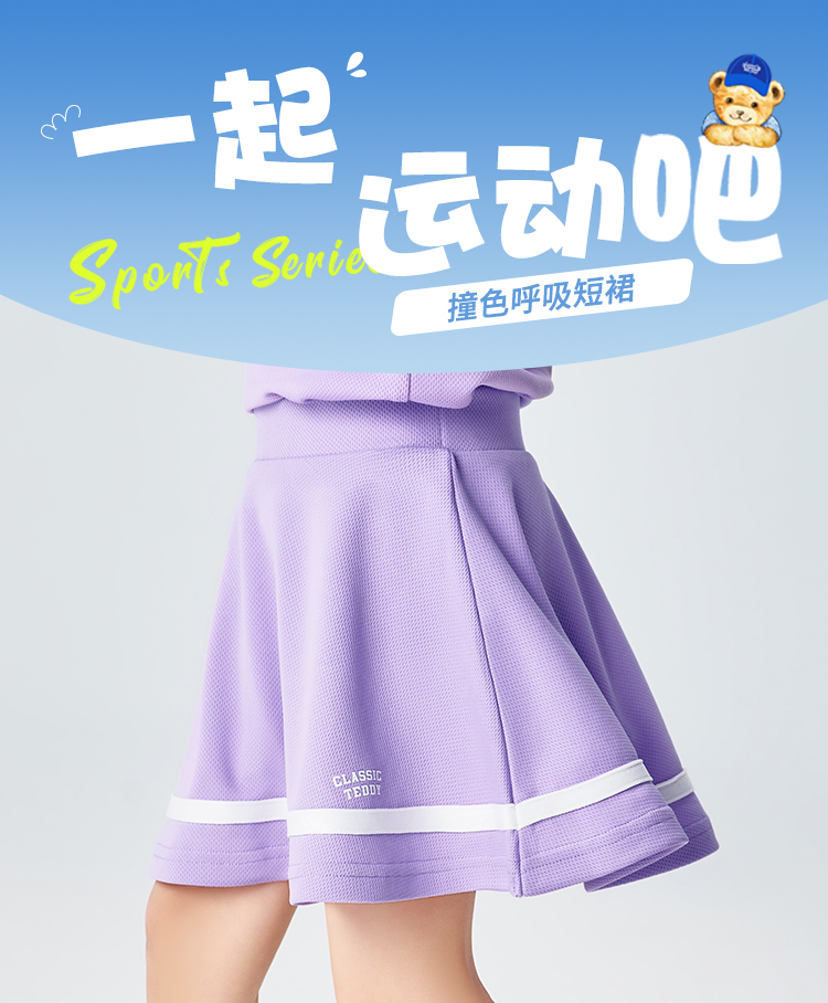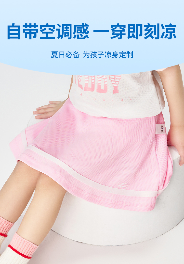 【儿童速干网眼】【90-140】【精典泰迪】女童网球运动裙子儿童JK半身裙