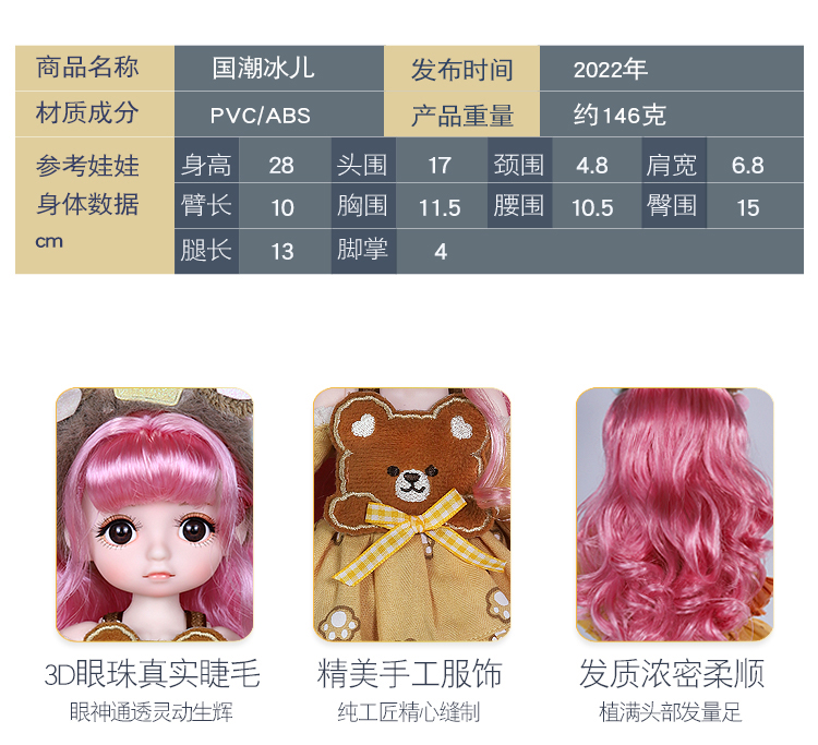 德必胜娃娃宁可芭比娃娃30cm玩具国潮冰儿女孩仿真玩具bjd可改妆