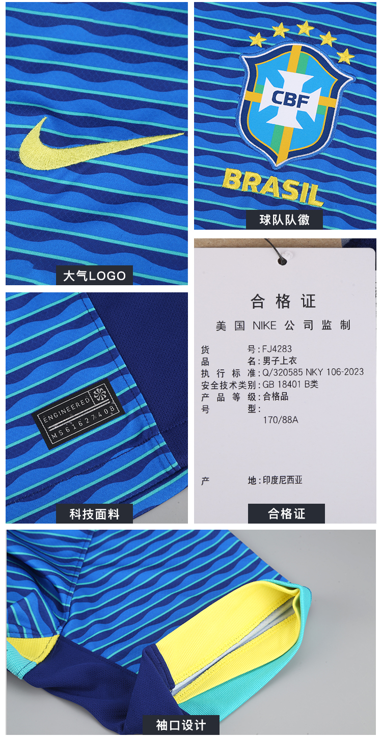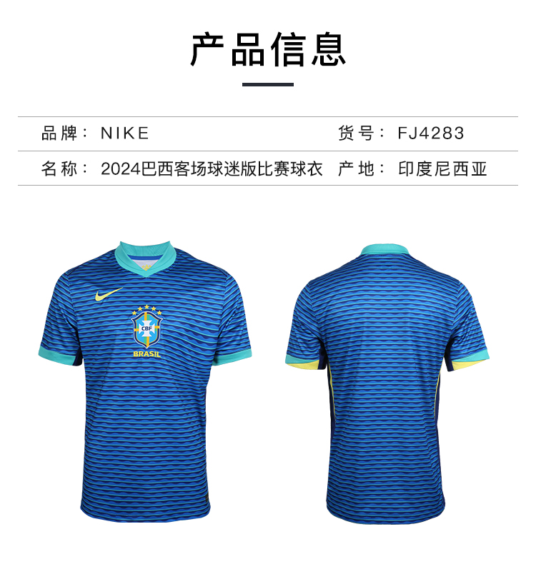 小李子NIKE耐克2024巴西客场球迷版比赛球衣成人短袖男FJ4283-458