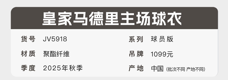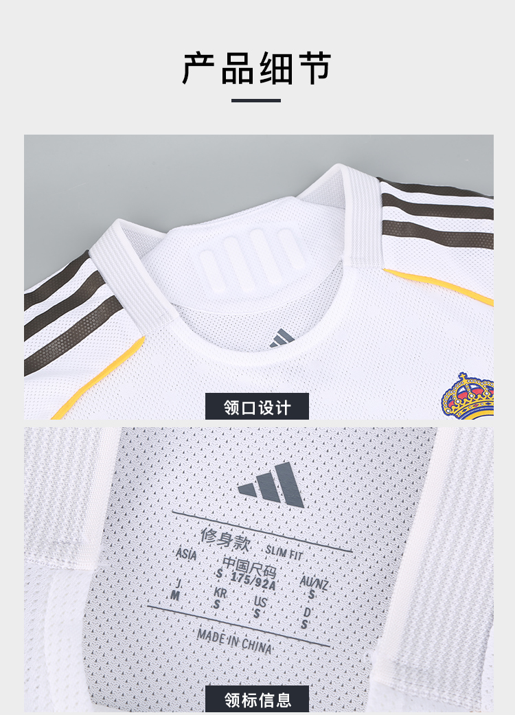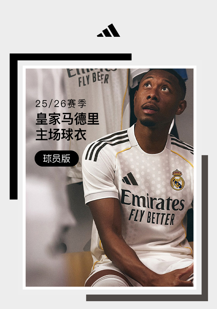 小李子阿迪达斯25/26赛季皇马球员版主场短袖比赛球衣足球服JV5918