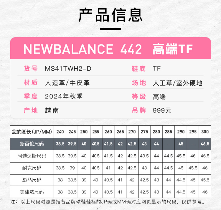 小李子NEWBALANCE新百伦442 V2高端TF碎钉牛皮成人比赛足球鞋男