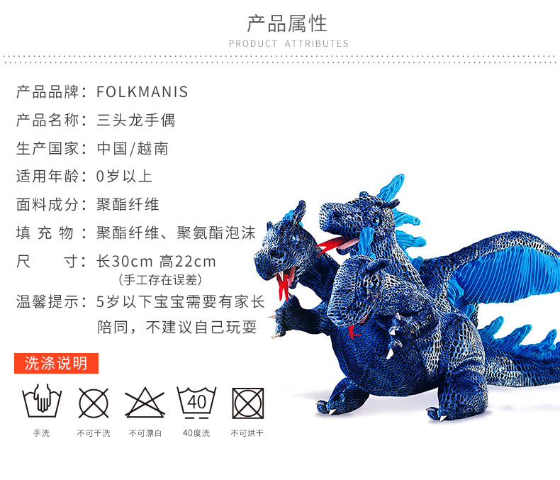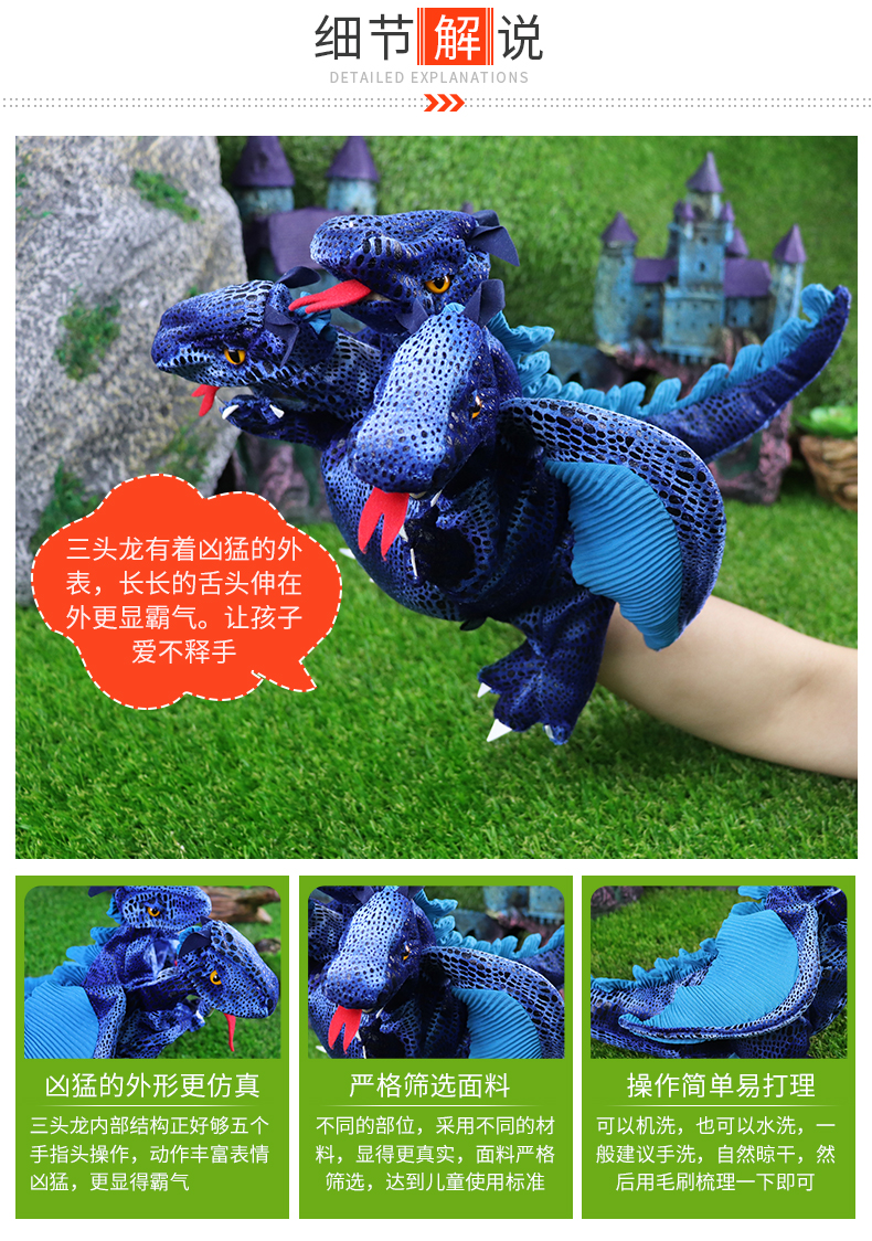 Folkmanis Puppets三头龙玩具/2387玩偶毛绒玩具礼物