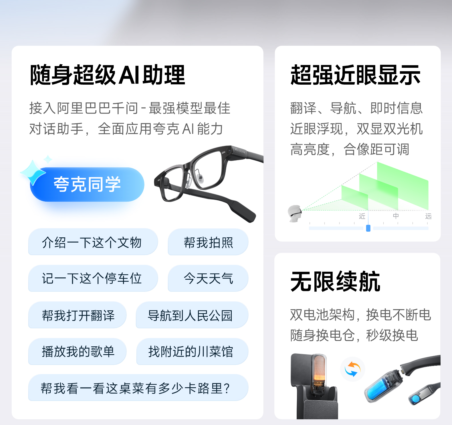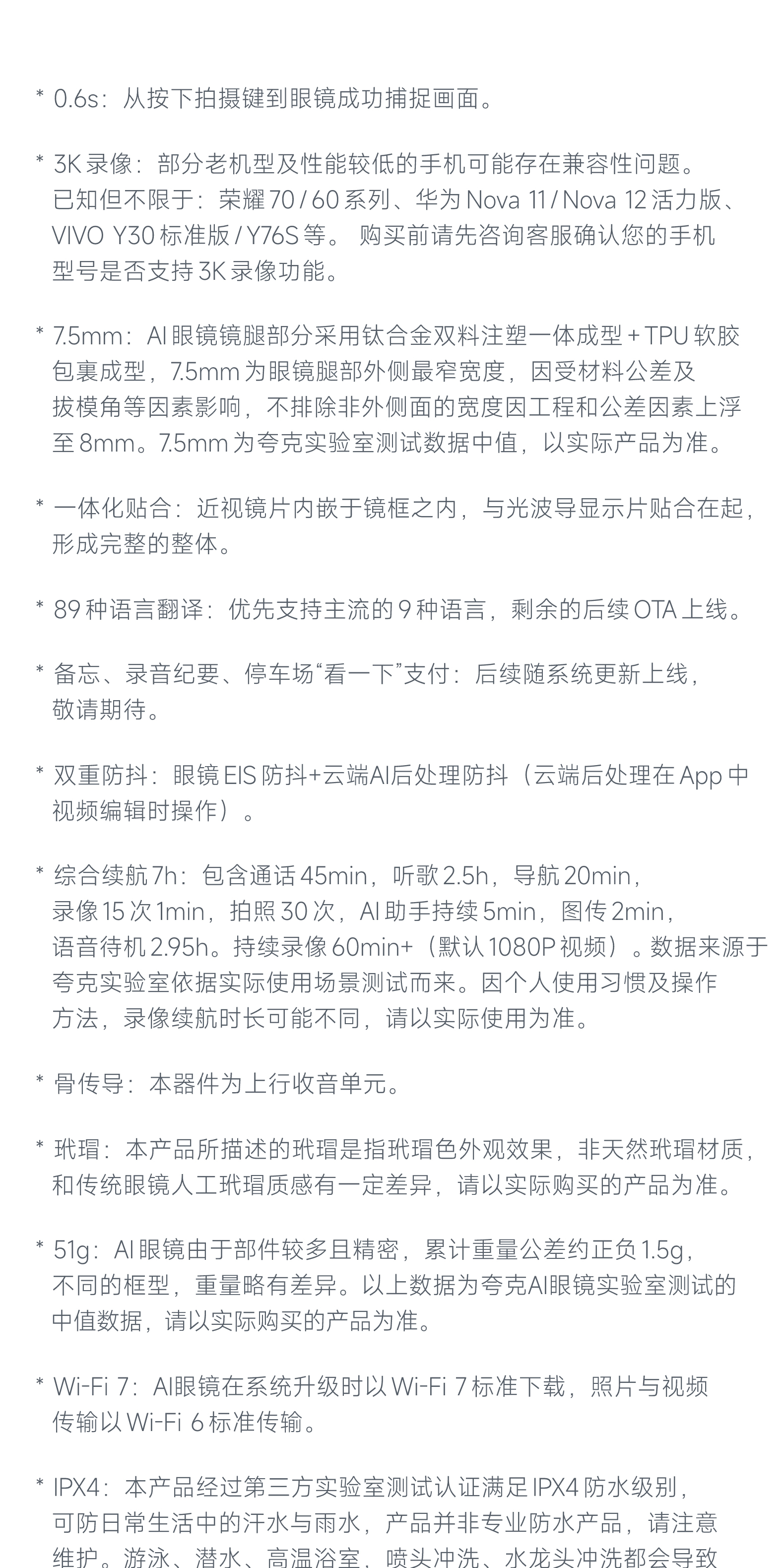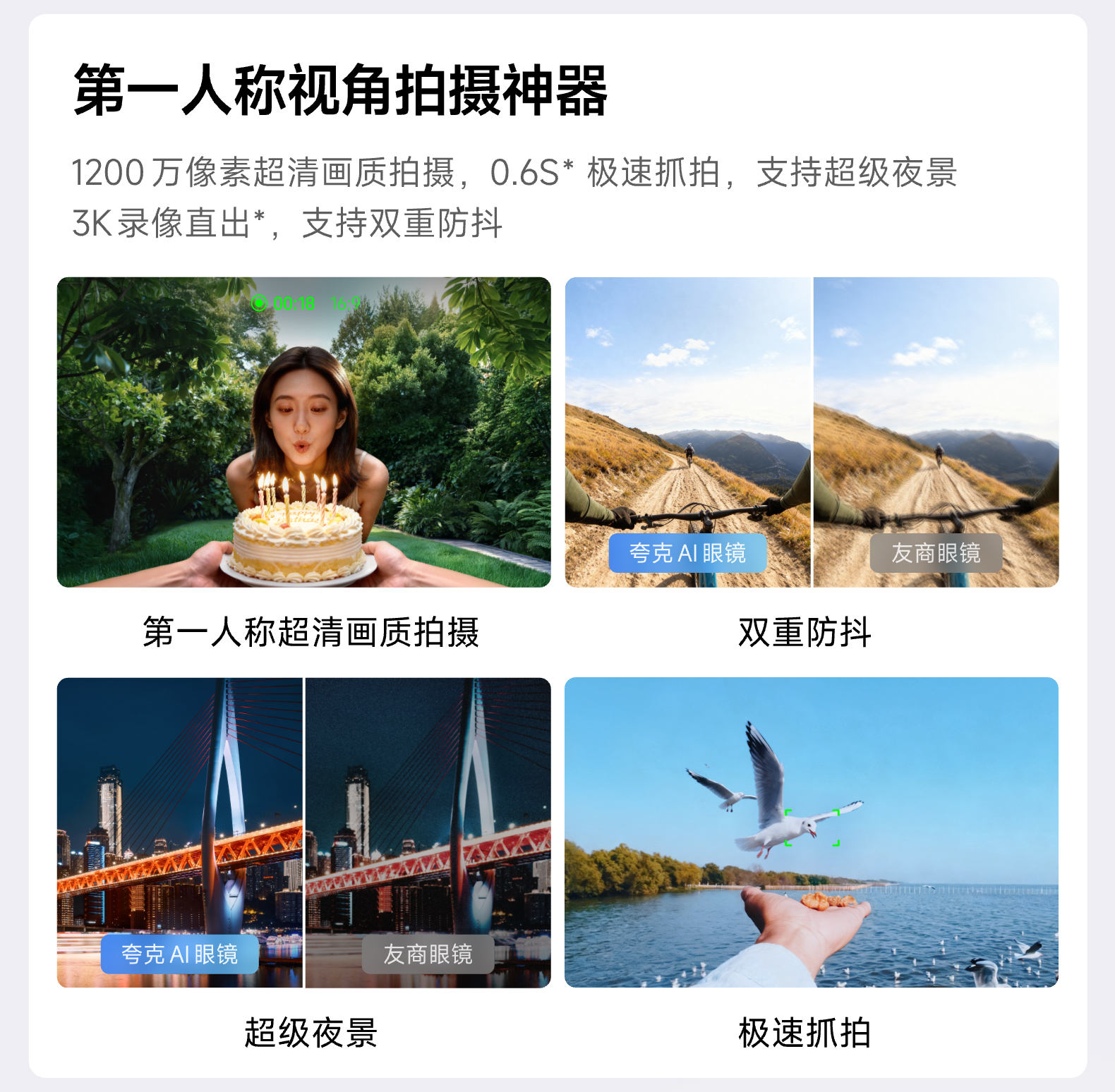 夸克/Quark 夸克AI眼镜S1智能眼镜双目显示超级夜景导航(镜片度数咨询客服)