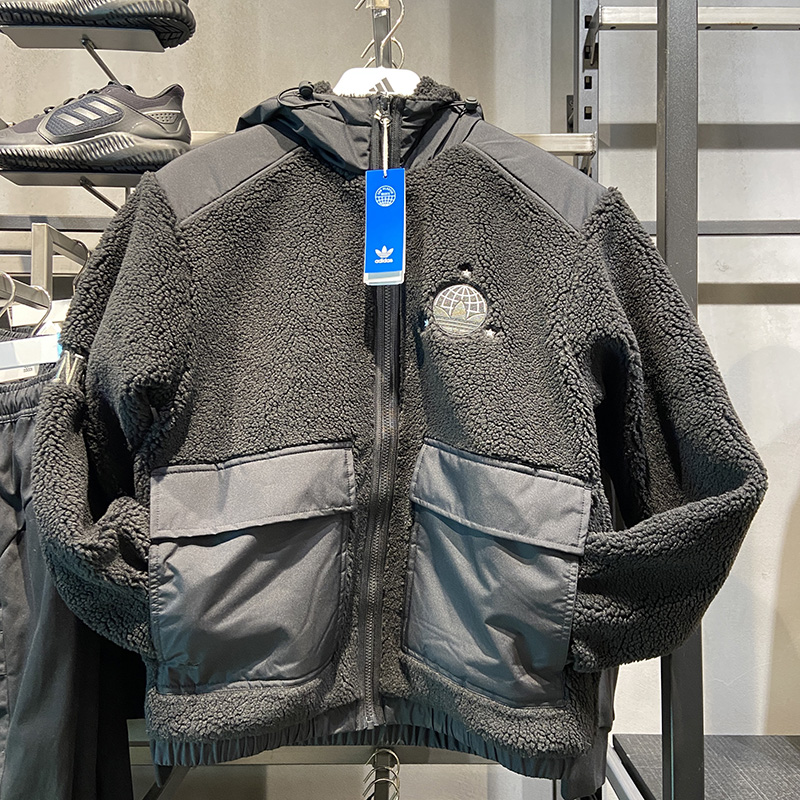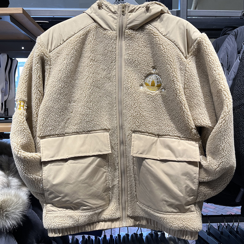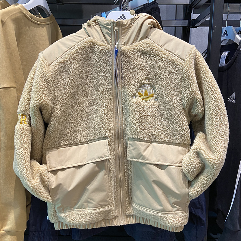 【奥莱直发】阿迪达斯连帽加厚保暖羊羔绒夹克 S-L码