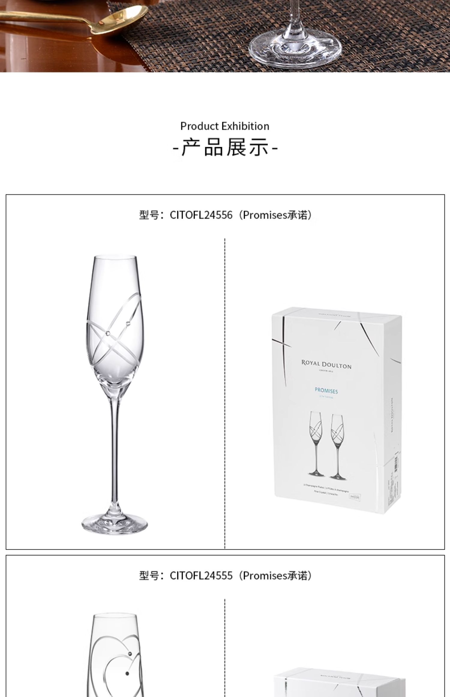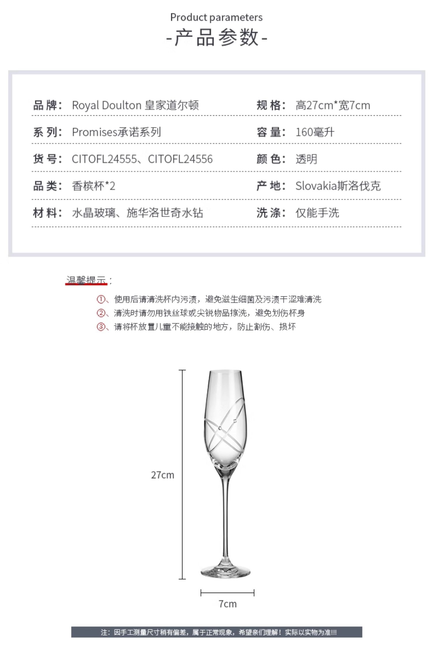 RoyalDoulton 皇家道尔顿水晶玻璃香槟杯酒杯一对结婚礼物