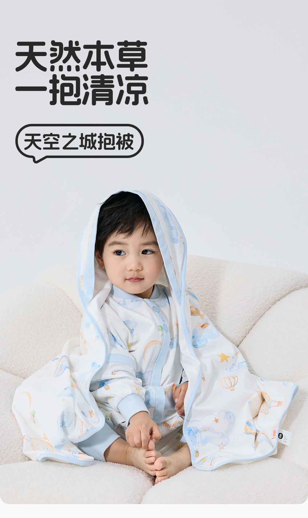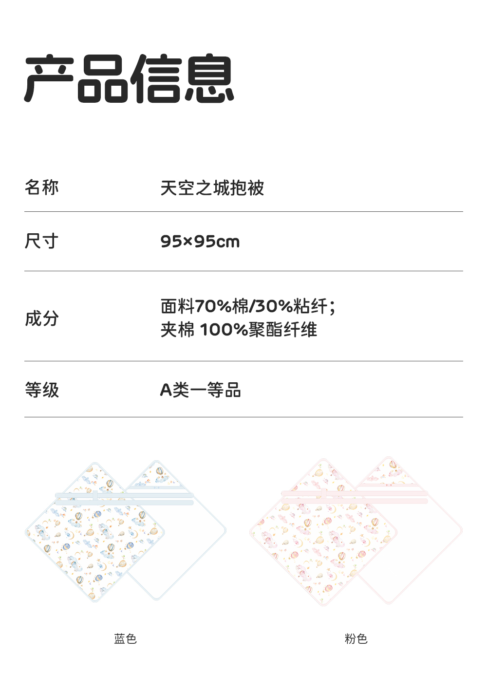 良良天空之城薄夹棉抱被|蓝色(95*95cm)40g