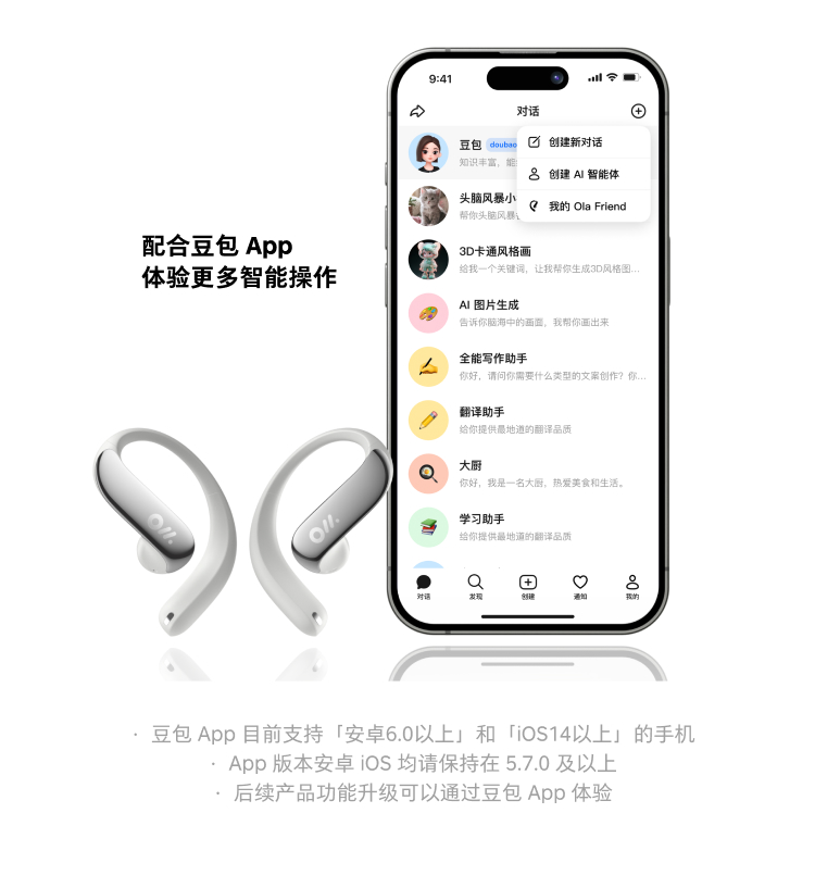 Ola Friend 智能体耳机 字节跳动豆包AI 开放式不入耳蓝牙耳机运动