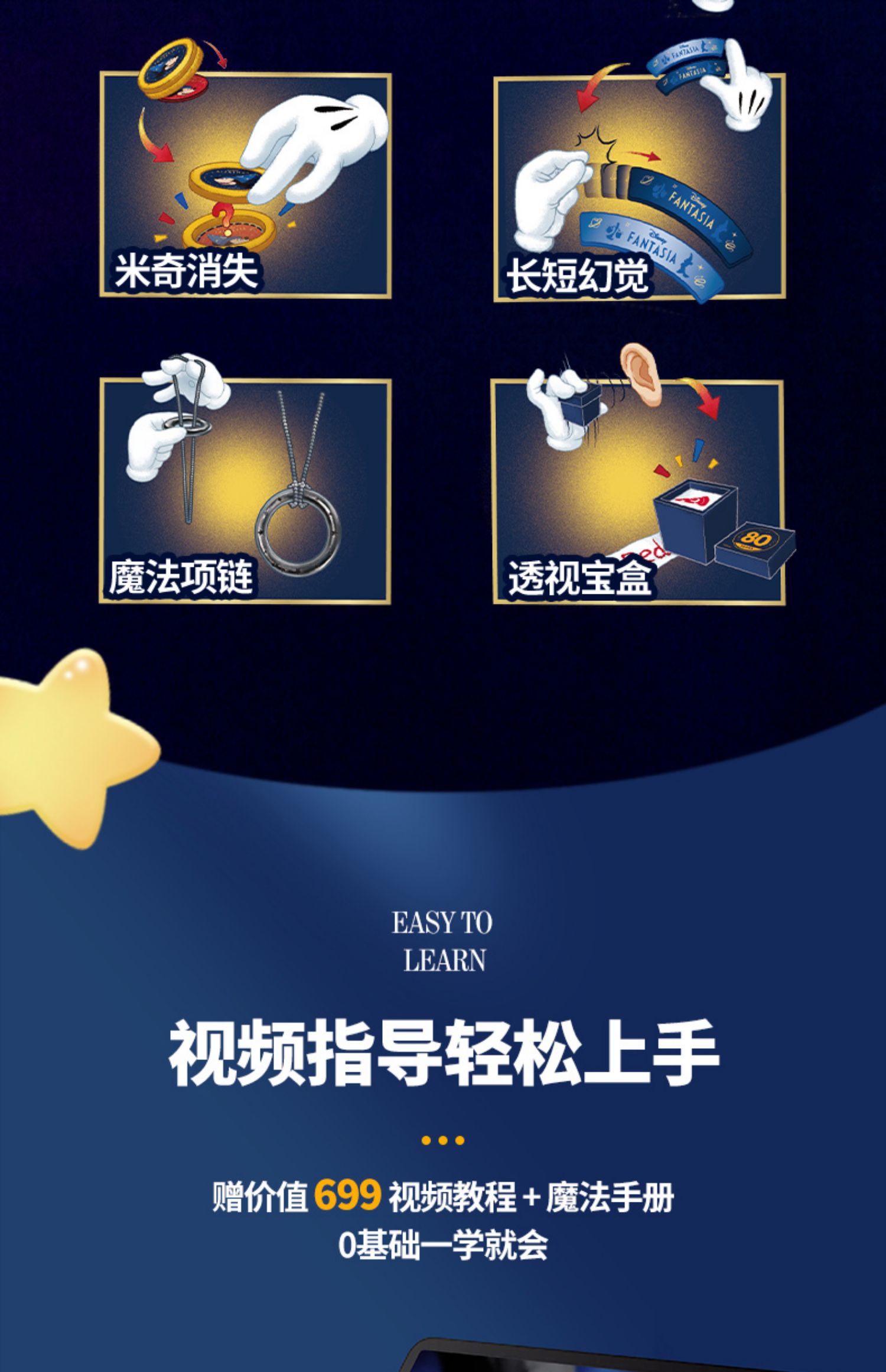 魔法汇迪士尼幻想曲系列魔法米奇魔术道具近景玩具儿童大礼盒套装