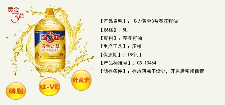 多力/MIGHTY 黄金3益葵花籽油 5L