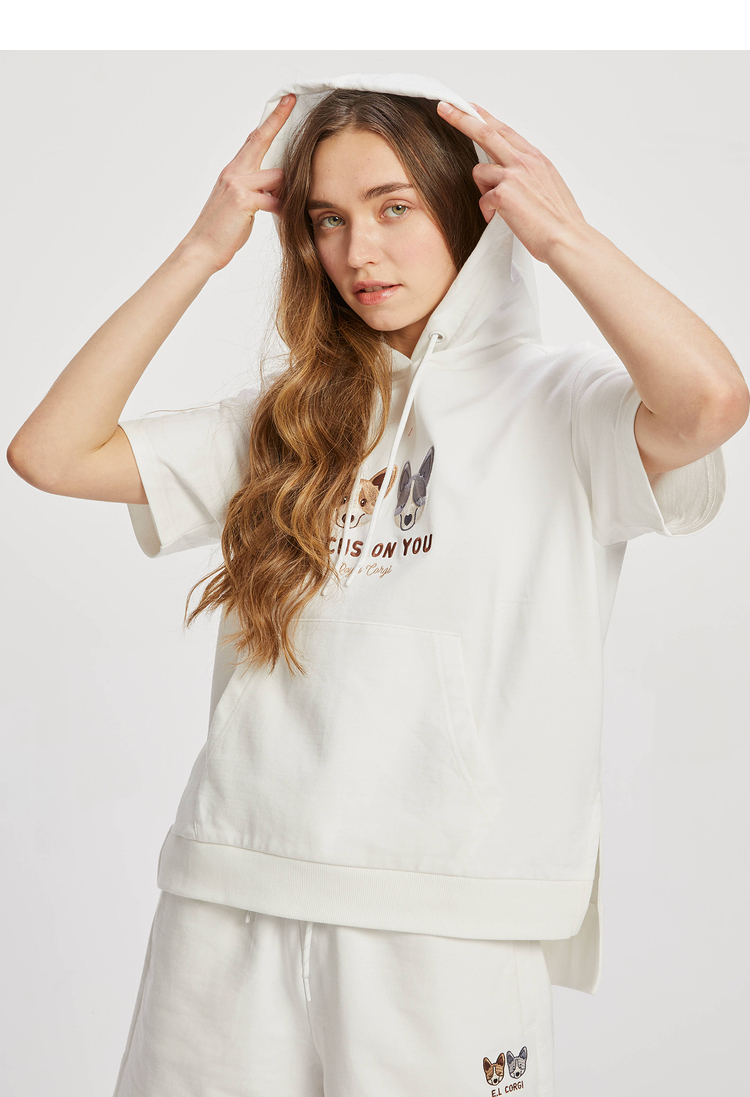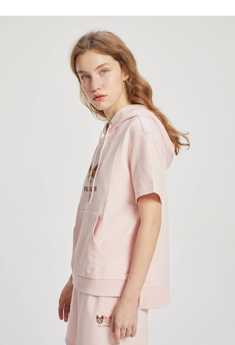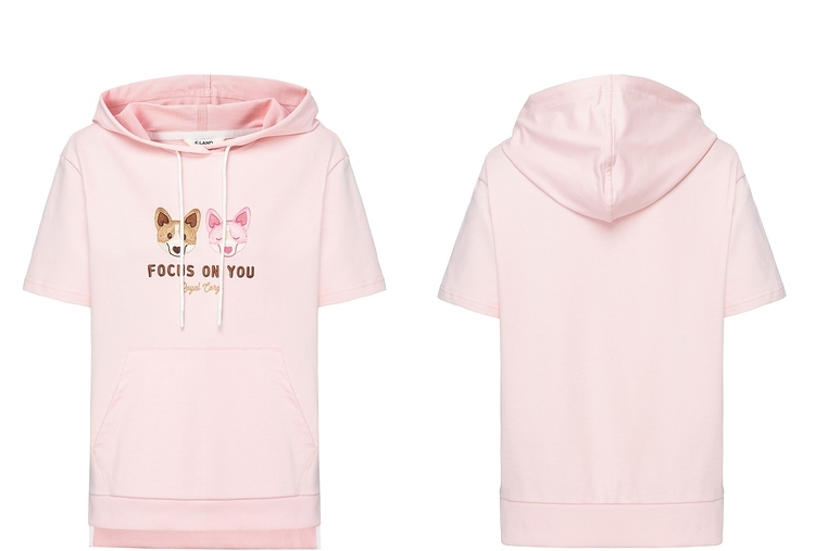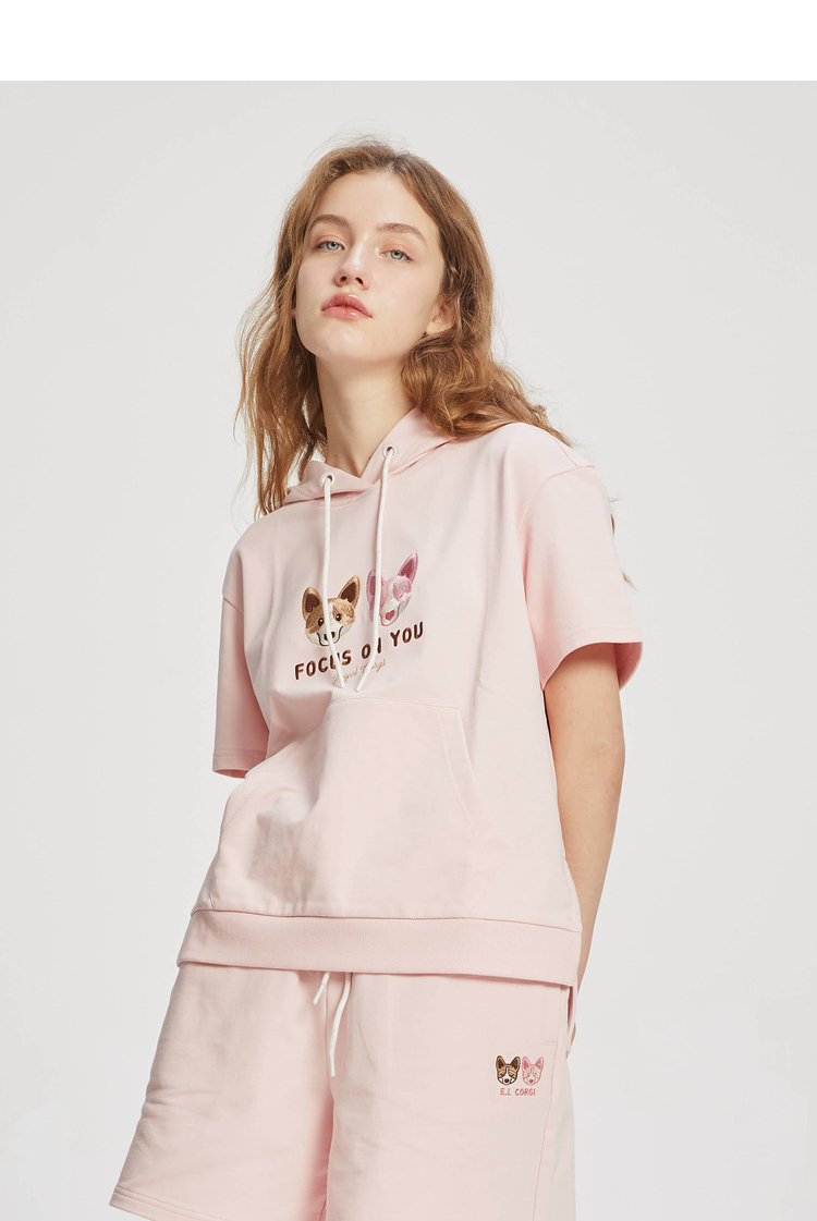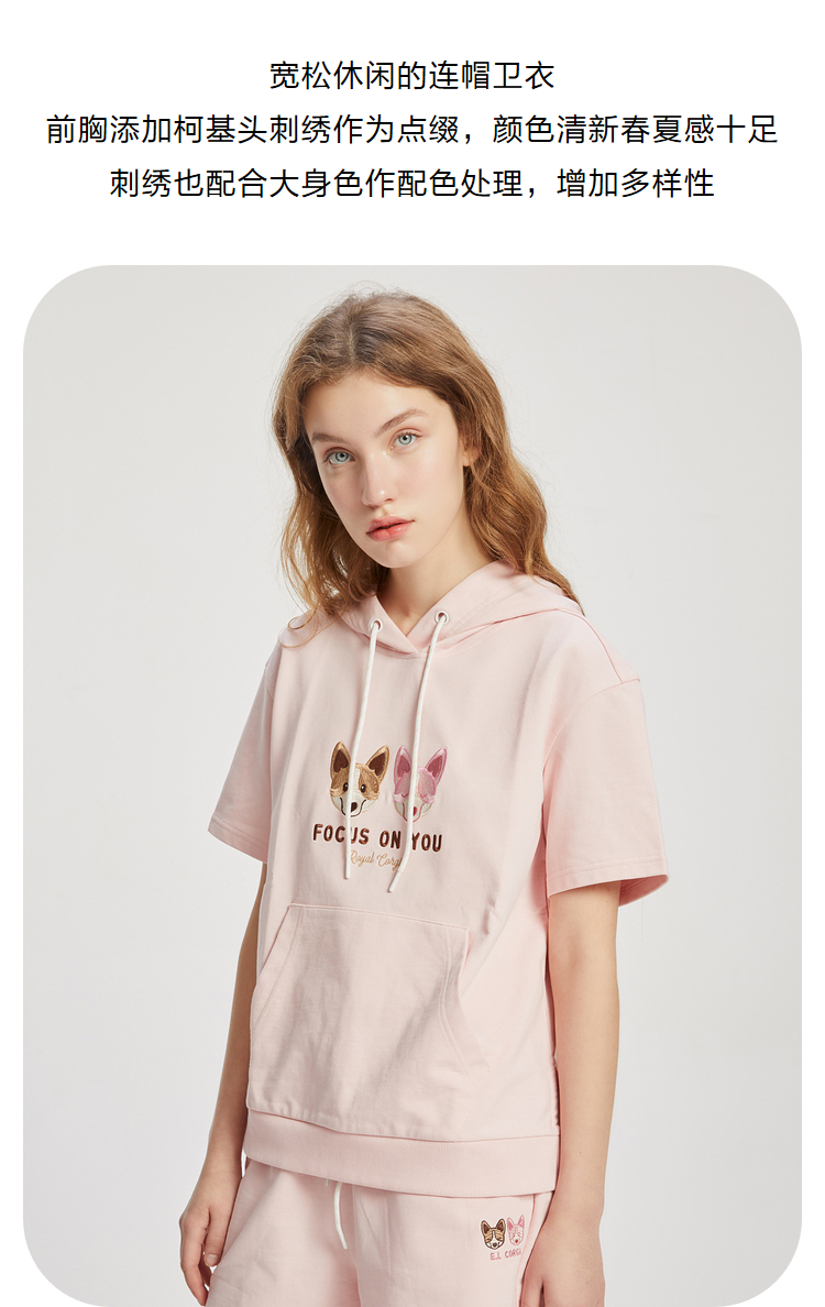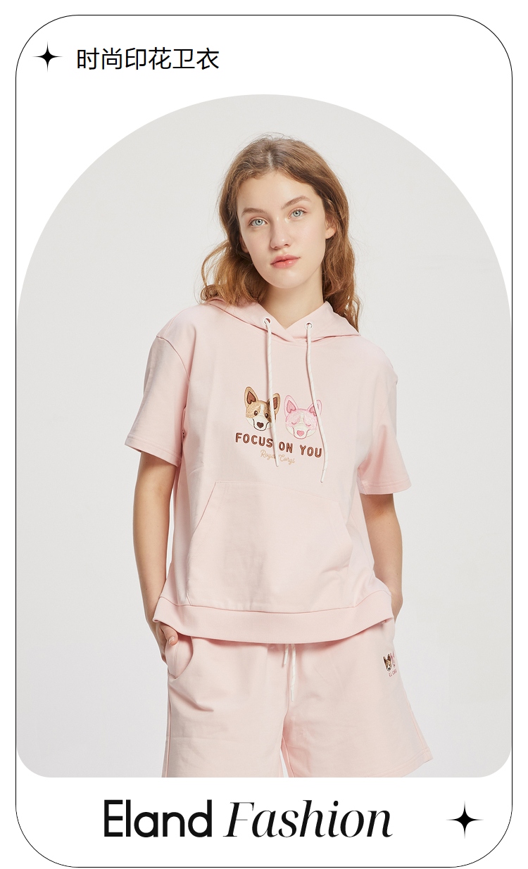 ELAND2022年春季新款甜美柯基刺绣连帽短袖上衣卫衣女EEMTC24E1M