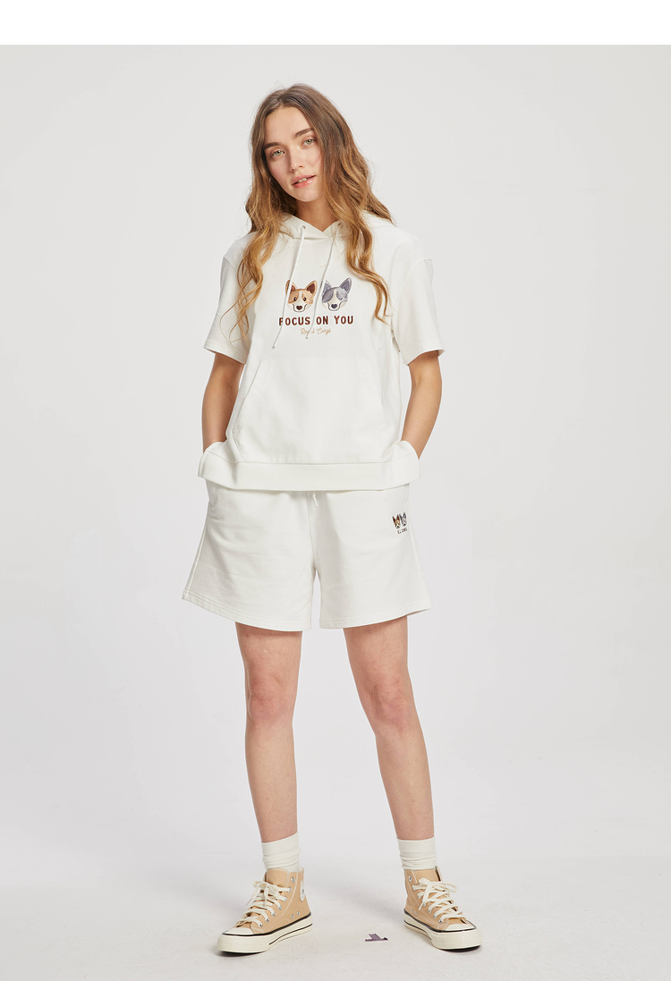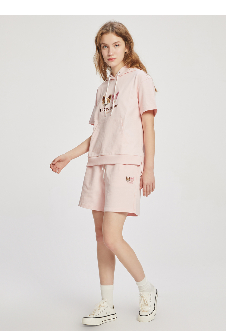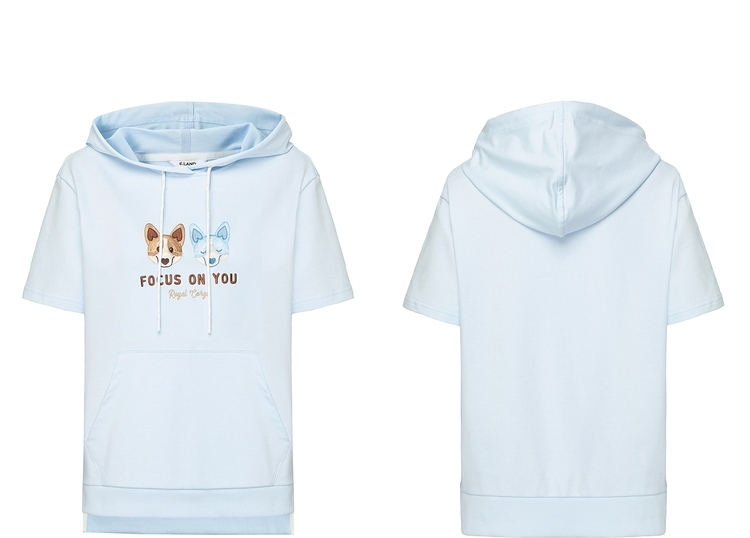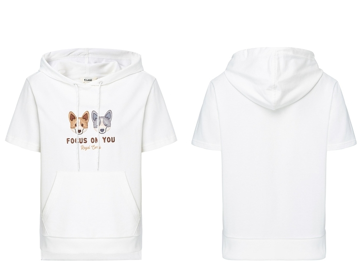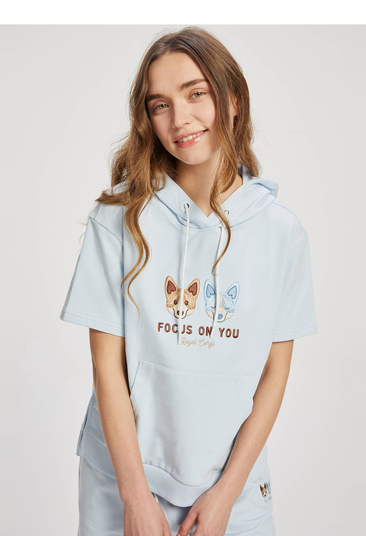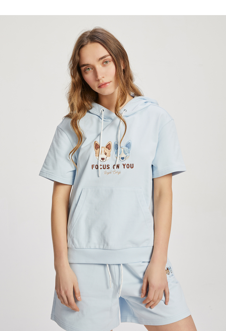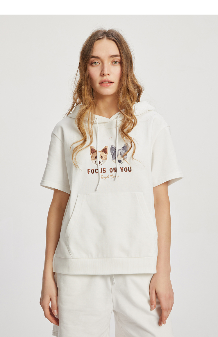 ELAND2022年春季新款甜美柯基刺绣连帽短袖上衣卫衣女EEMTC24E1M