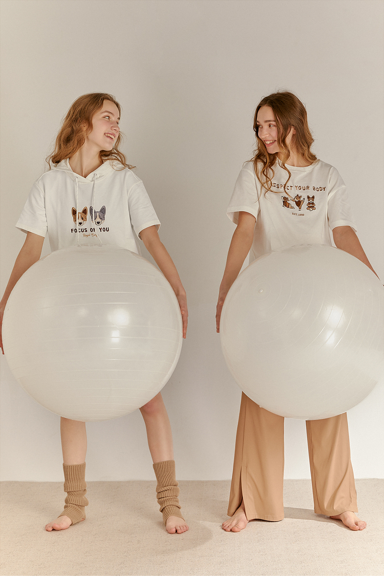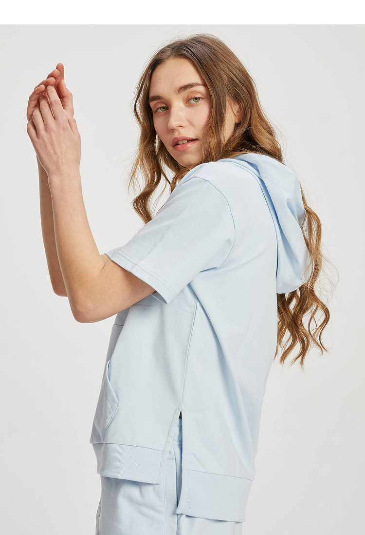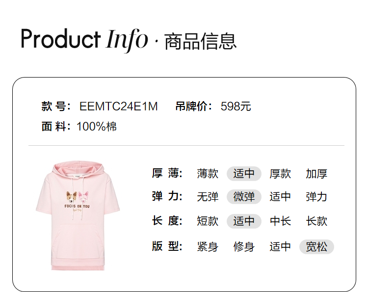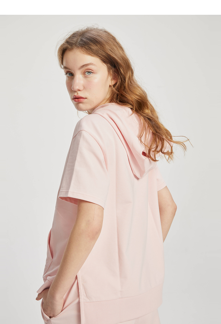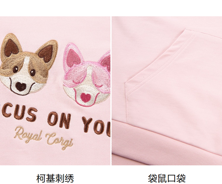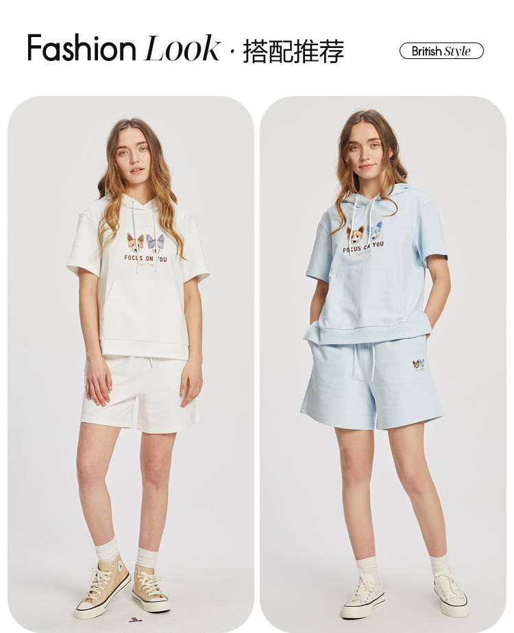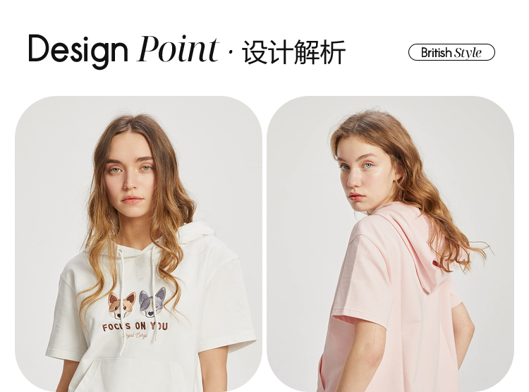 ELAND2022年春季新款甜美柯基刺绣连帽短袖上衣卫衣女EEMTC24E1M