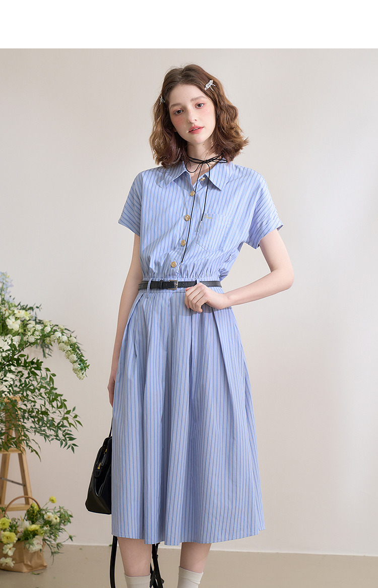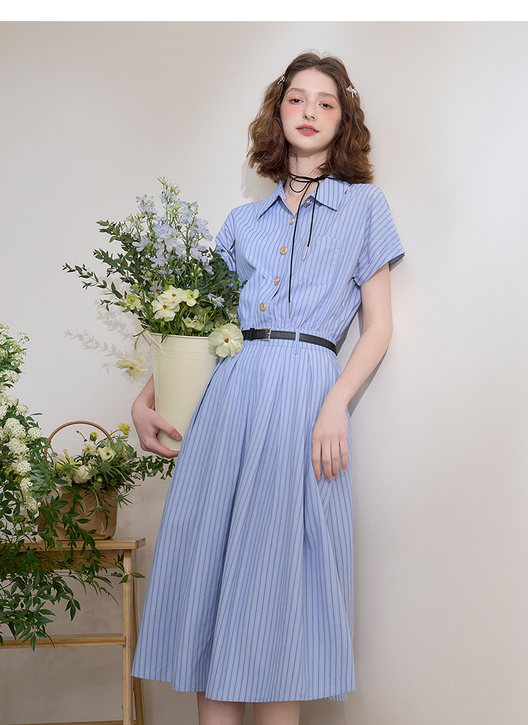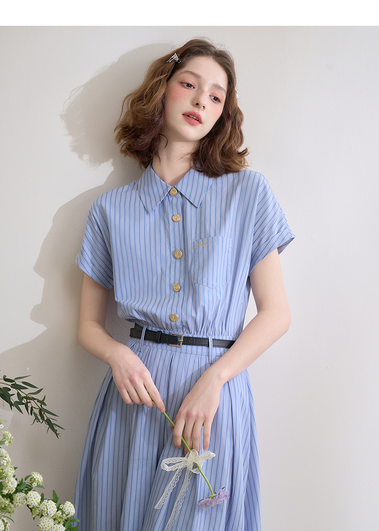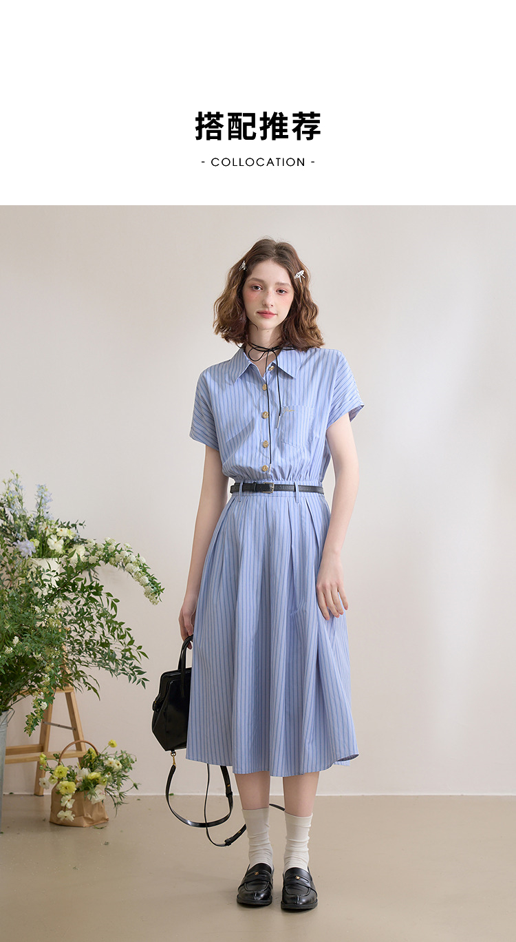 复古英伦风条纹文艺感翻领衬衫裙女春季学院风连衣裙LXD50309