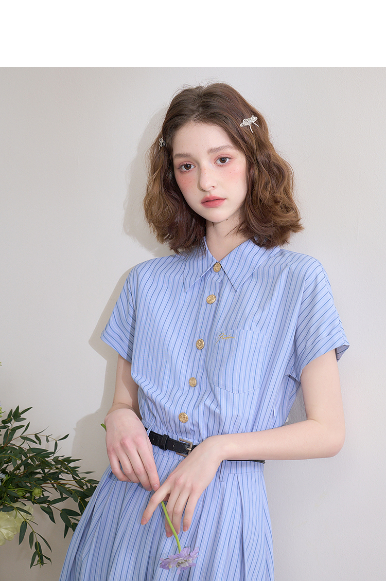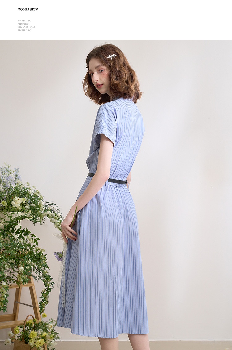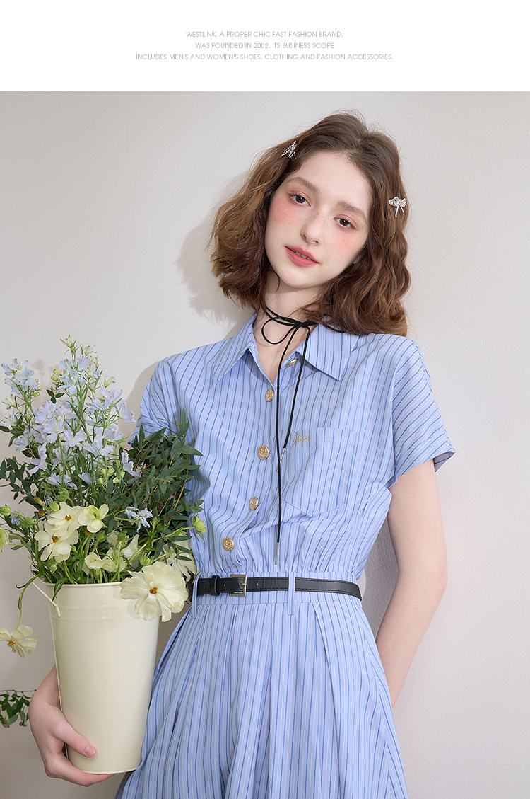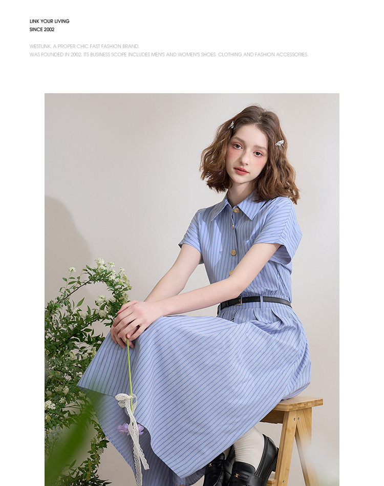 复古英伦风条纹文艺感翻领衬衫裙女春季学院风连衣裙LXD50309