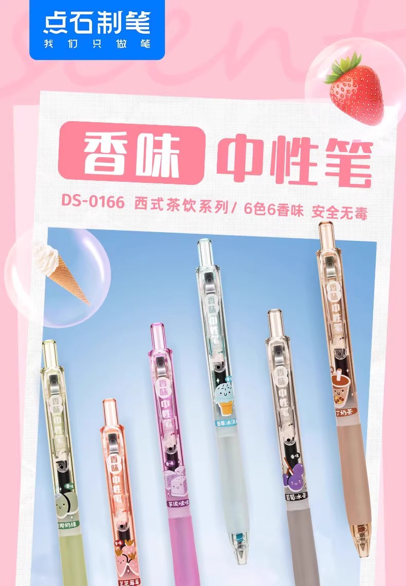 【拍1发6!糖果色系】点石DS-0166 香味彩色按动中性笔 复古色手账 笔记用 0.5水笔文具