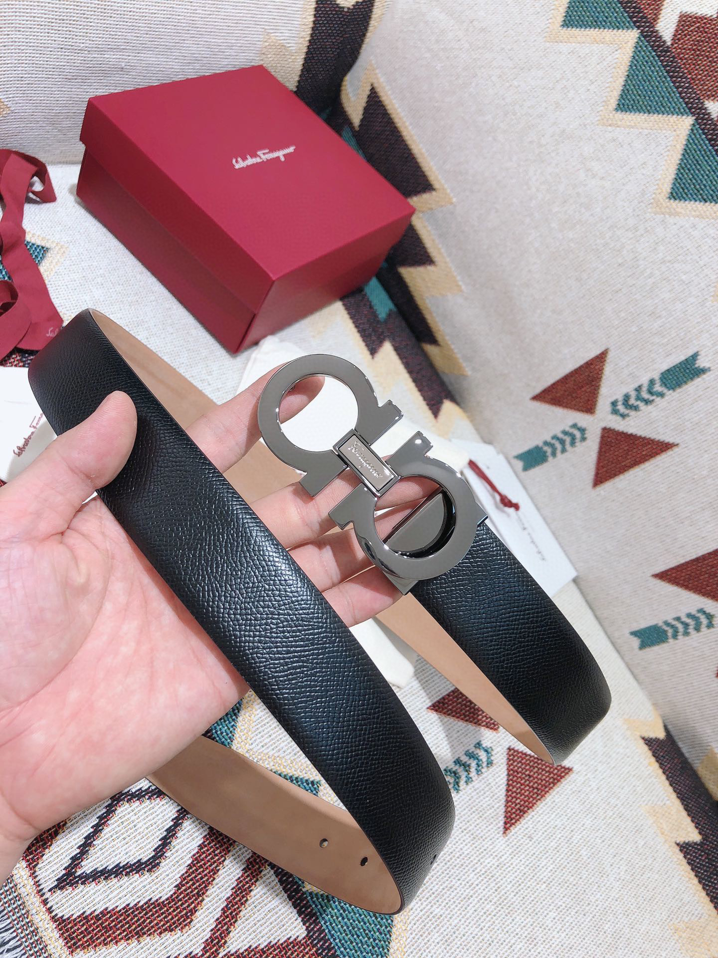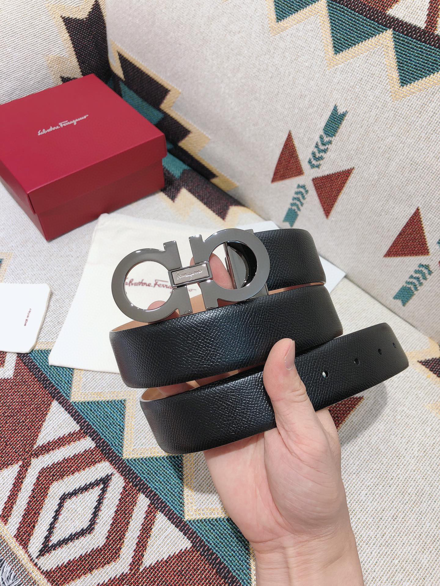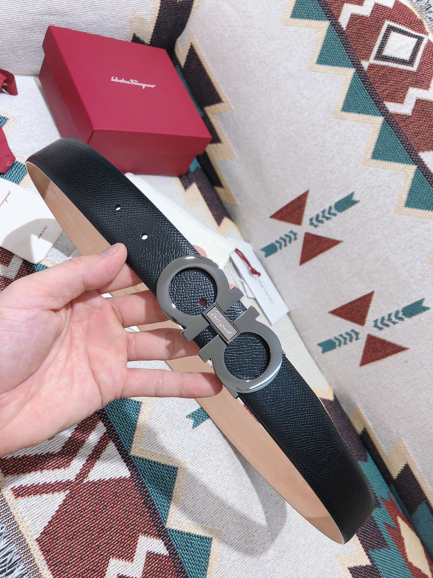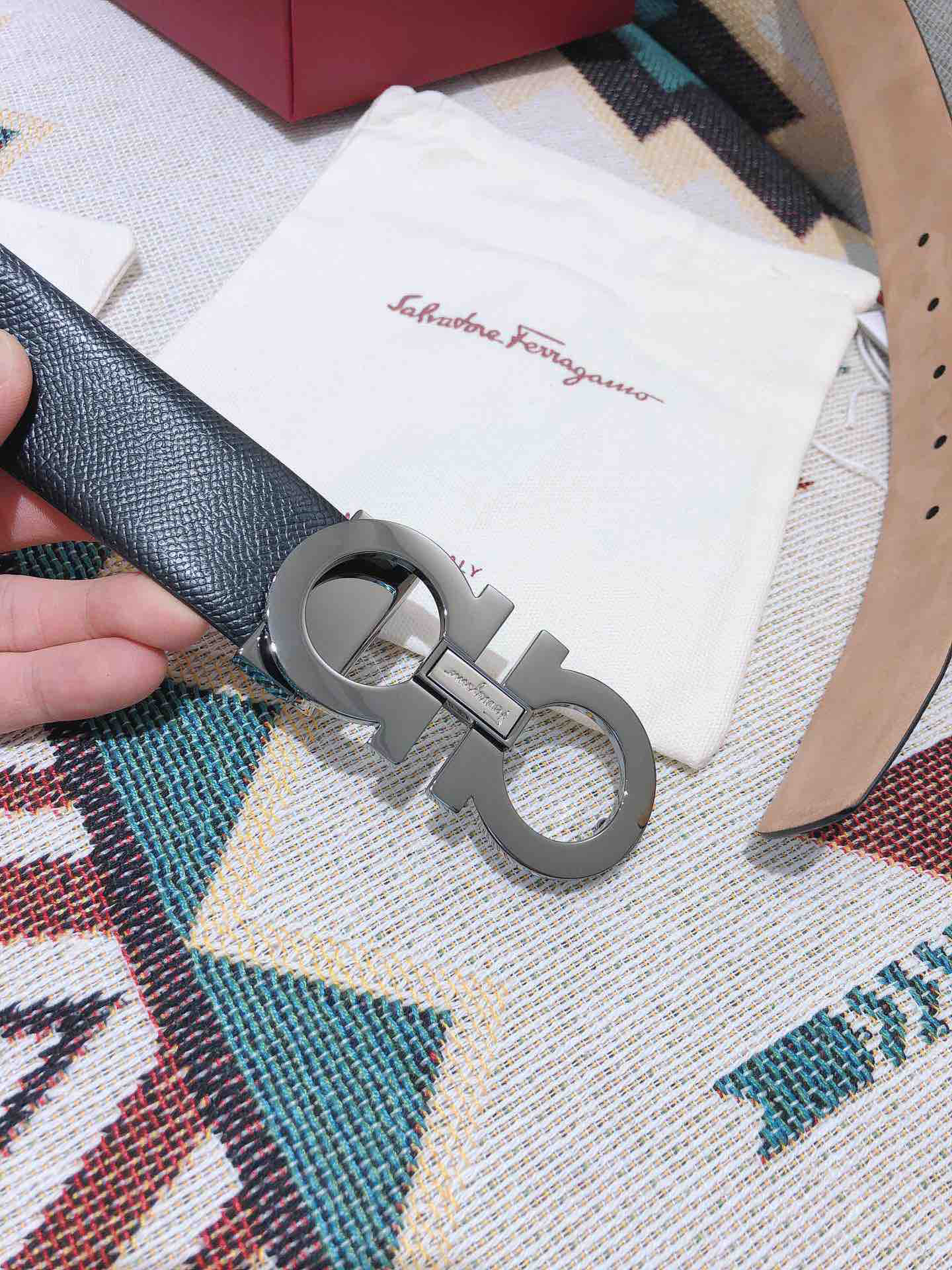 SF菲拉格慕-枪色拼色扣-手掌纹+树脂皮