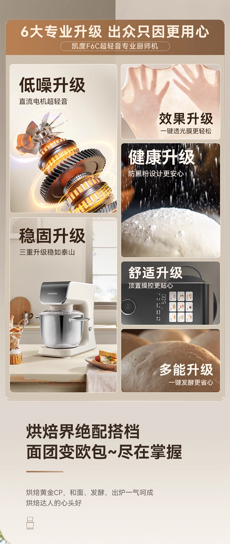 【2025新款】凯度小磐石ACE厨师机家用防黑粉轻音揉和面机F6Cpro