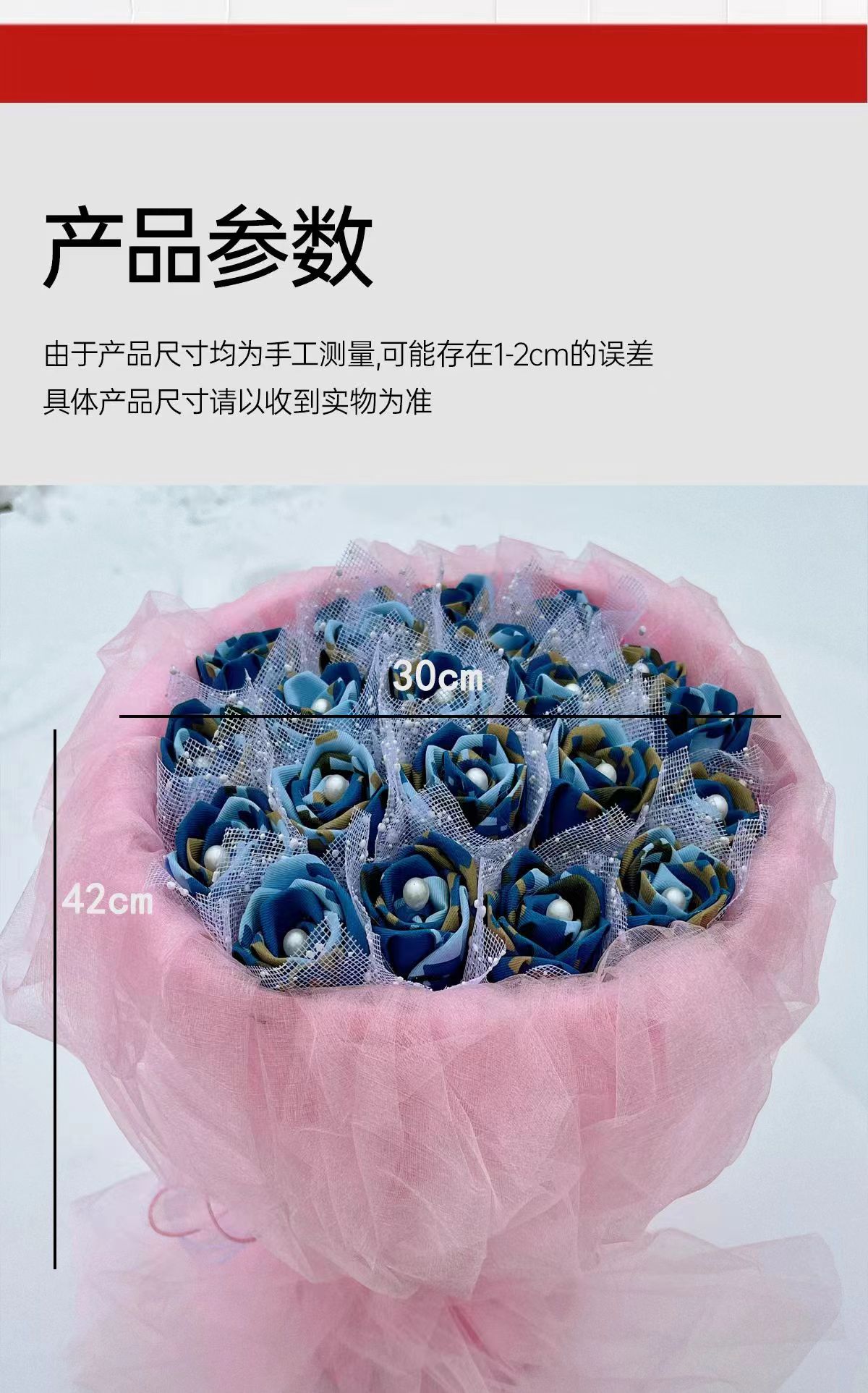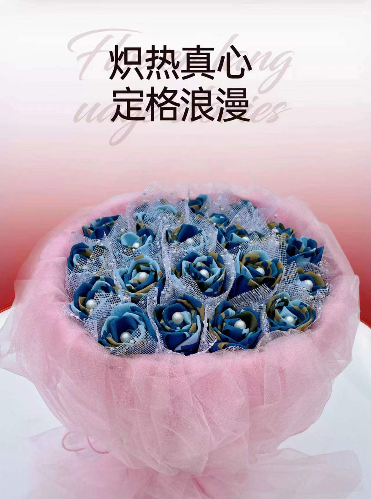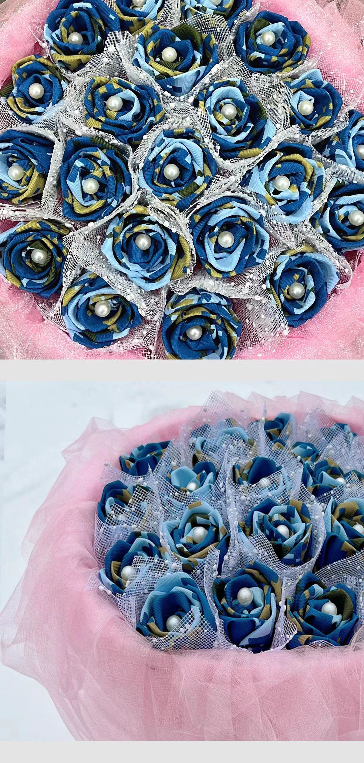 《戎花》立体布艺蓝色玫瑰花束 欧根纱装饰包装搭配可爱熊 懂你的可可爱爱 做你的欢欢喜喜