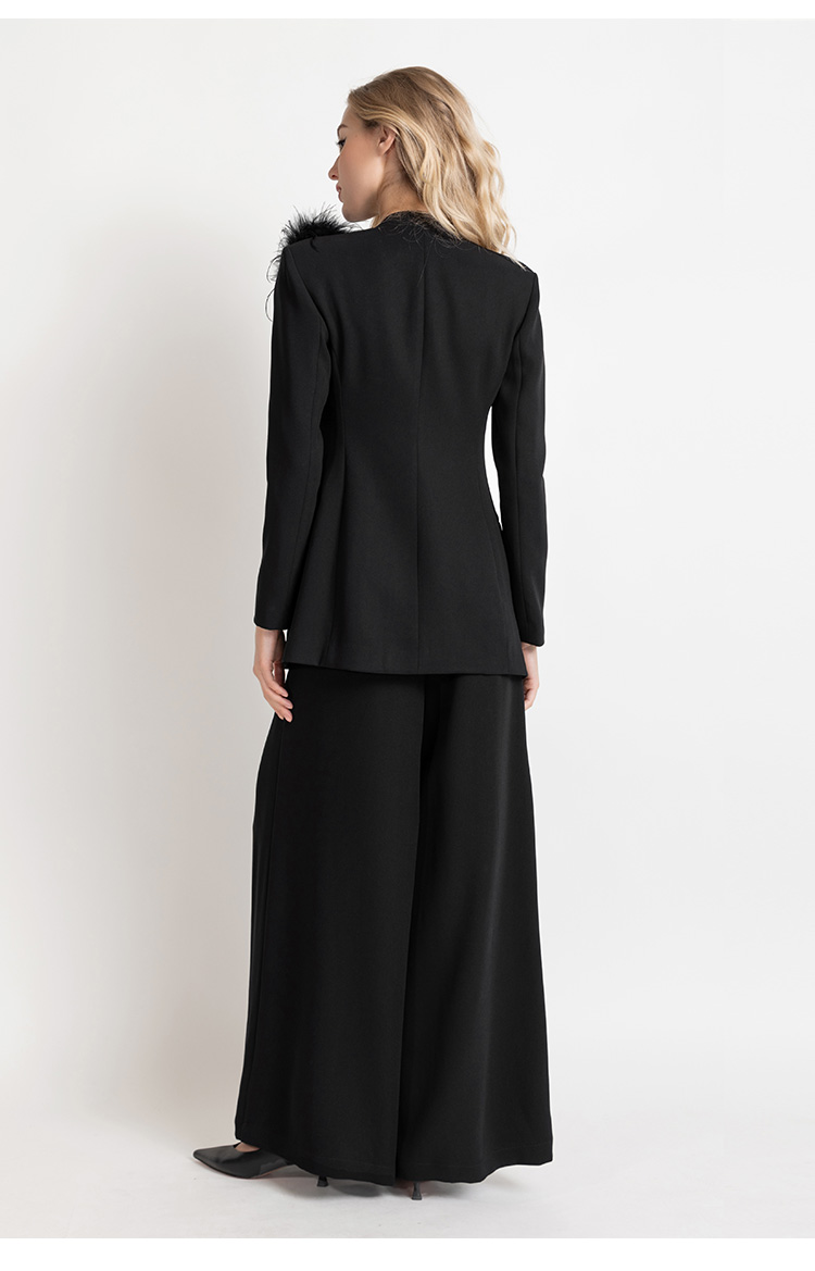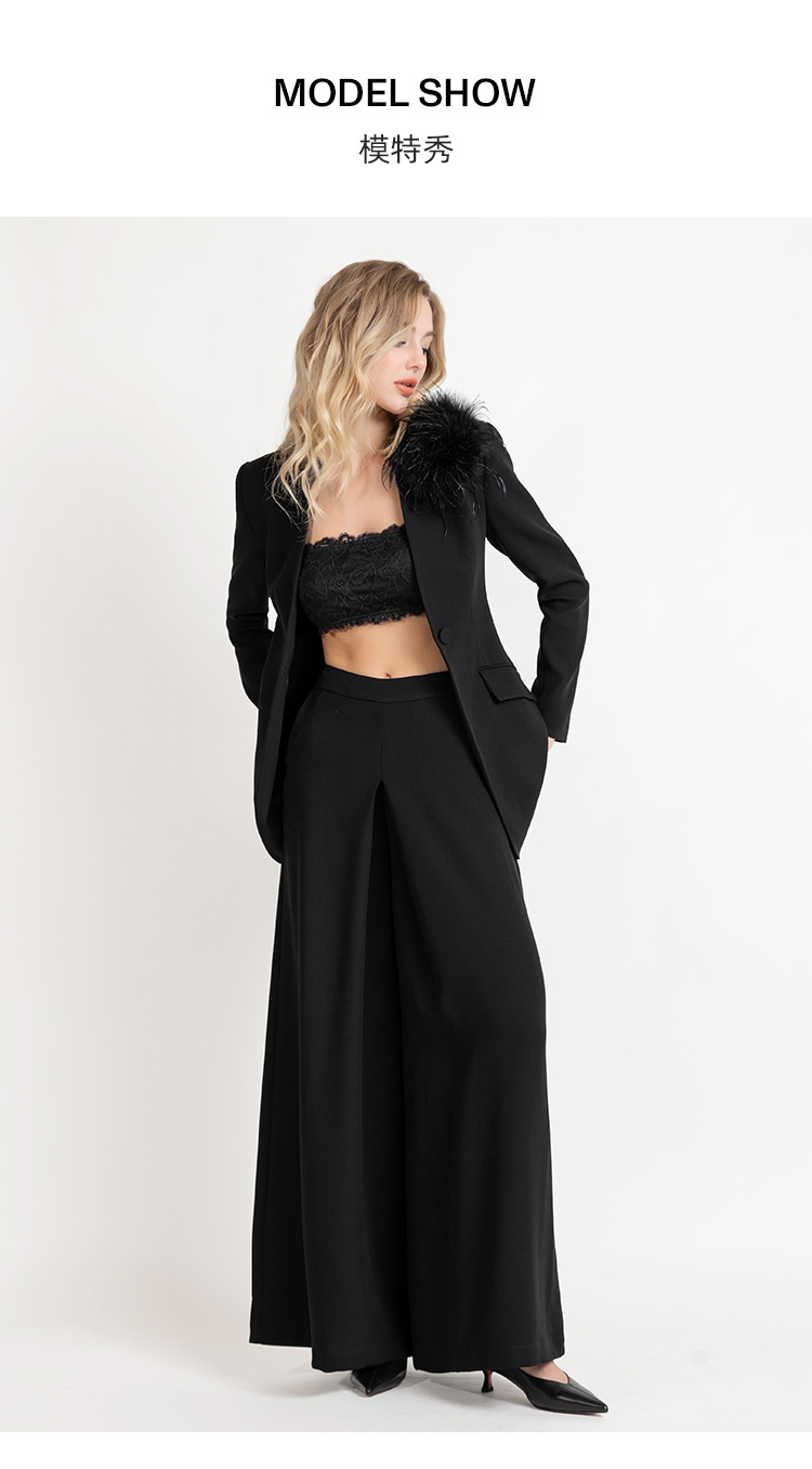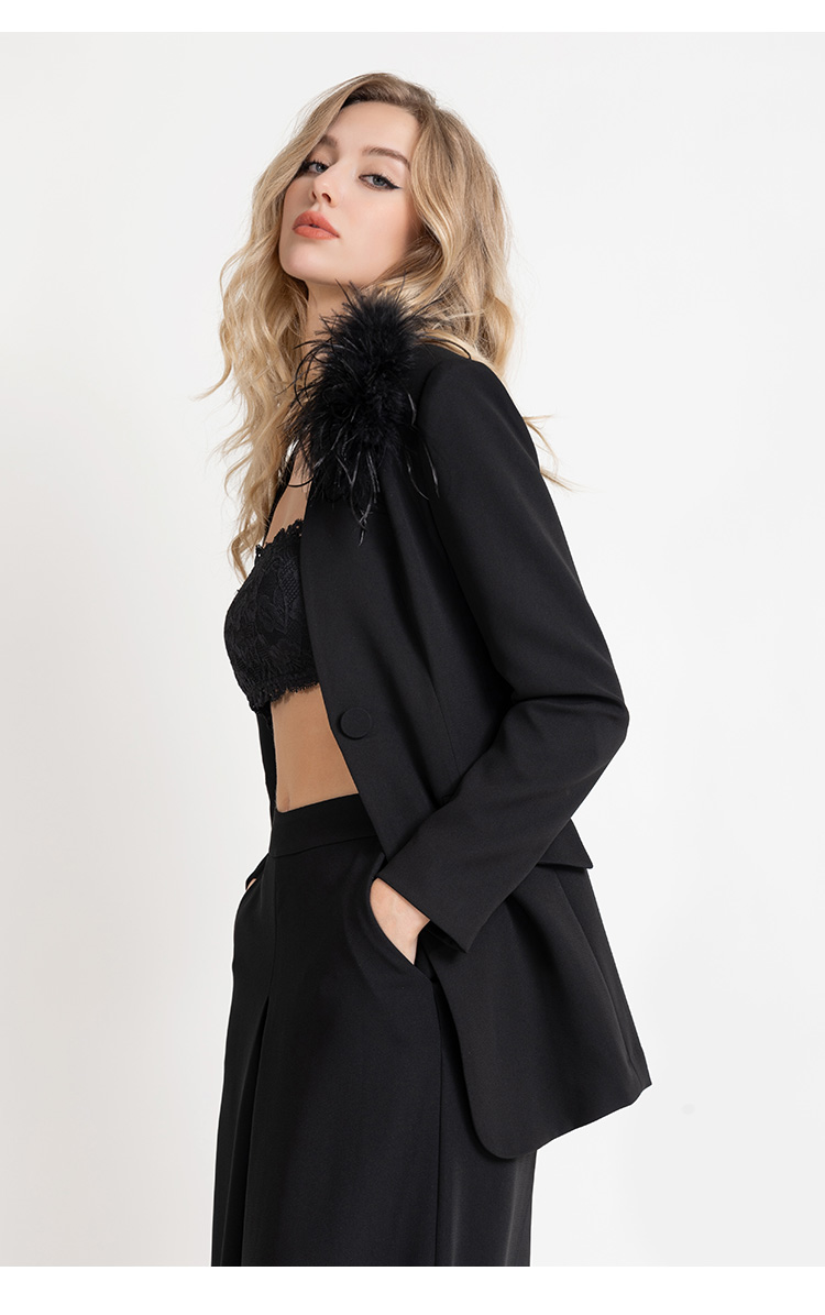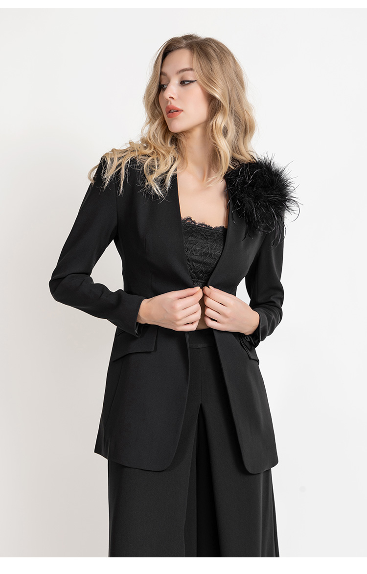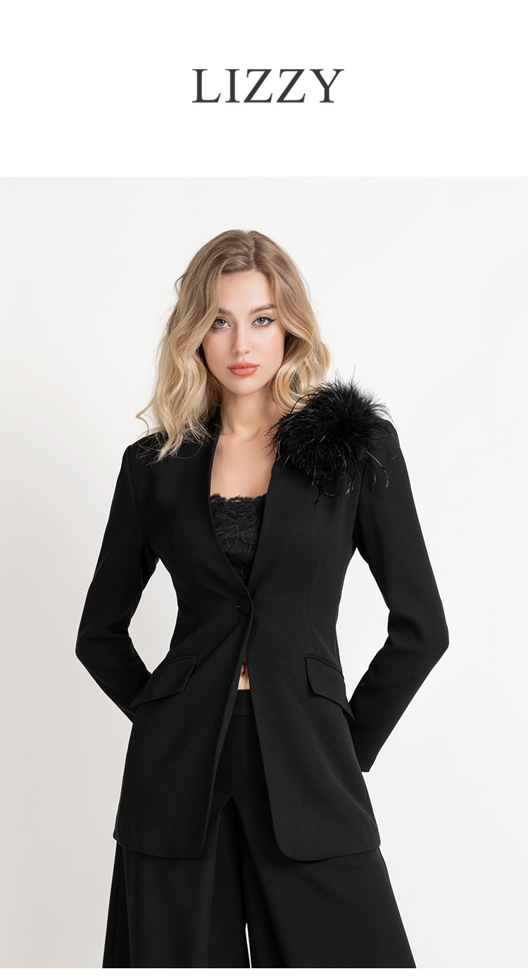 LIZZY早秋V领西装外套女长袖优雅时尚西装外套西服上衣配胸花8006