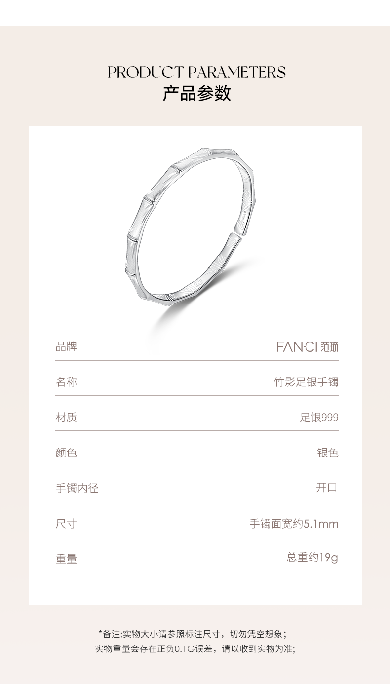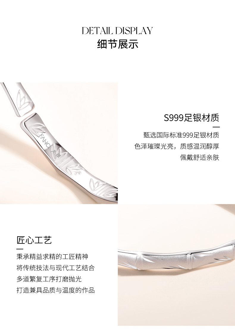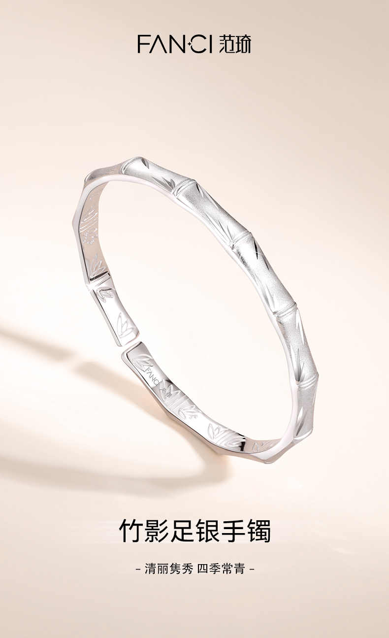 【竹影足银手镯】Fanci范琦999足银手饰送妈妈礼物 下单赠精美礼盒+顺丰速运+运费险