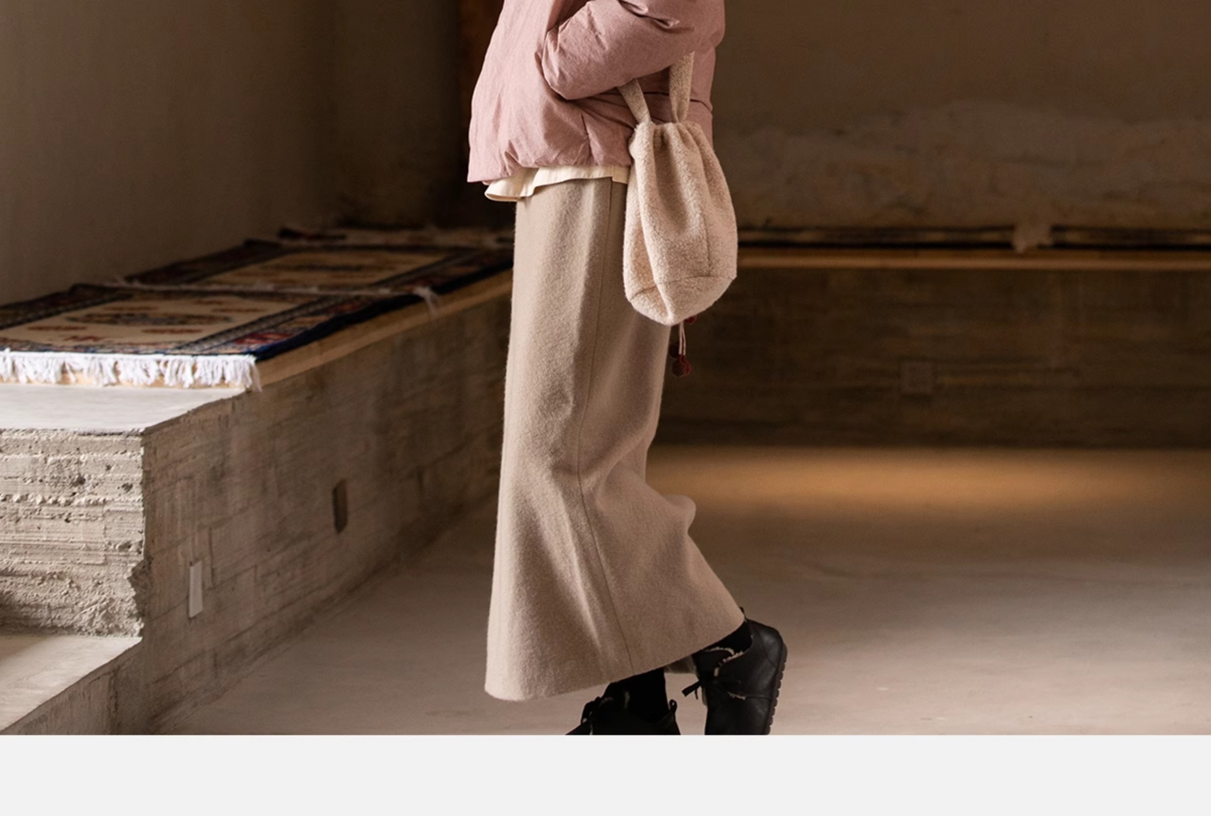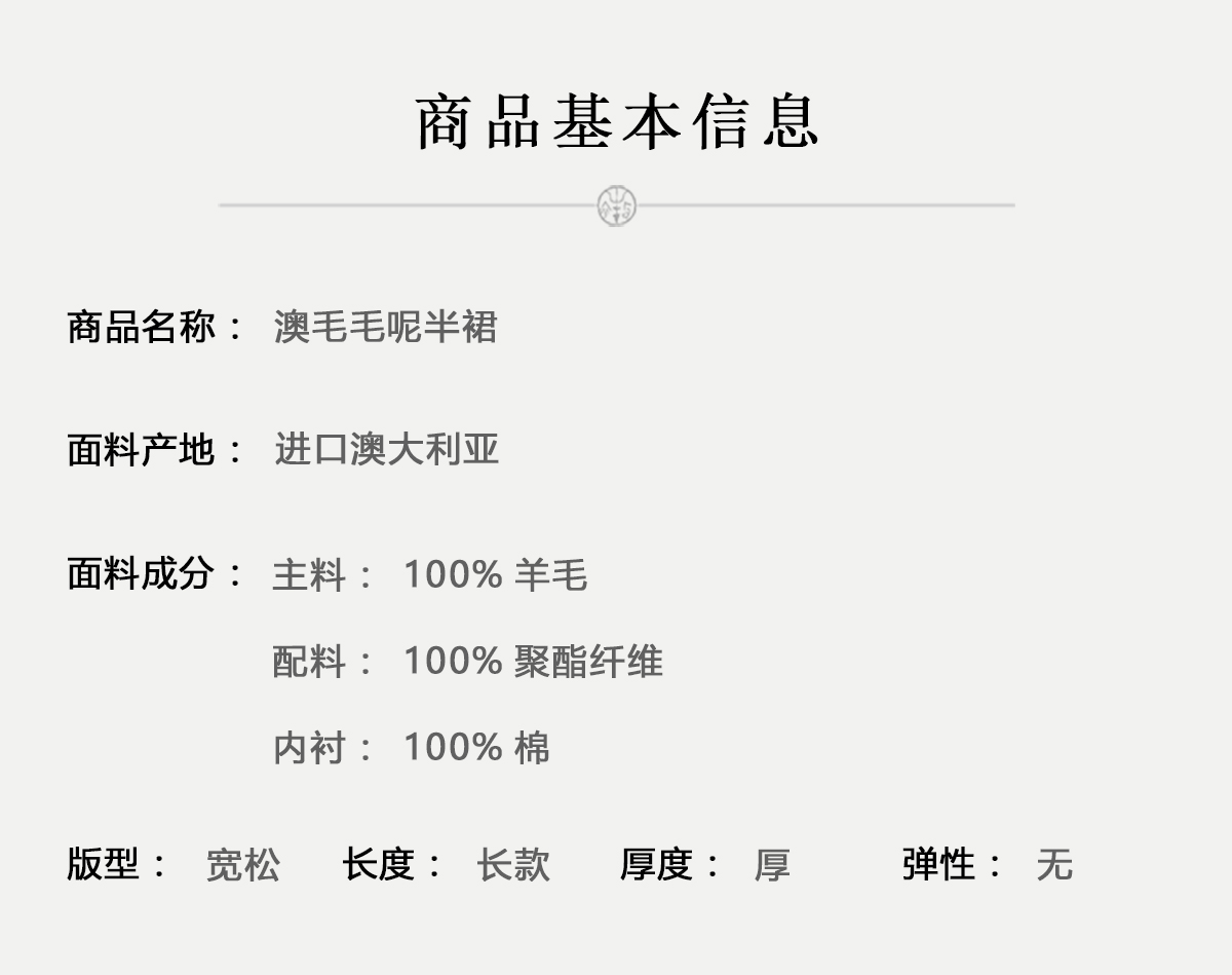 牧衣游原创进口澳毛毛呢半裙新款舒适保暖百搭纯羊毛半身裙 安桥
