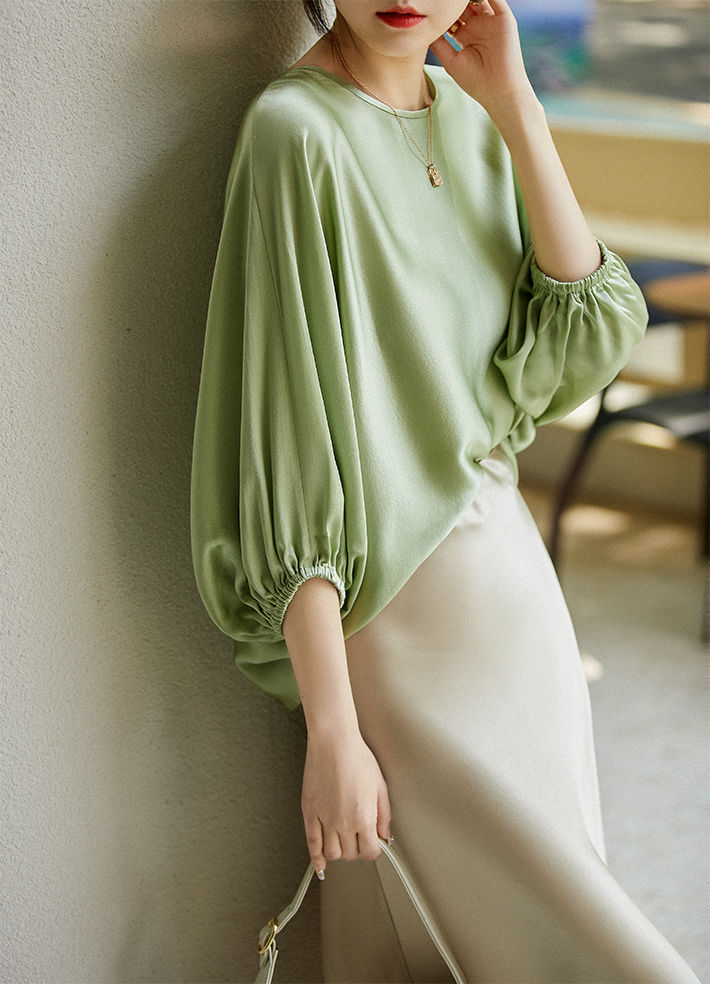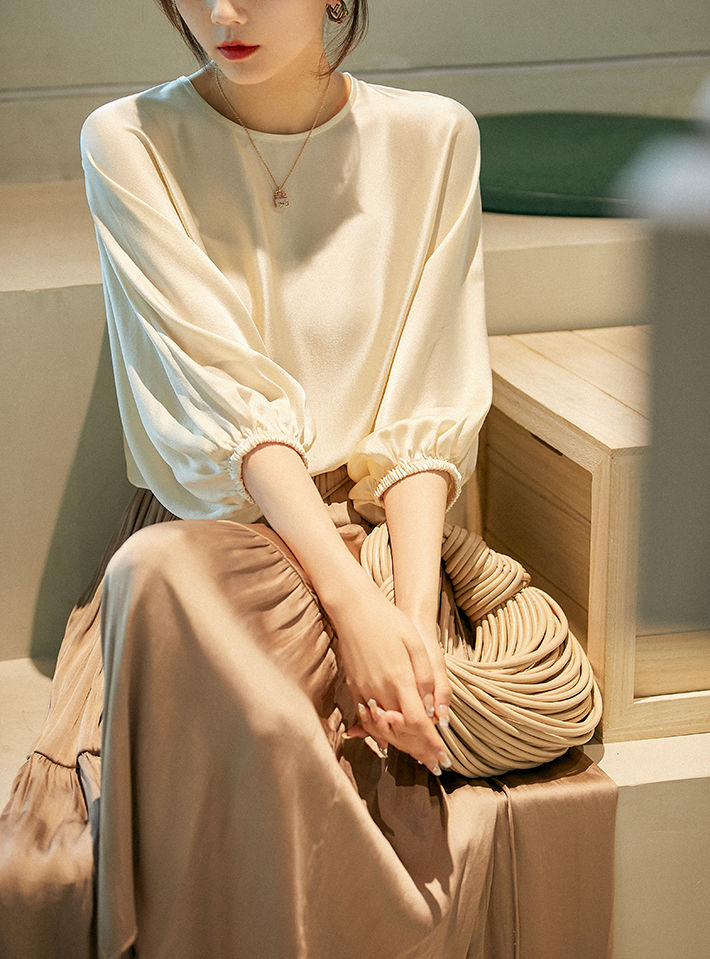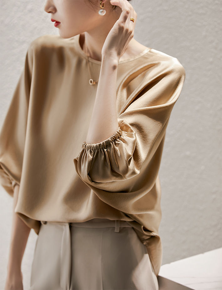 【被春夏氛围包裹着,轻松惬意!】黛唯梵爆款松紧蝙蝠袖圆领衬衣女sq