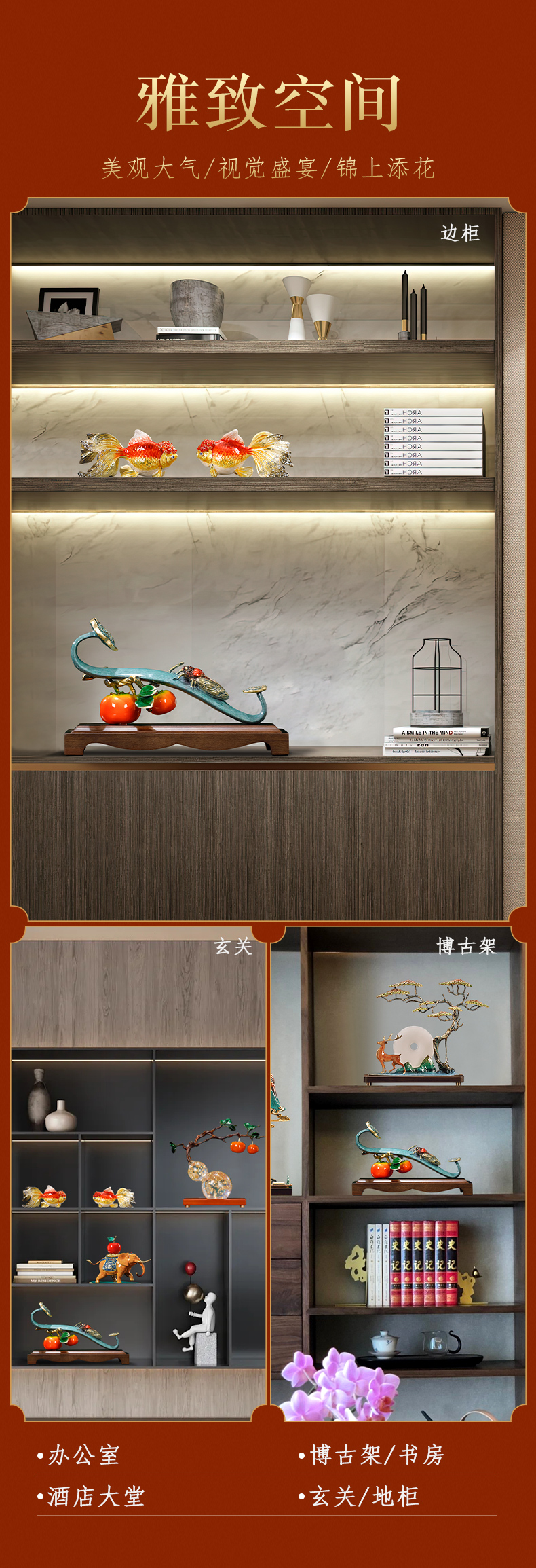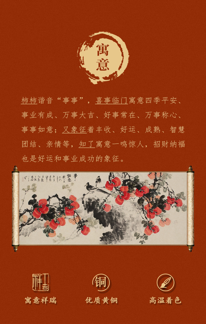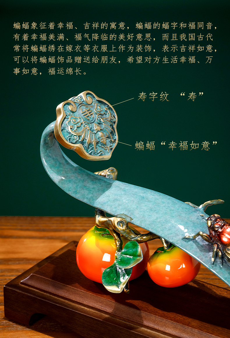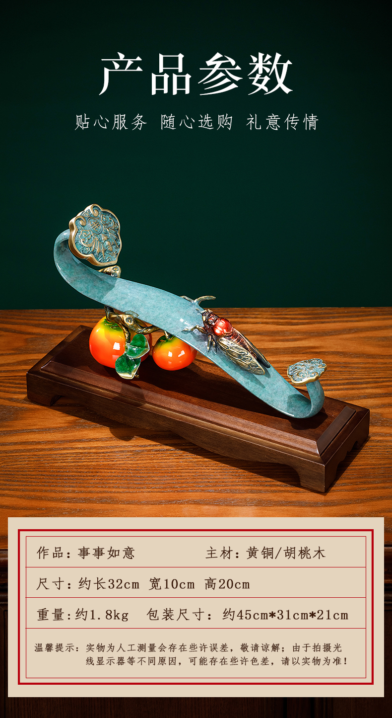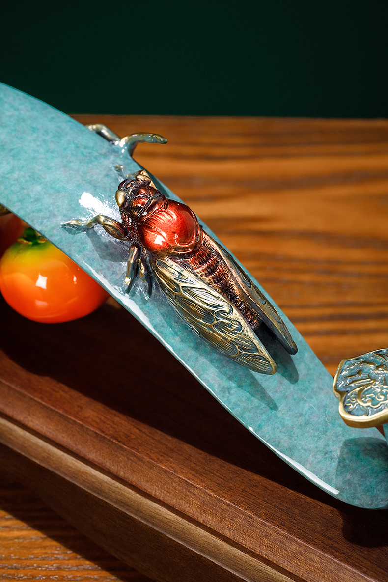 E-QK-BJ1362 金柿蝉联 彩铜+胡桃木底座 320*100*190