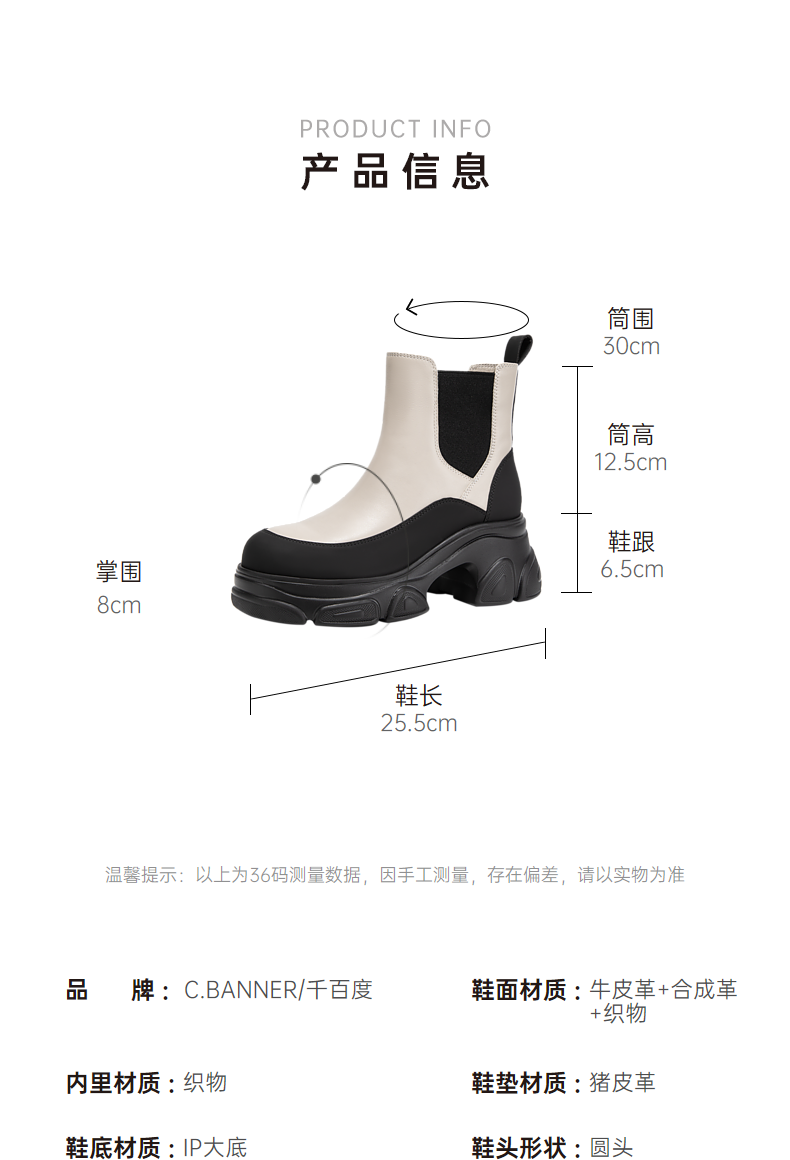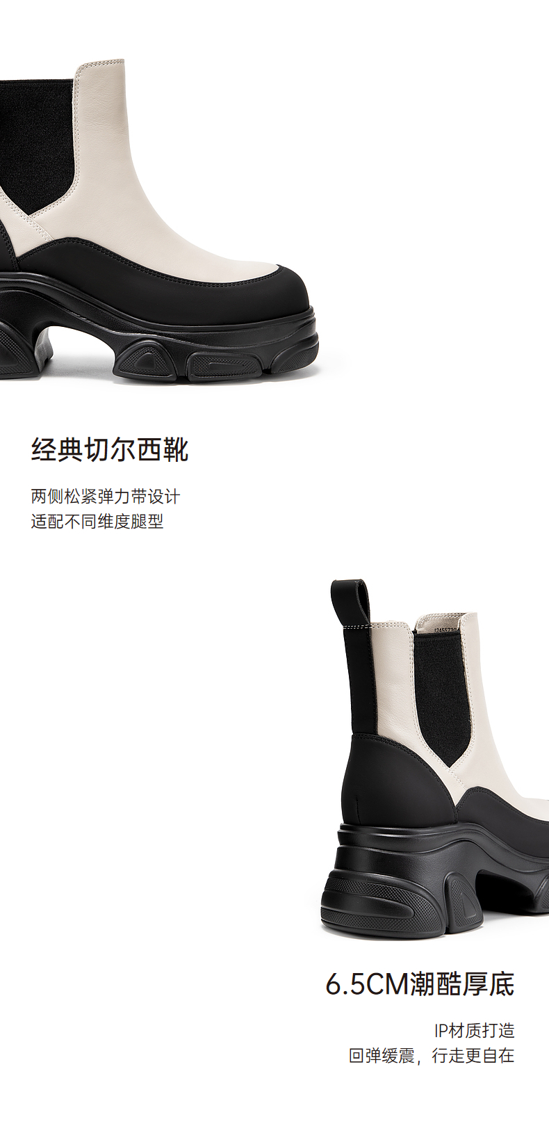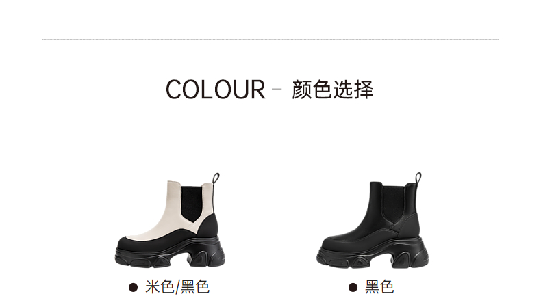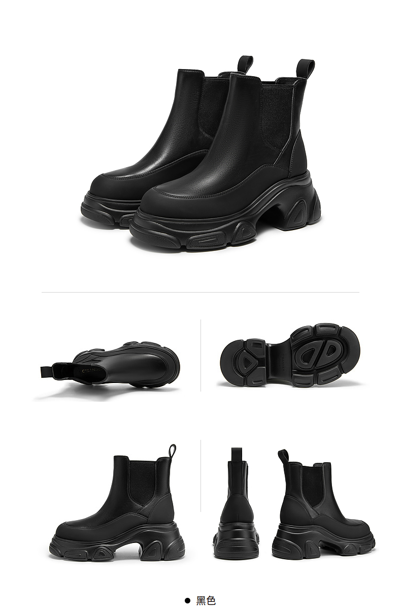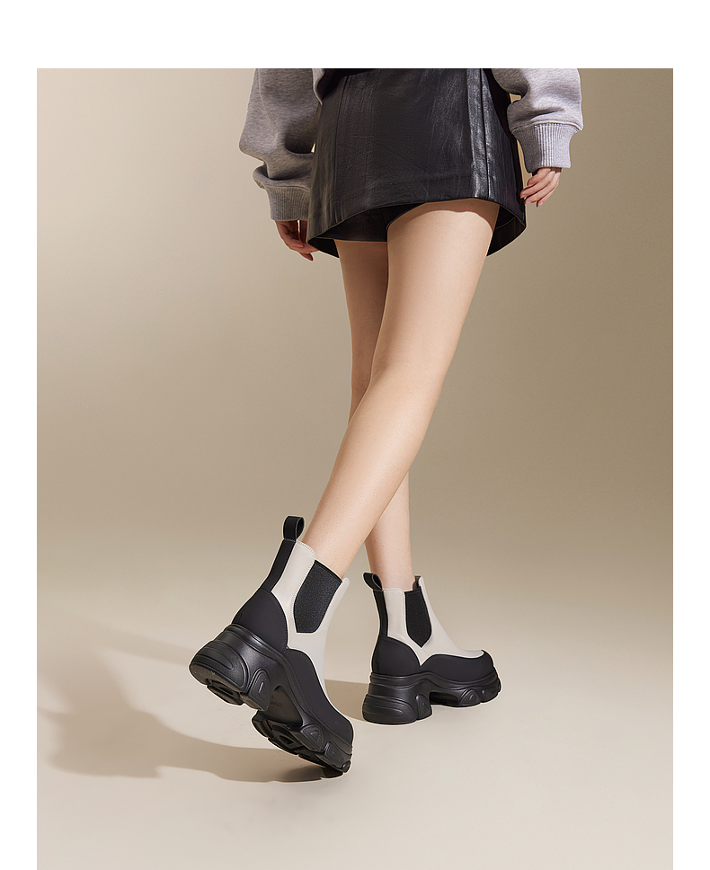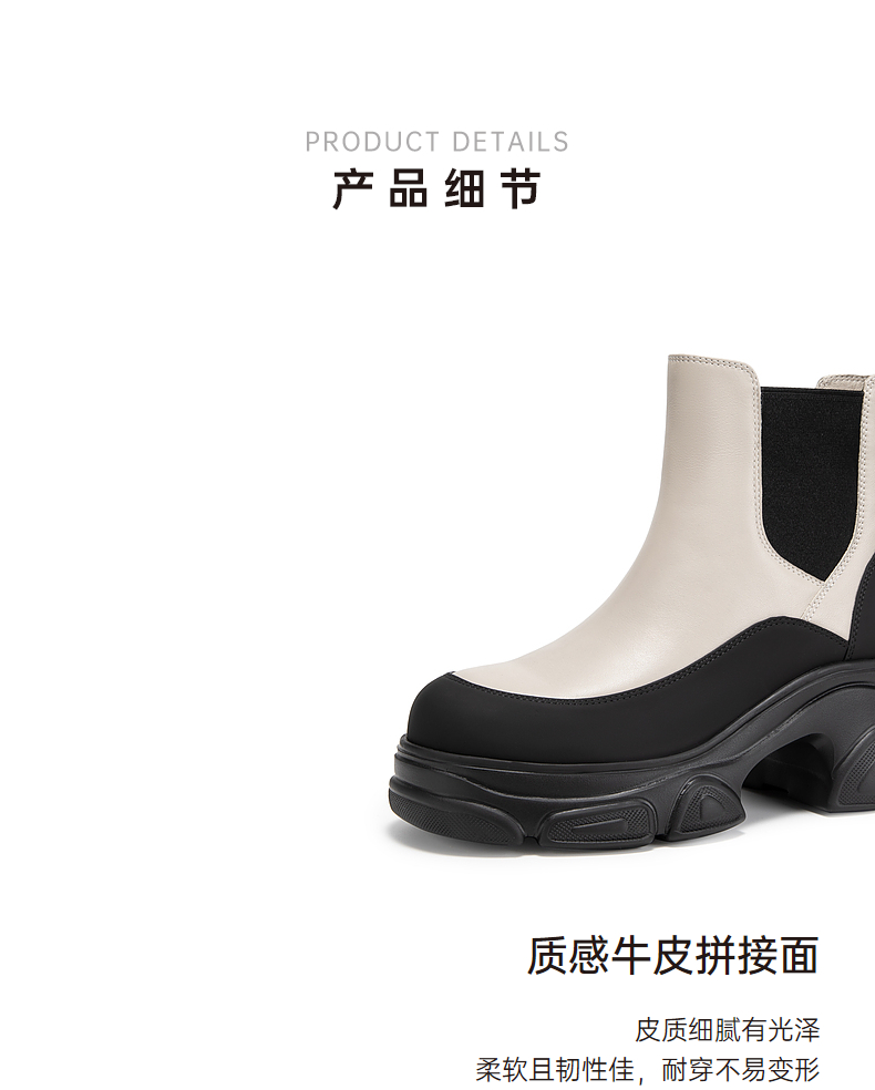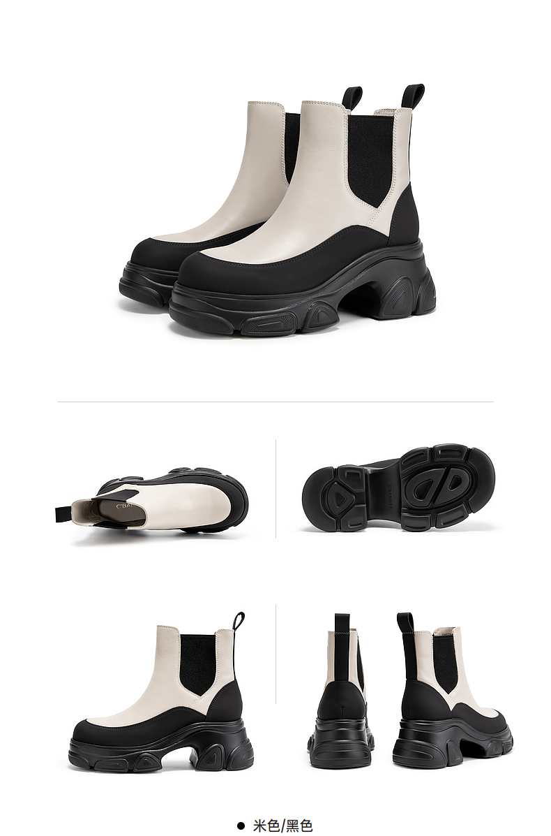 千百度厚底真皮拼接切尔西靴女冬季增高烟筒靴洋气小短靴A24557302