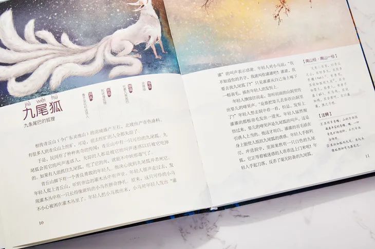 《神话》| 包含90个传说,有耳熟能详的夸父逐日、女娲造人,也有古老的天神故事,激发孩子想象力同时,也了解咱们华夏悠远的历史。《神兽》| 介绍了90只稀奇古怪的动物:长着人脸有一只脚的毕方鸟、白色耳朵的狌狌……个个奇幻神秘,满足孩子好奇心。《异人国》| 90个地区孕育出90个奇异的世界,有的古怪、有的神秘、有的可爱……个个鲜明呈现在孩子眼前。