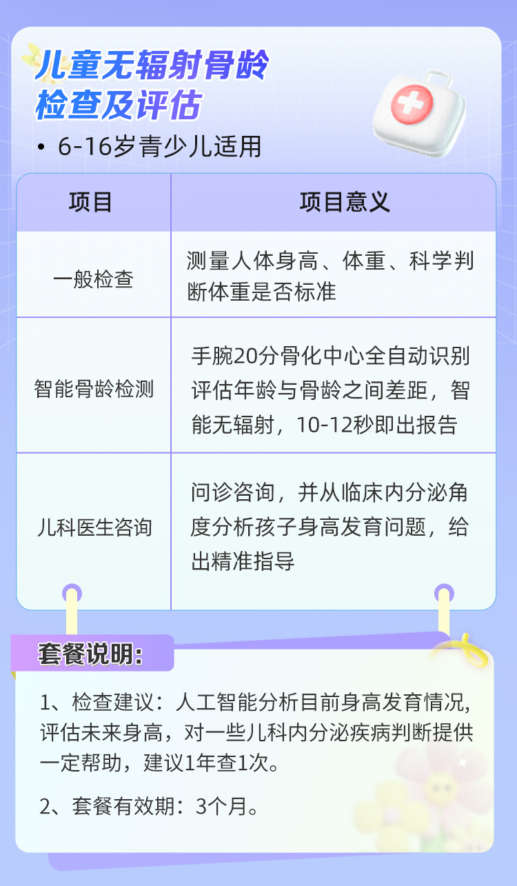 【北京爱康庇利积臣医疗中心】儿童无辐射骨龄检查及评估(6-16岁适用)
