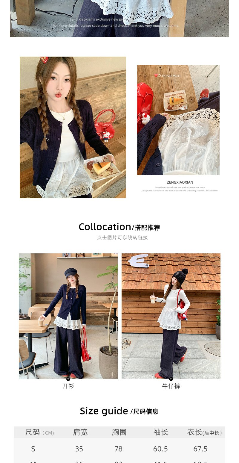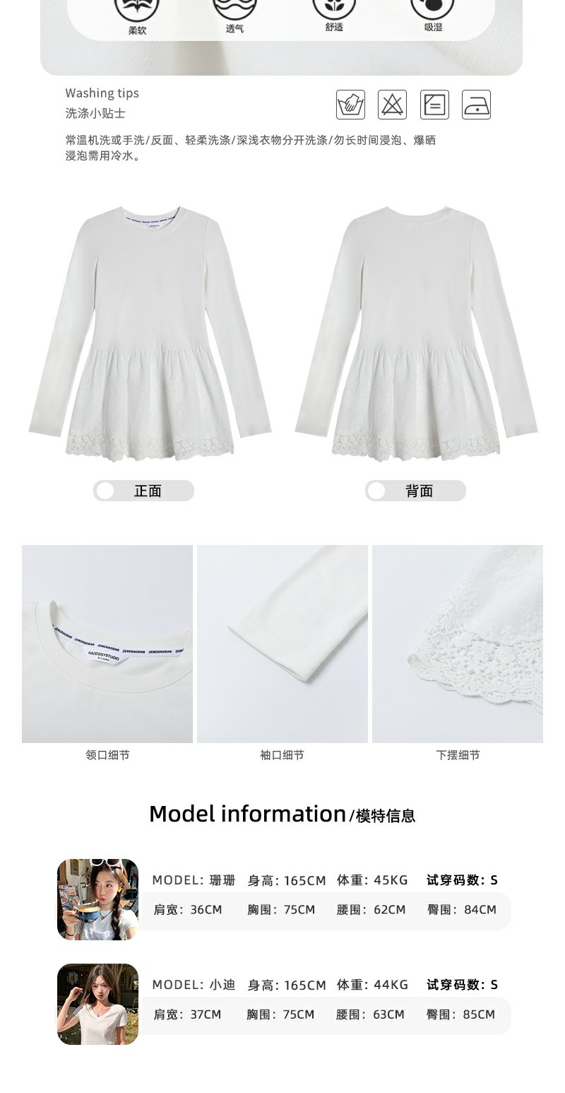 <曾小咸推荐>3.17现货秒杀 !微信超特价!蕾丝下摆拼接长袖 日常119.99 立减50 秒杀69.99!!