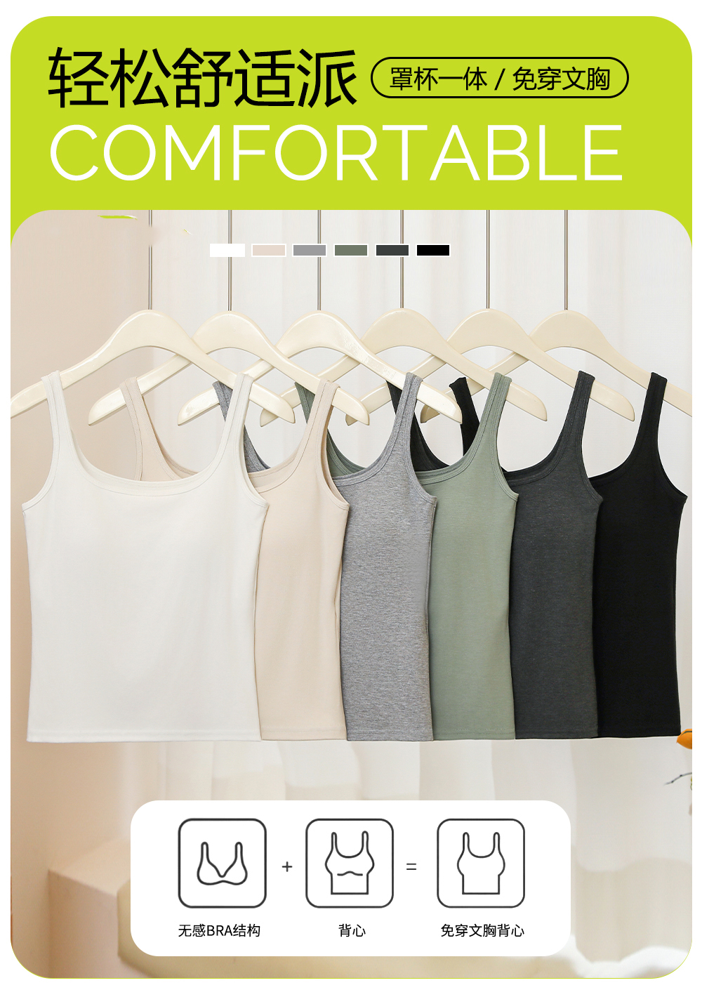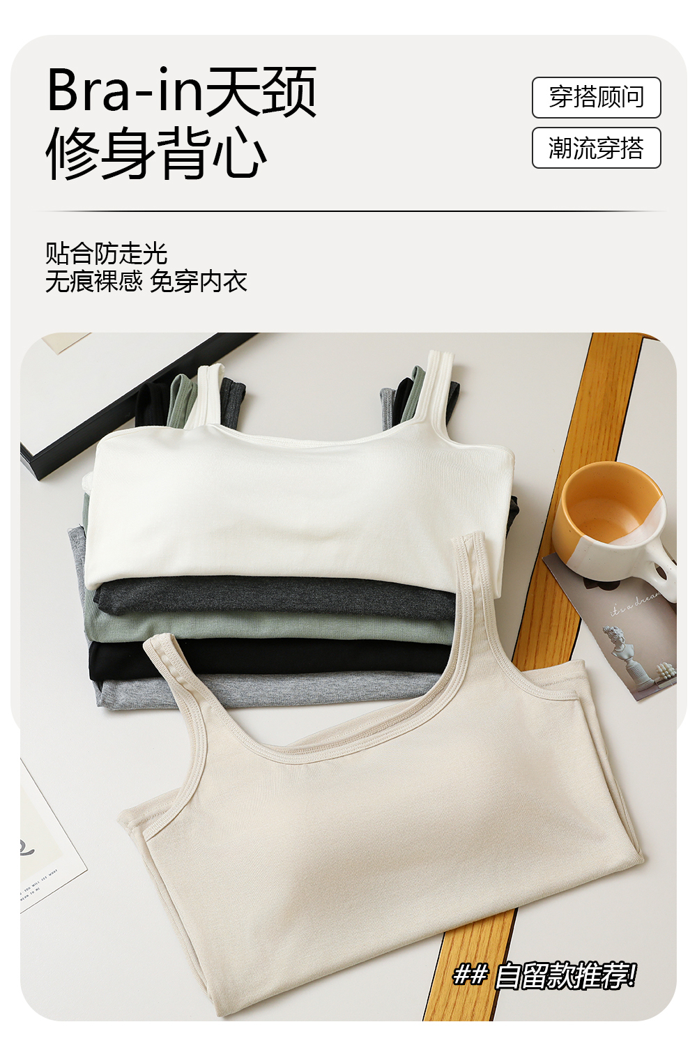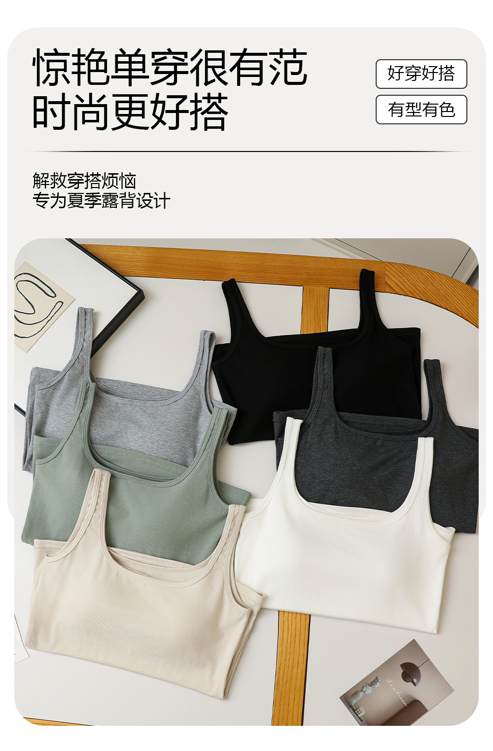 【99元2件】U领长背心纯色打底外穿吊带(带胸垫)【FF25511】