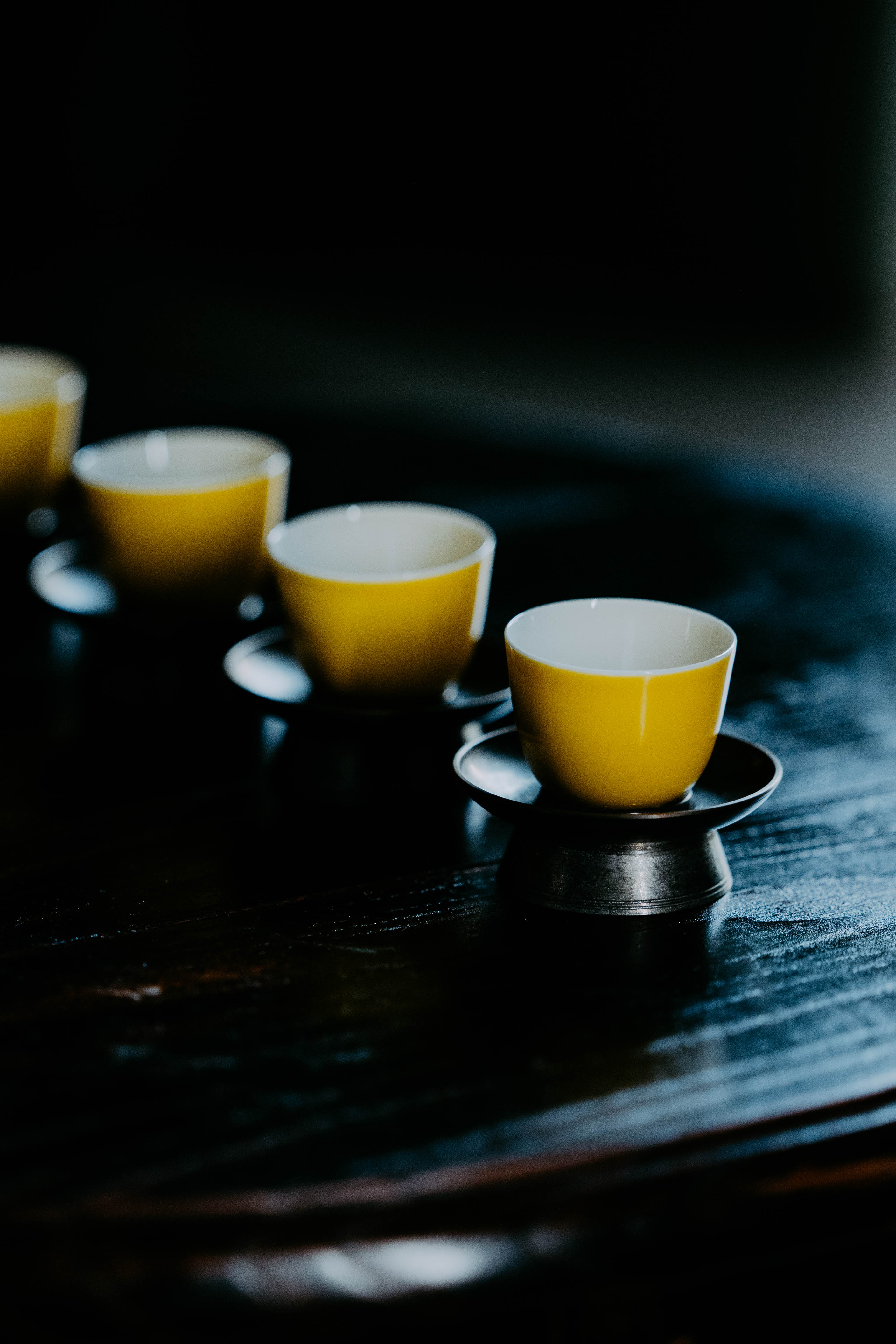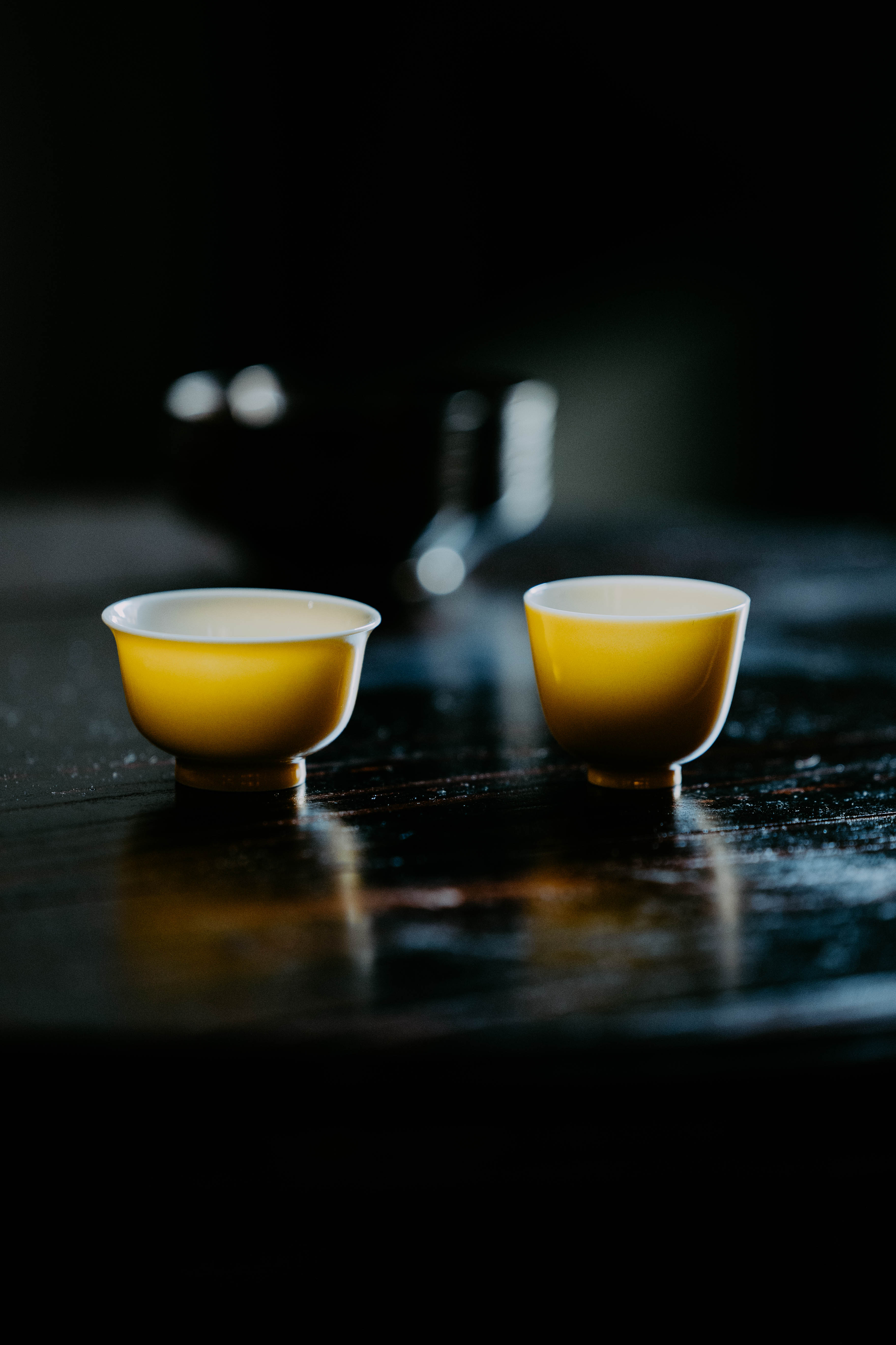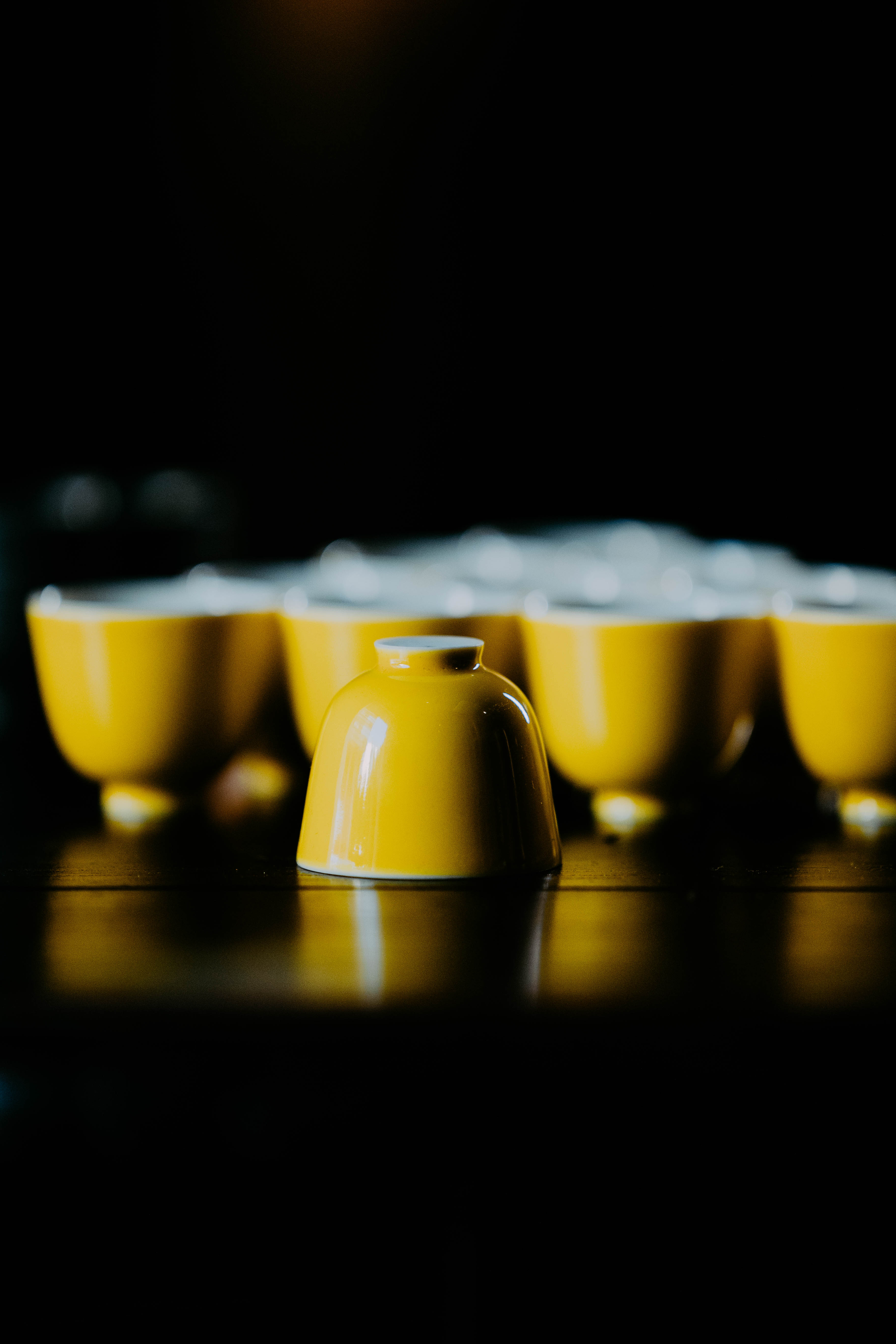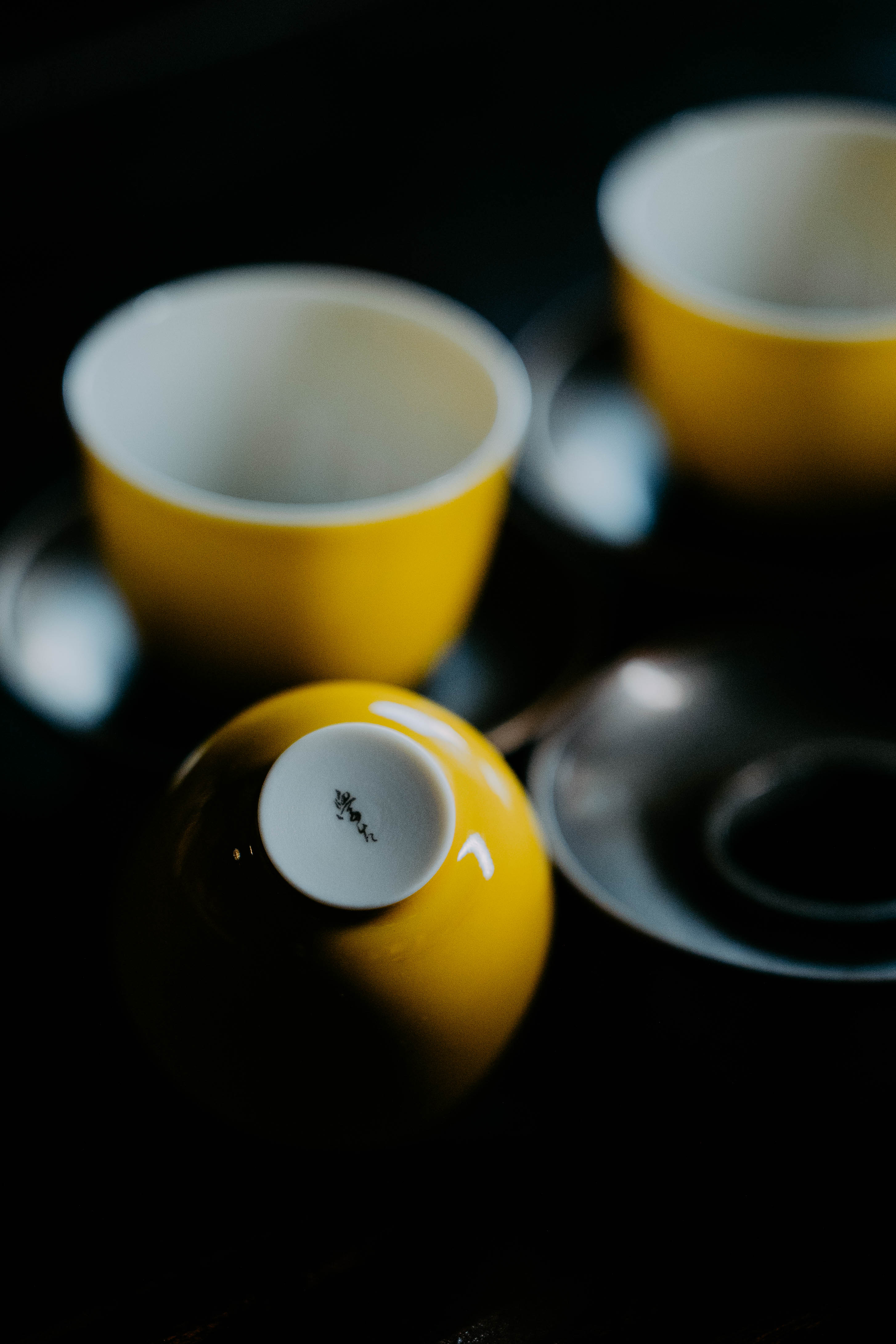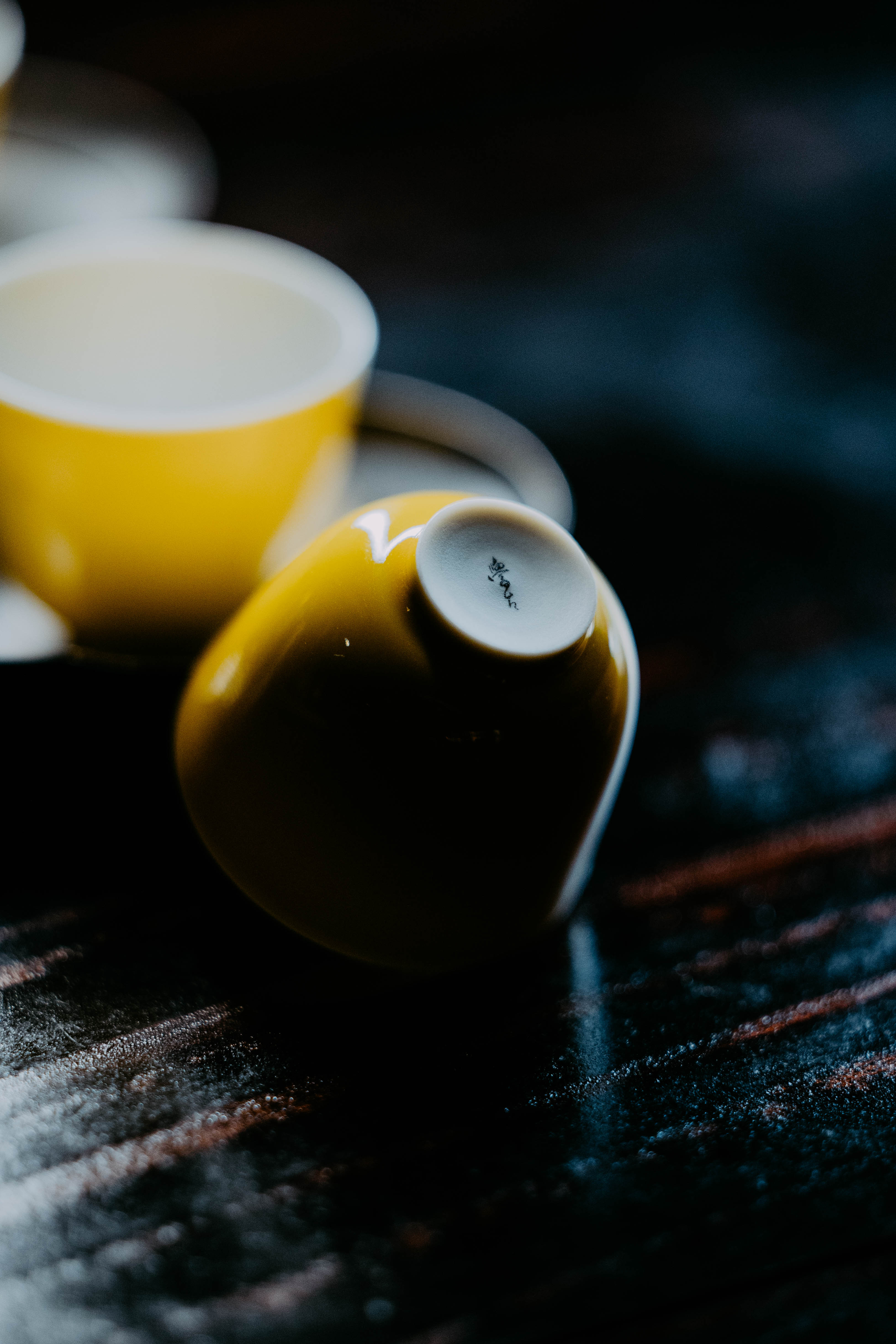 小巧精美,轻薄胎体,精修成型。黄色釉面光泽质感如玉。或三或五陈列摆放,在茶席间与其他器物协调百搭,幽静雅致。是雅集活动中一款经典好看又好用的杯子。