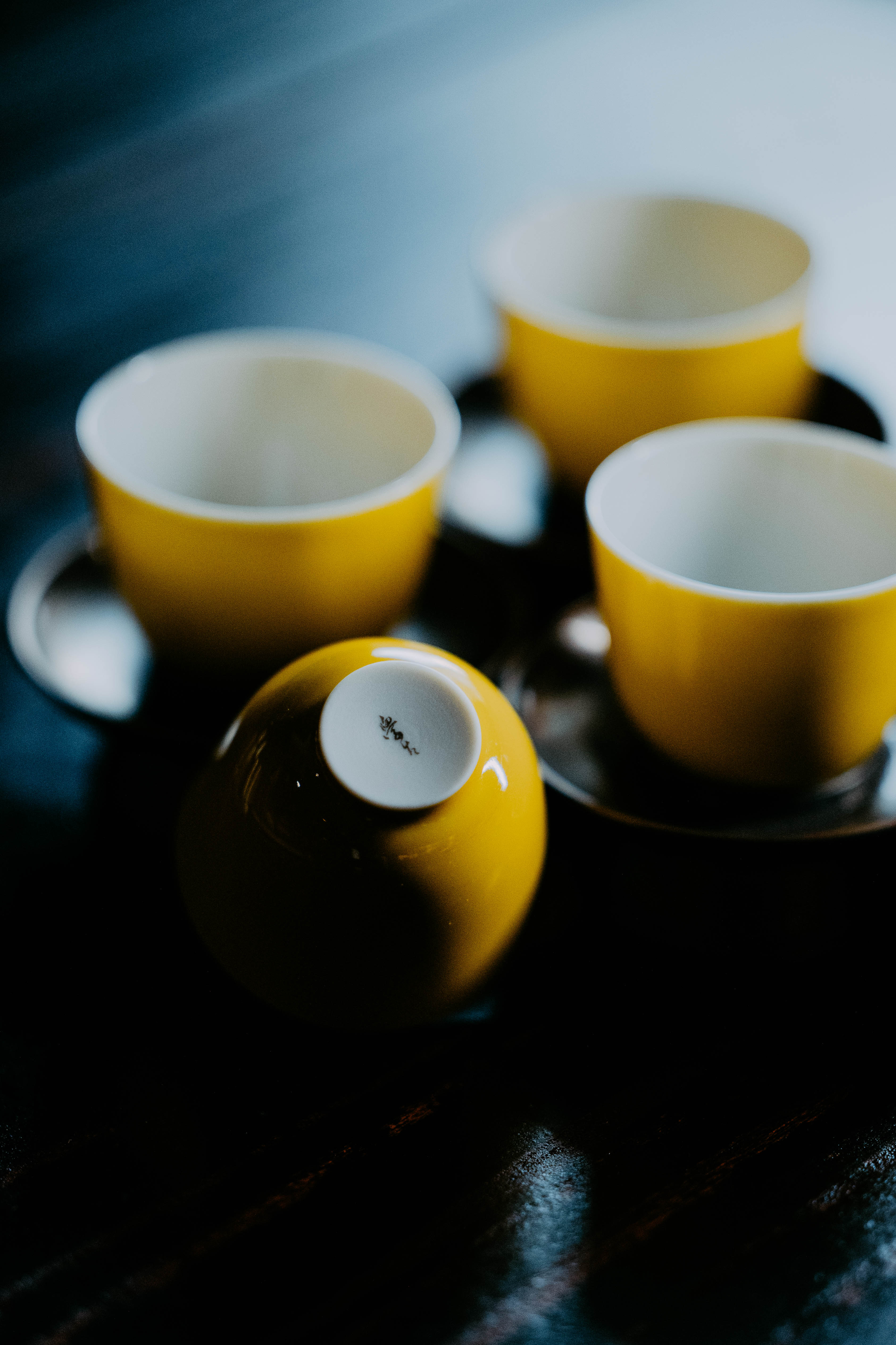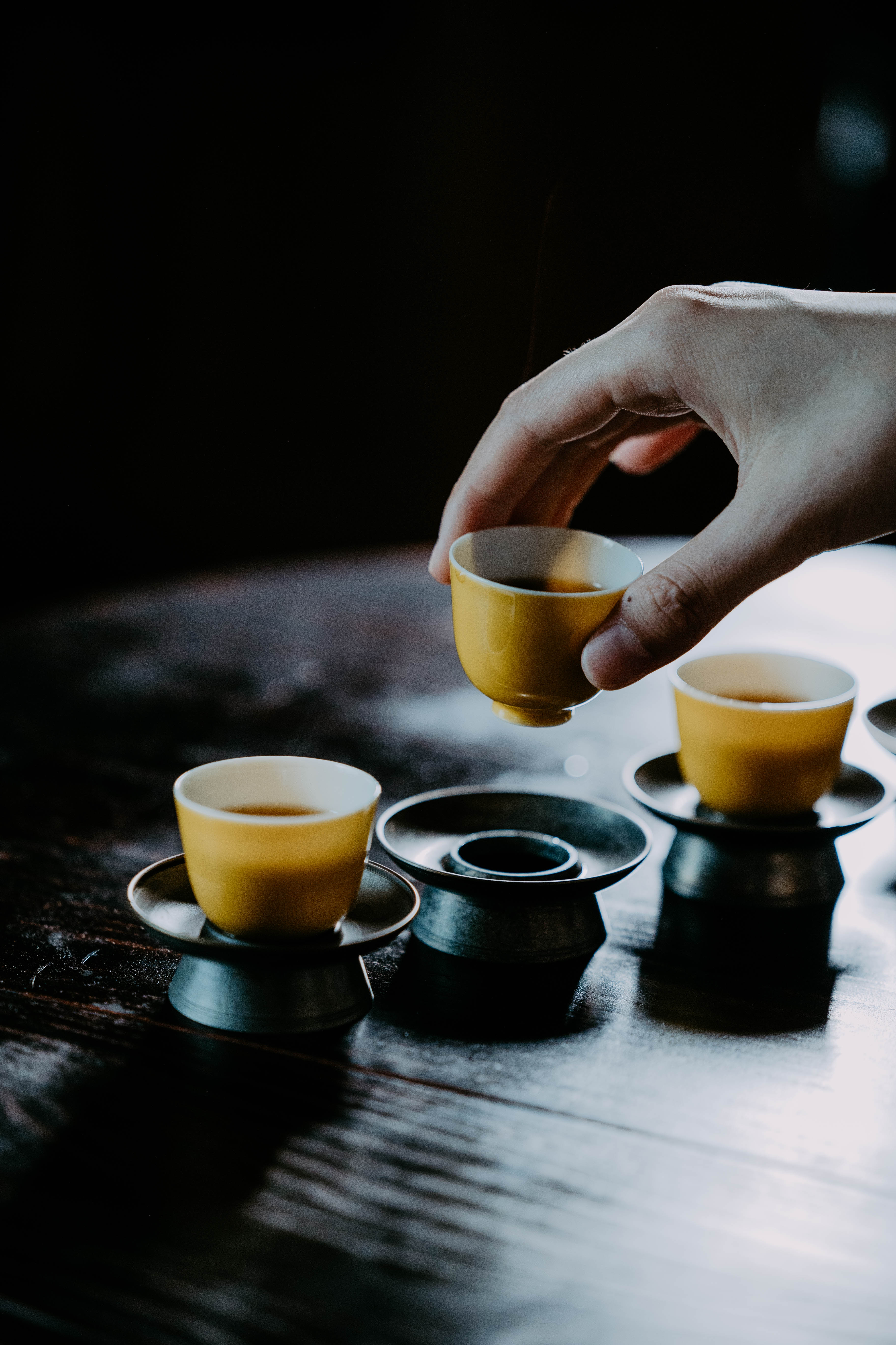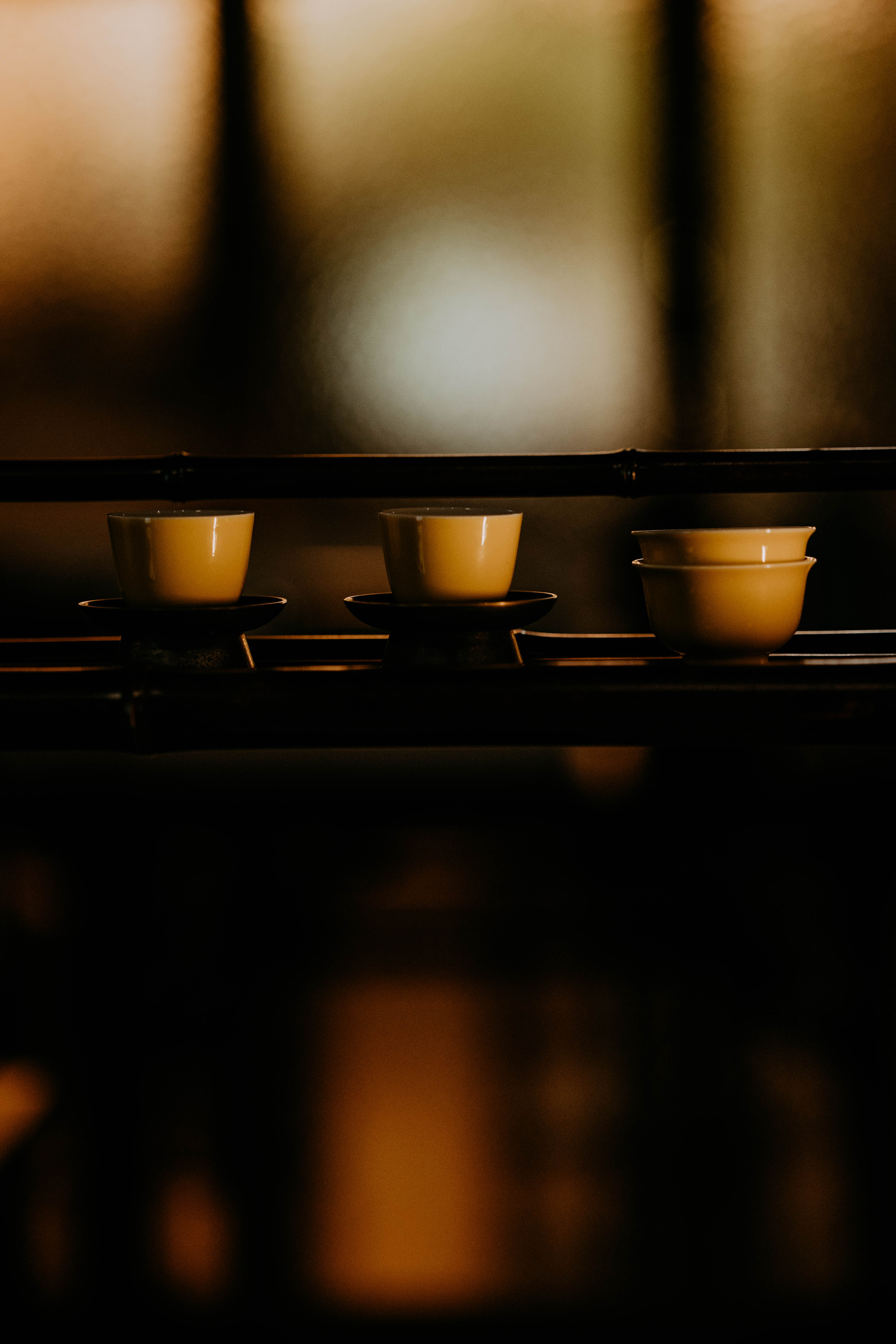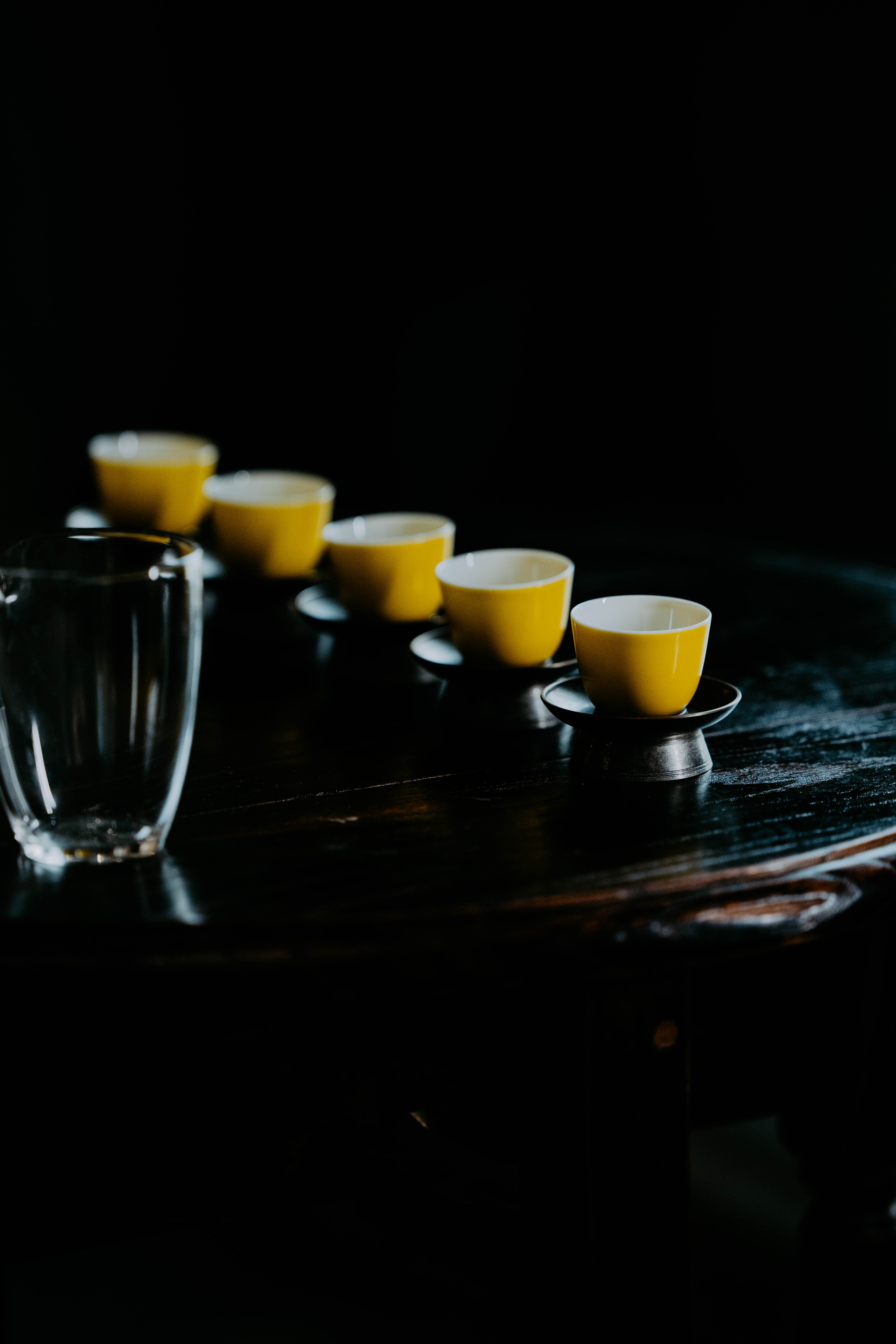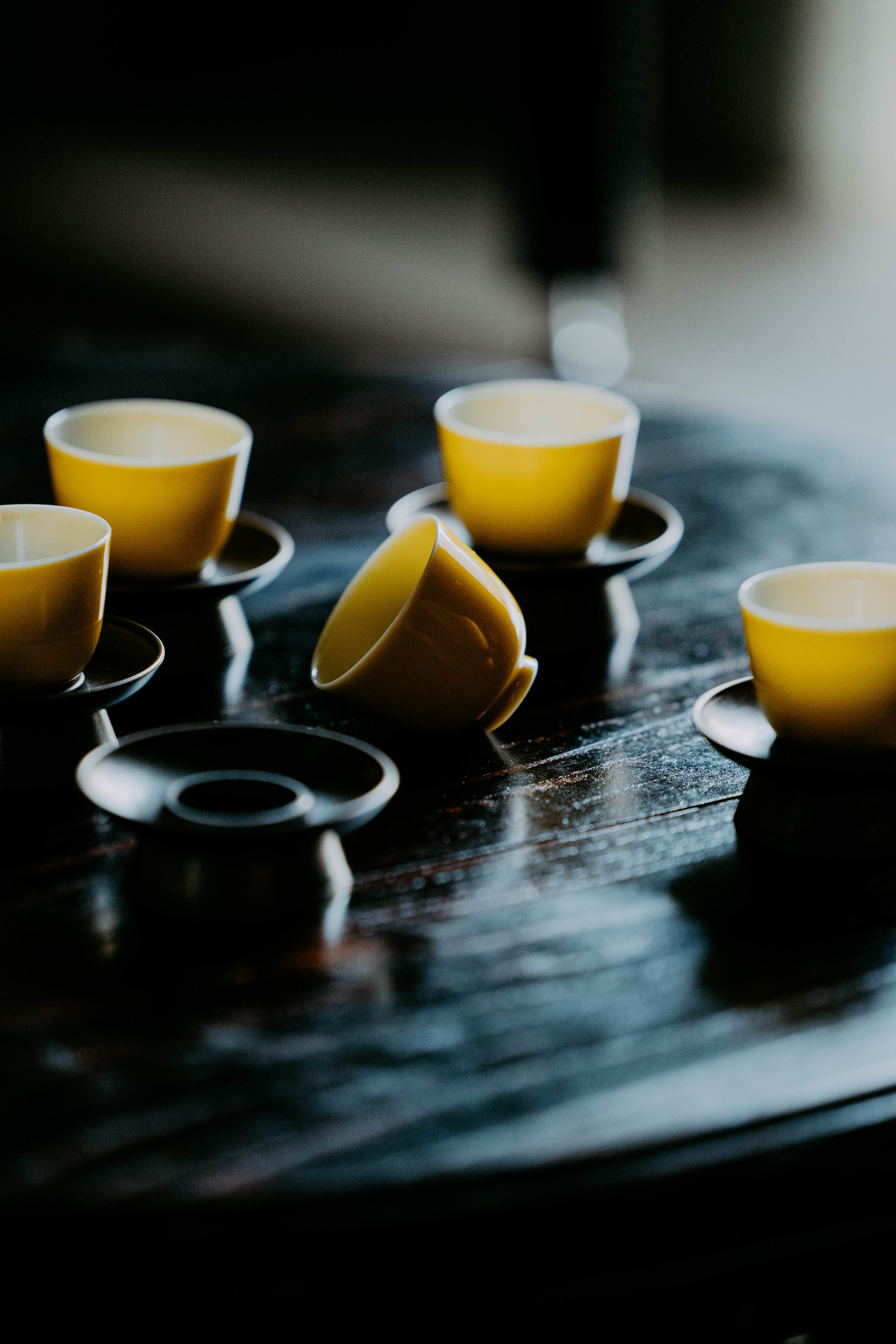 小巧精美,轻薄胎体,精修成型。黄色釉面光泽质感如玉。或三或五陈列摆放,在茶席间与其他器物协调百搭,幽静雅致。是雅集活动中一款经典好看又好用的杯子。