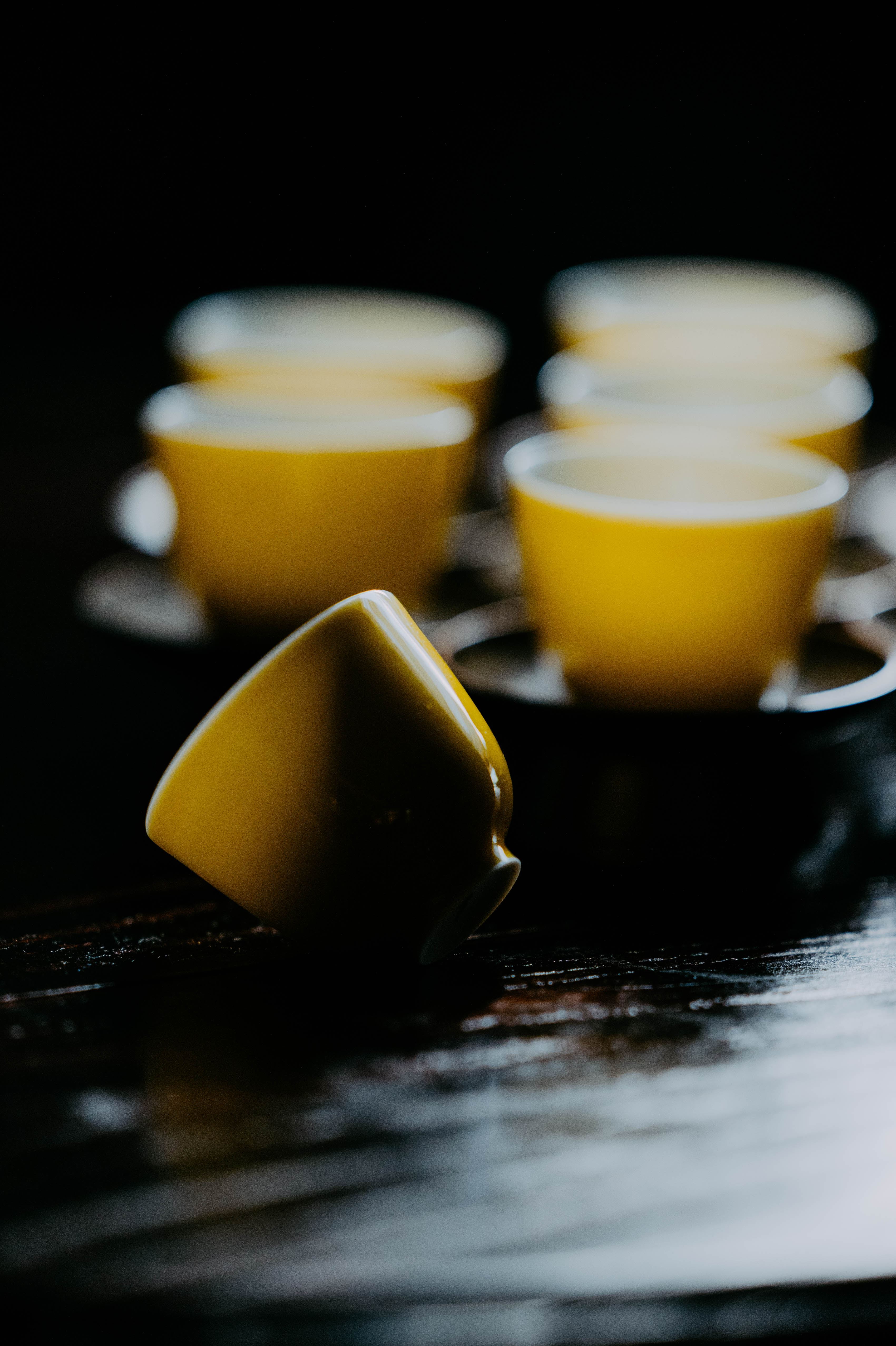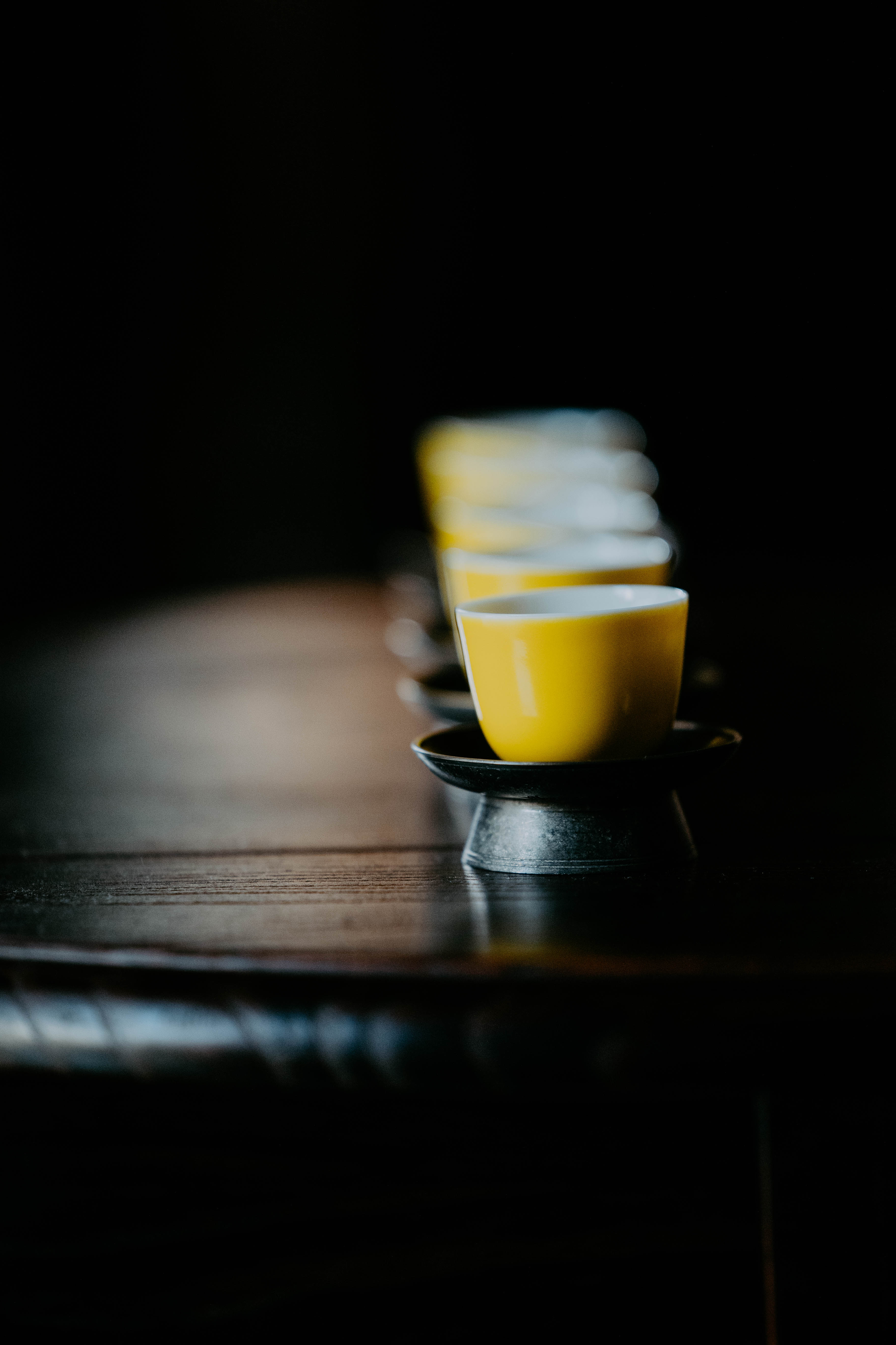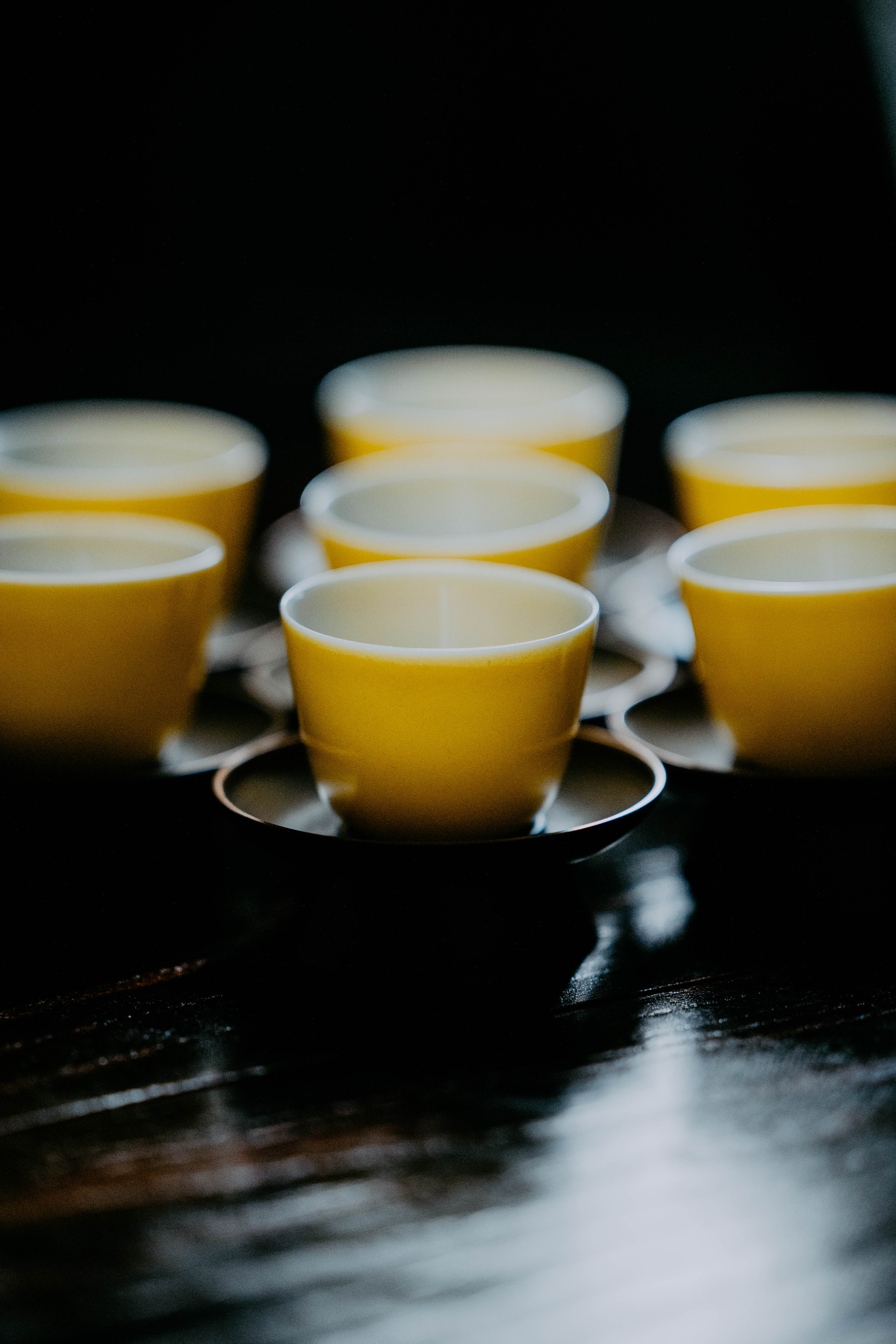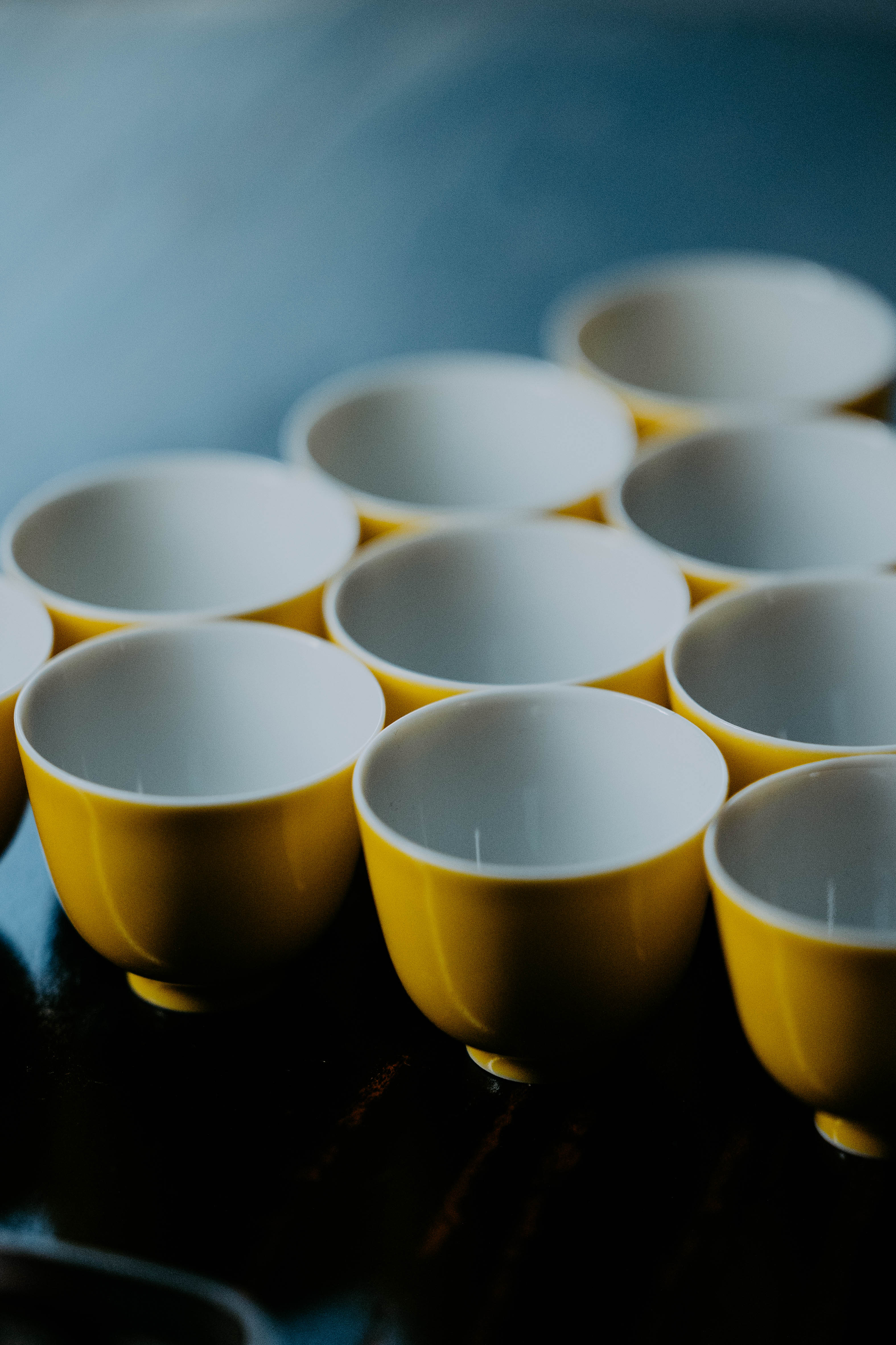 小巧精美,轻薄胎体,精修成型。黄色釉面光泽质感如玉。或三或五陈列摆放,在茶席间与其他器物协调百搭,幽静雅致。是雅集活动中一款经典好看又好用的杯子。