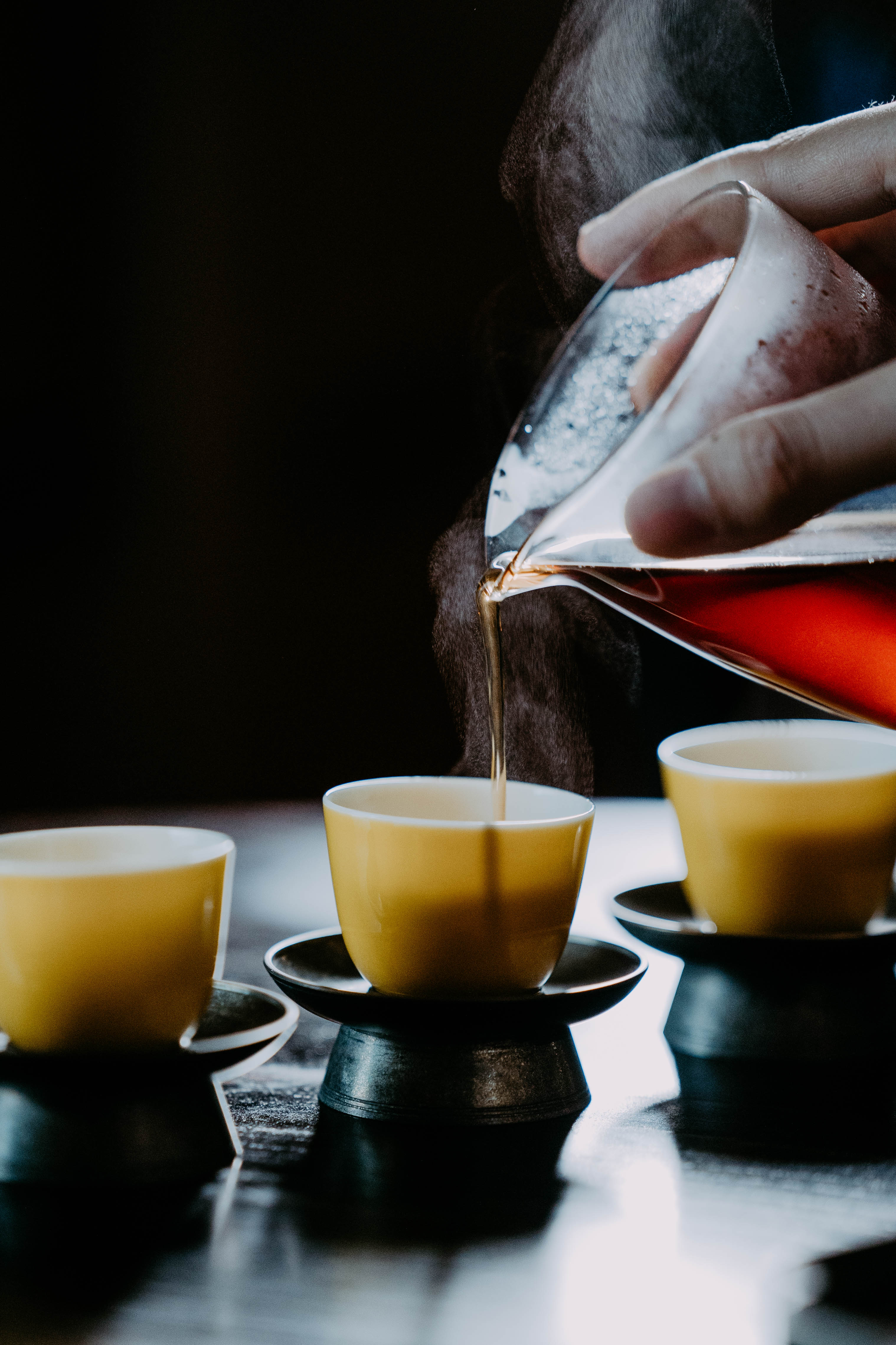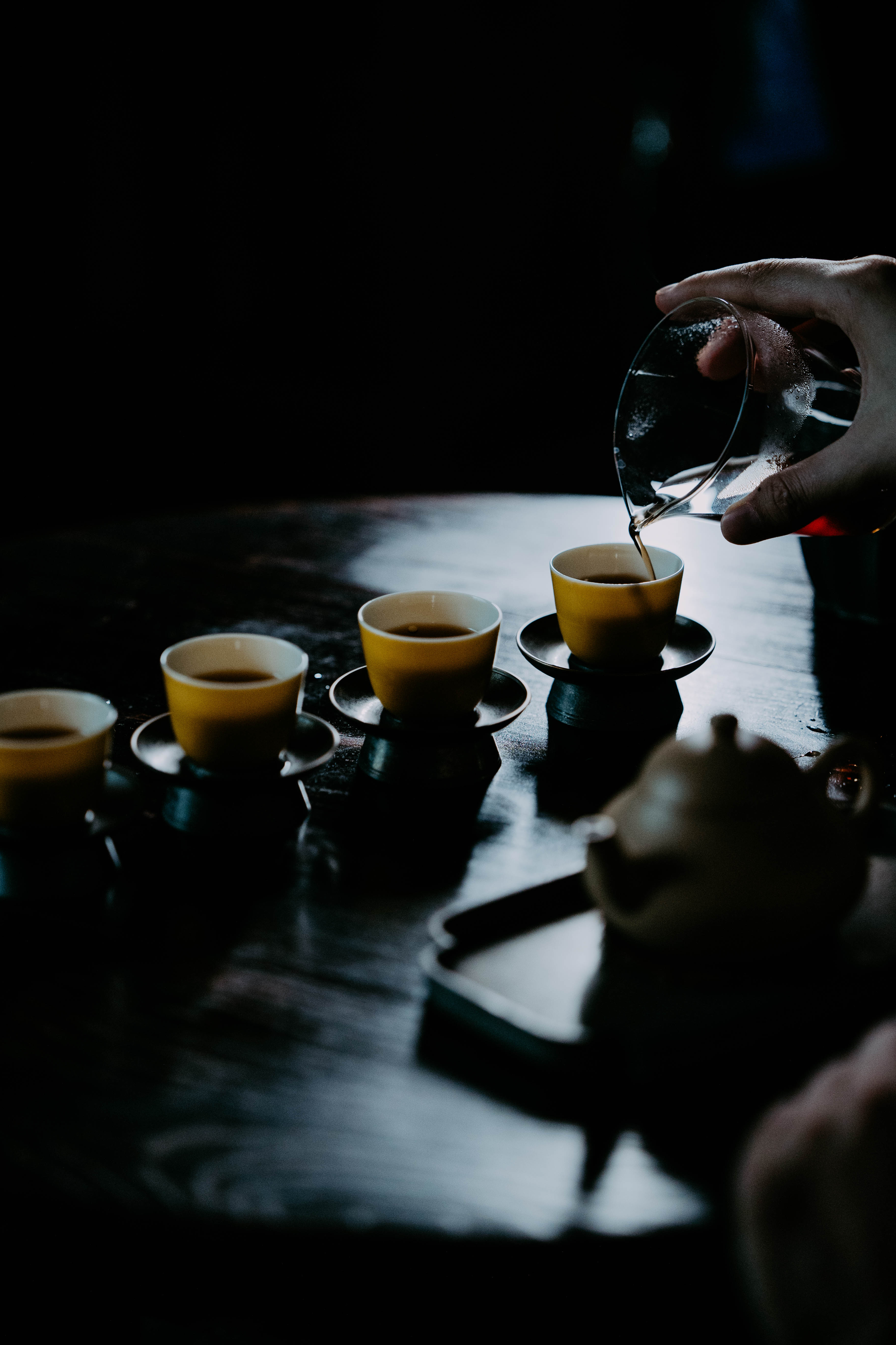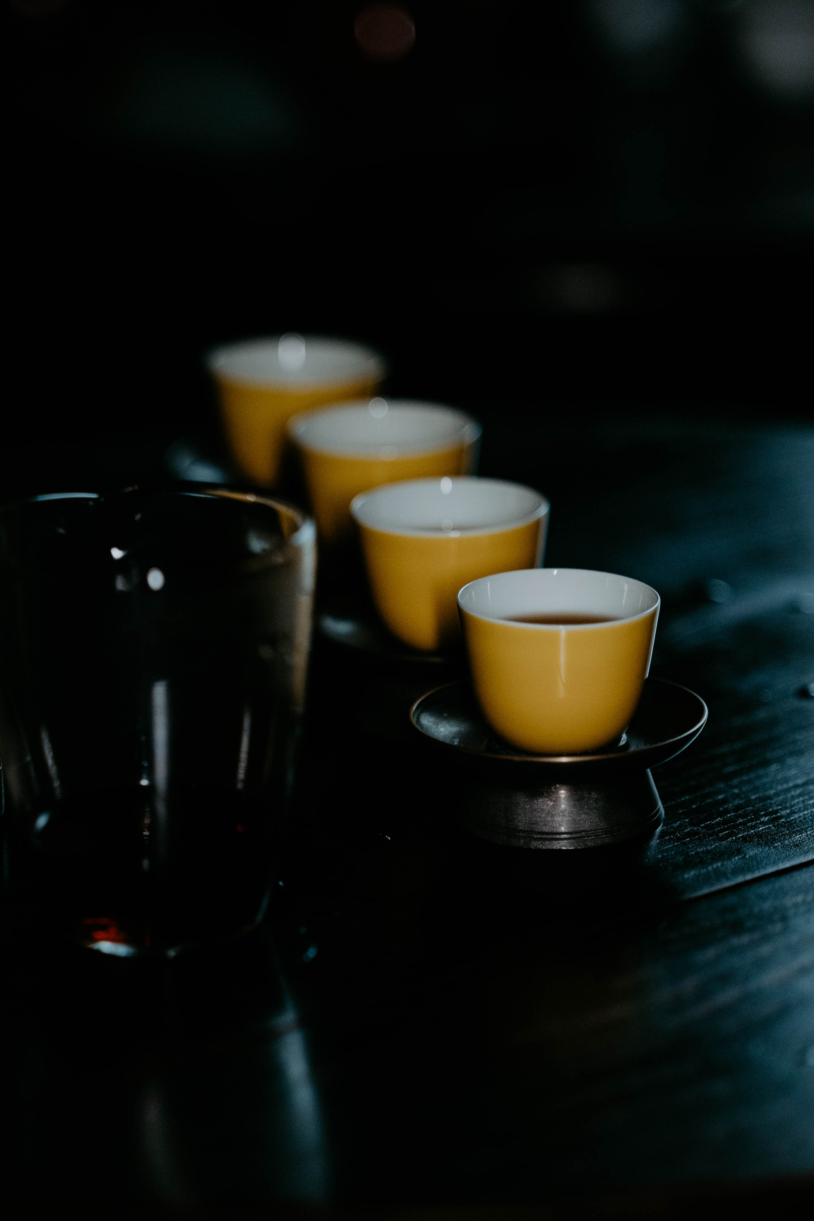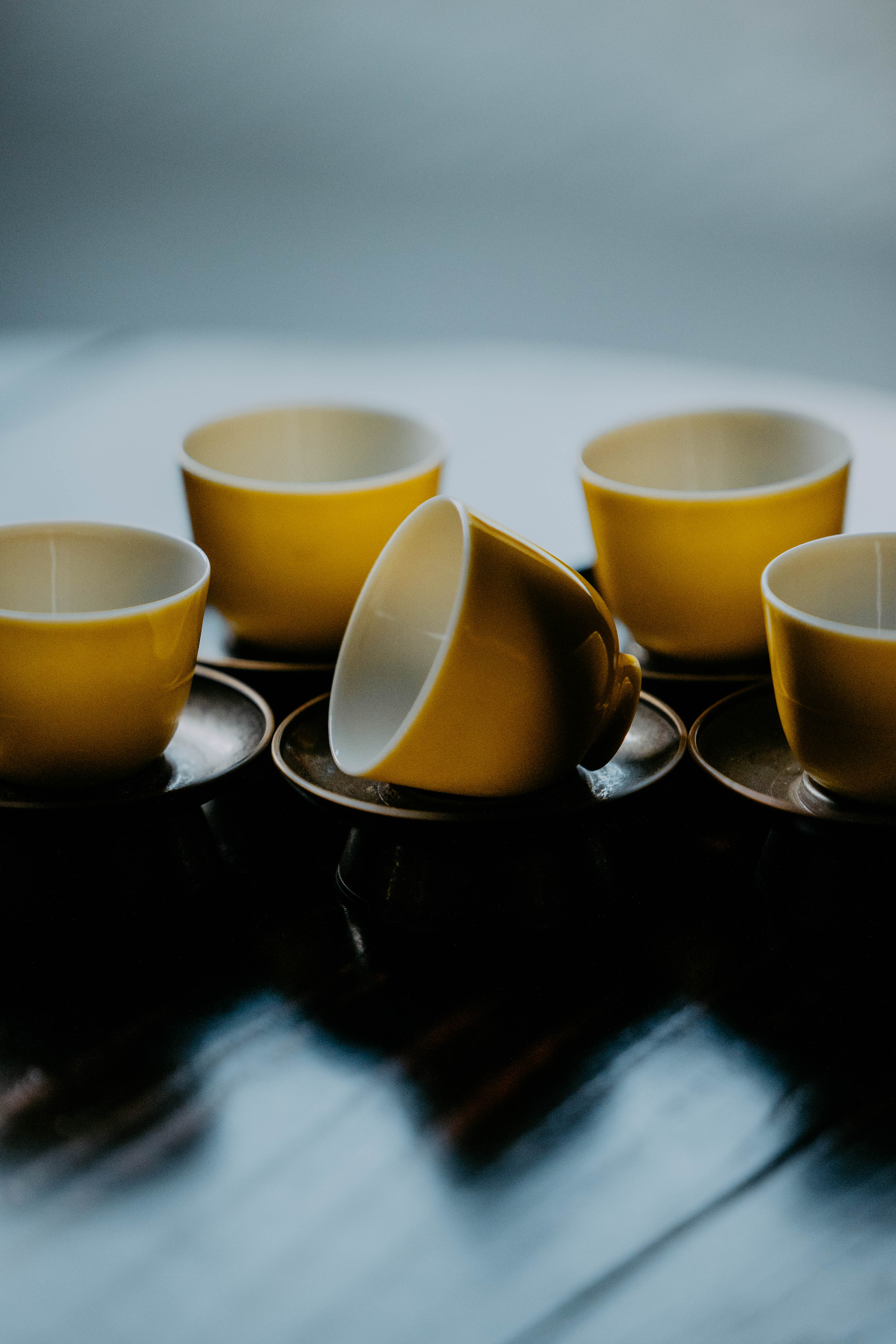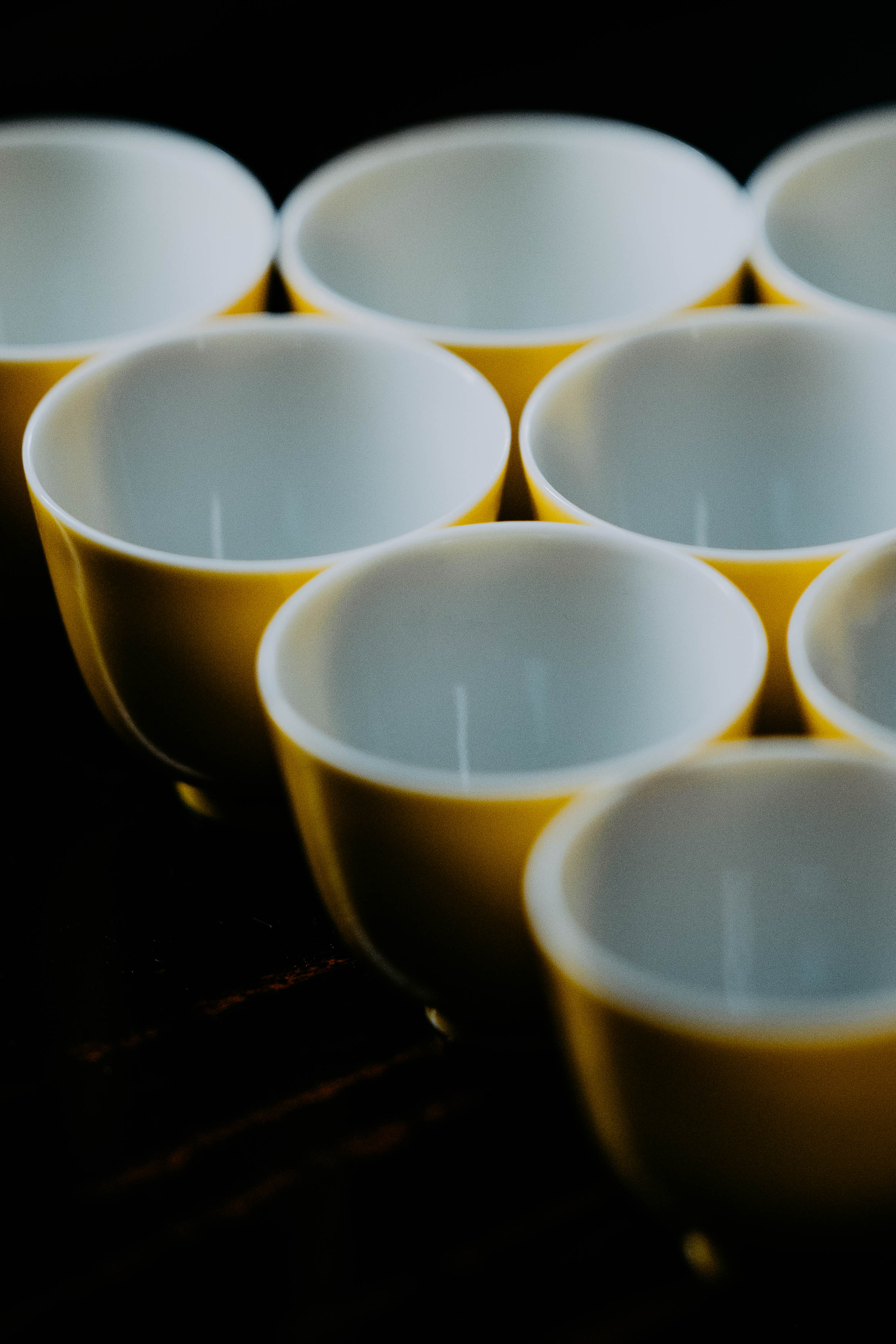 小巧精美,轻薄胎体,精修成型。黄色釉面光泽质感如玉。或三或五陈列摆放,在茶席间与其他器物协调百搭,幽静雅致。是雅集活动中一款经典好看又好用的杯子。