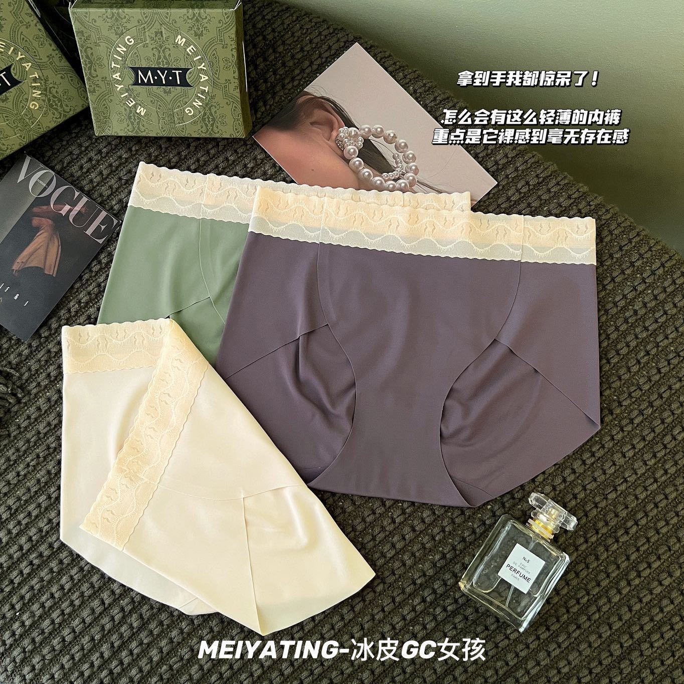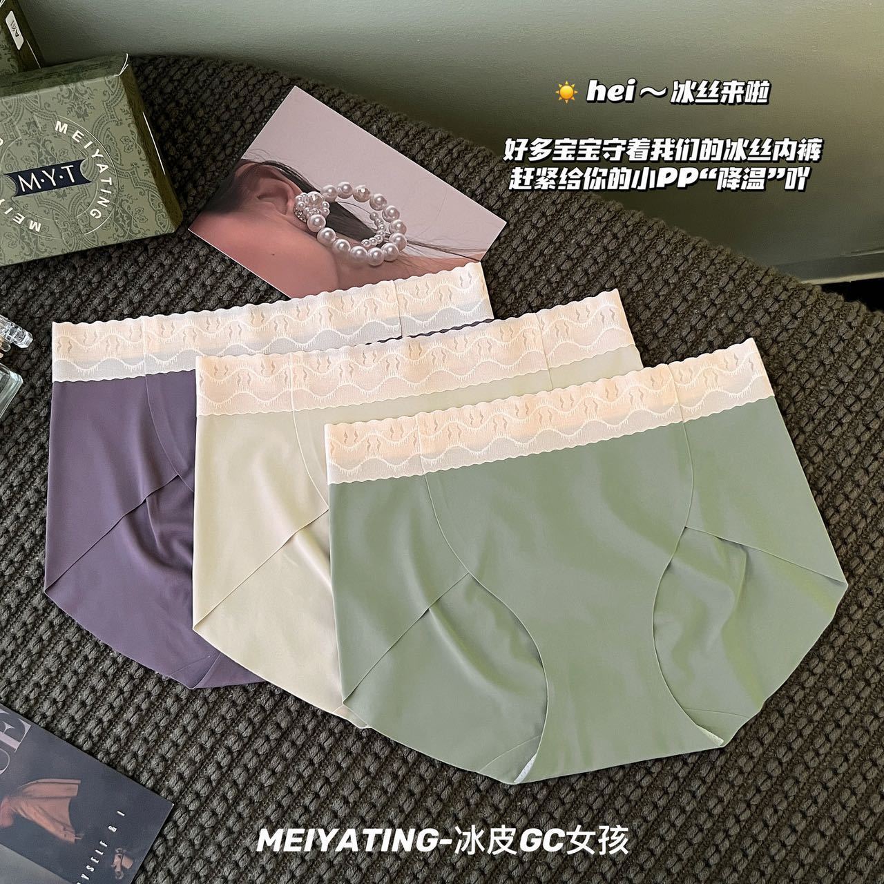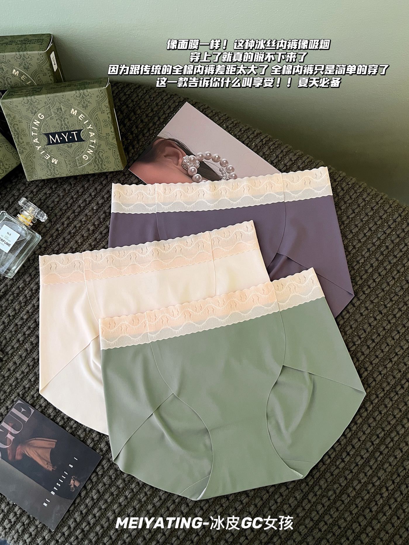 【超值3条装】冰皮GC女孩冰丝无痕内裤女士三角裤,轻薄裸感,舒适中腰,无束缚,柔软Y菌比没穿还要自在!吸湿透气,远离异味瘙痒!