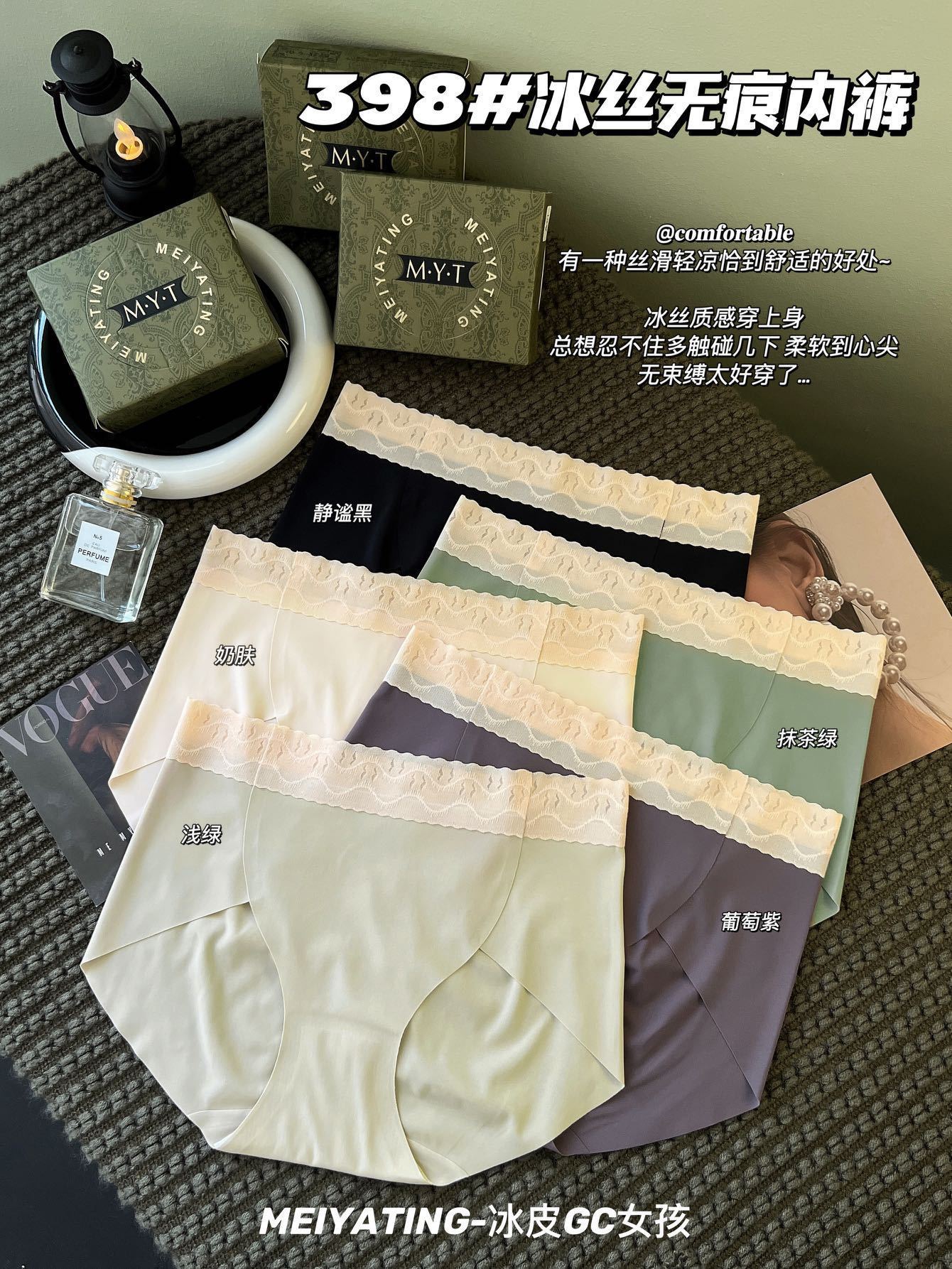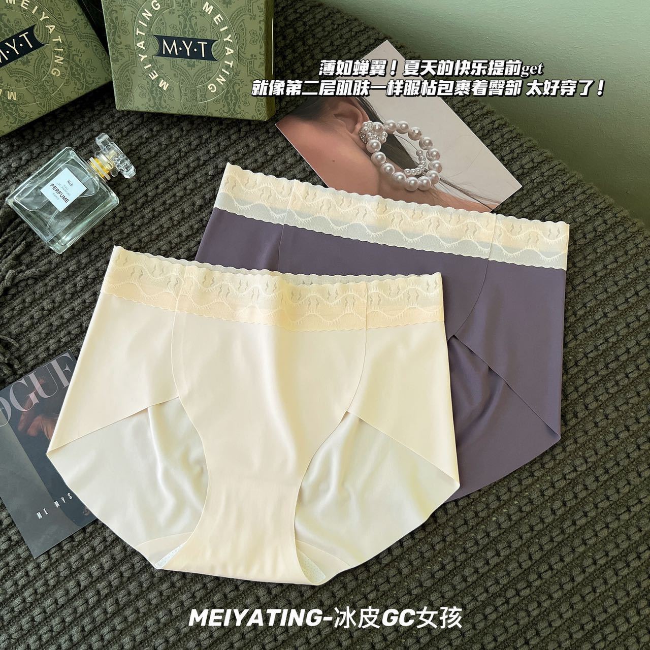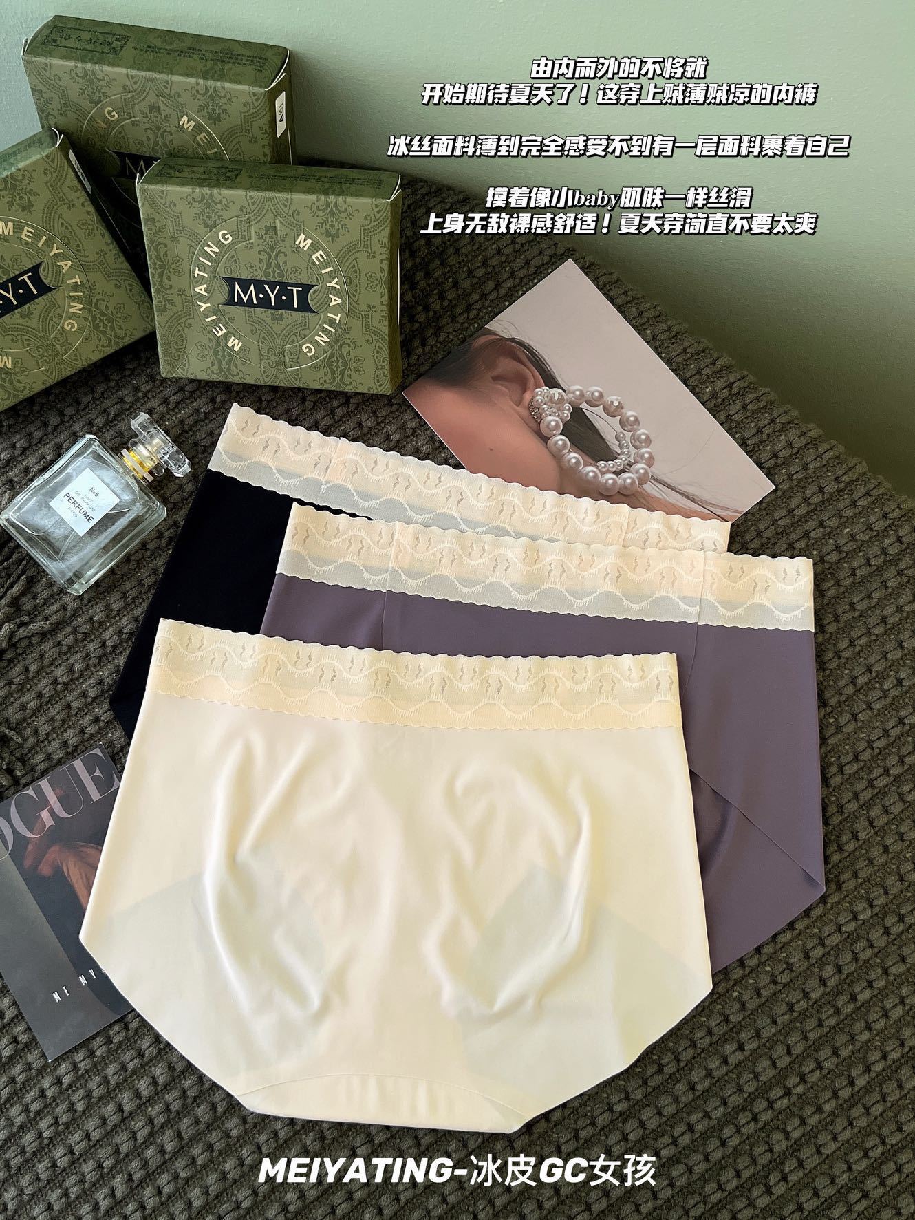 【超值3条装】冰皮GC女孩冰丝无痕内裤女士三角裤,轻薄裸感,舒适中腰,无束缚,柔软Y菌比没穿还要自在!吸湿透气,远离异味瘙痒!